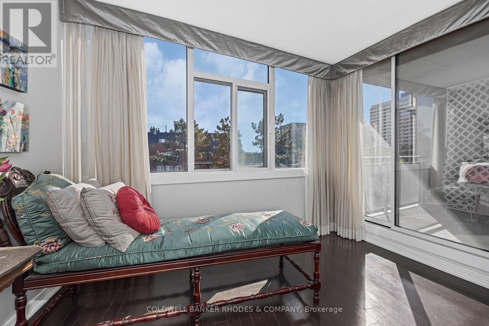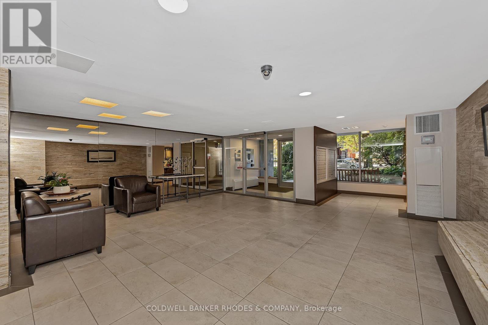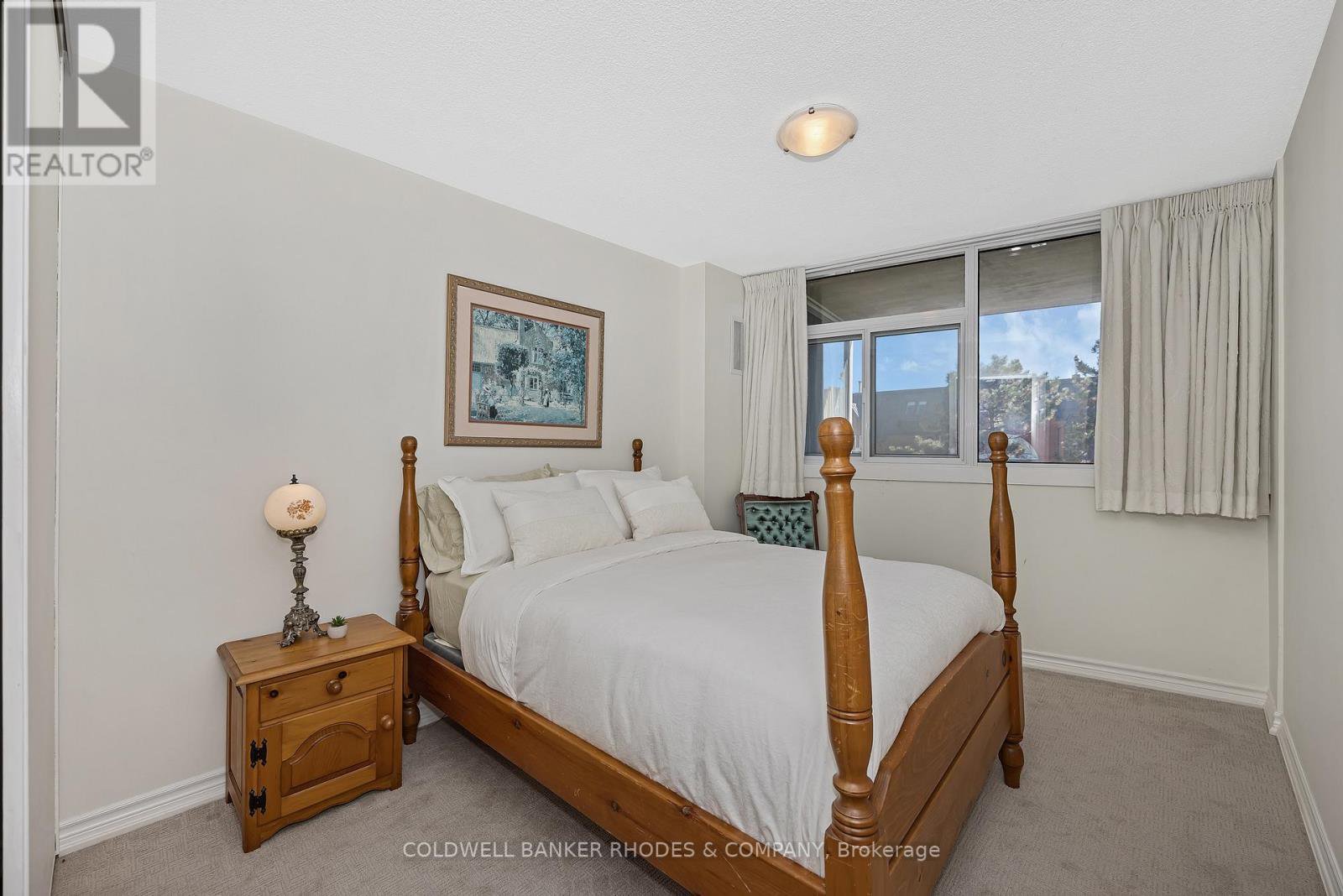 Welcome to Chateau Cartier - easy living in an established community just steps from the Canal! This beautifully updated, light-filled 2 bedroom, 2 full bathroom corner unit is perfectly positioned on the sunny south side of the building. Warm hardwood floors, elegant finishes, and expansive windows create an inviting atmosphere you'll love coming home to. The open-concept living and dining area offers generous space for entertaining family or enjoying peaceful afternoons surrounded by treetop views. The renovated kitchen features thoughtful touches including granite countertops, a double sink, a handy pantry, and plenty of storage. With a west-facing window, the spacious eating area or den space is appointed with a built-in desk and cabinetry, offering is an ideal space for hobbies, computer work or enjoying a cup of coffee. The roomy primary bedroom is adjacent to an 3-piece ensuite with walk-in shower as well as a double closet. A comfortable second bedroom and nicely updated main 4-piece bath are perfect for visiting family or guests. Additional conveniences include in-unit laundry and storage space, underground parking, and a private balcony where you can relax and take in views of the Canal. Enjoy resort-style amenities such as the outdoor pool, rooftop terrace, and community room with library. Located within an easy stroll of Elgin Street's charming restaurants, cafés, and shops, as well as nearby grocery stores, recreation facilities, and downtown amenities, you'll find everything you need close at hand. Enjoy the perfect blend of comfort, convenience, and picturesque Canal-side living!