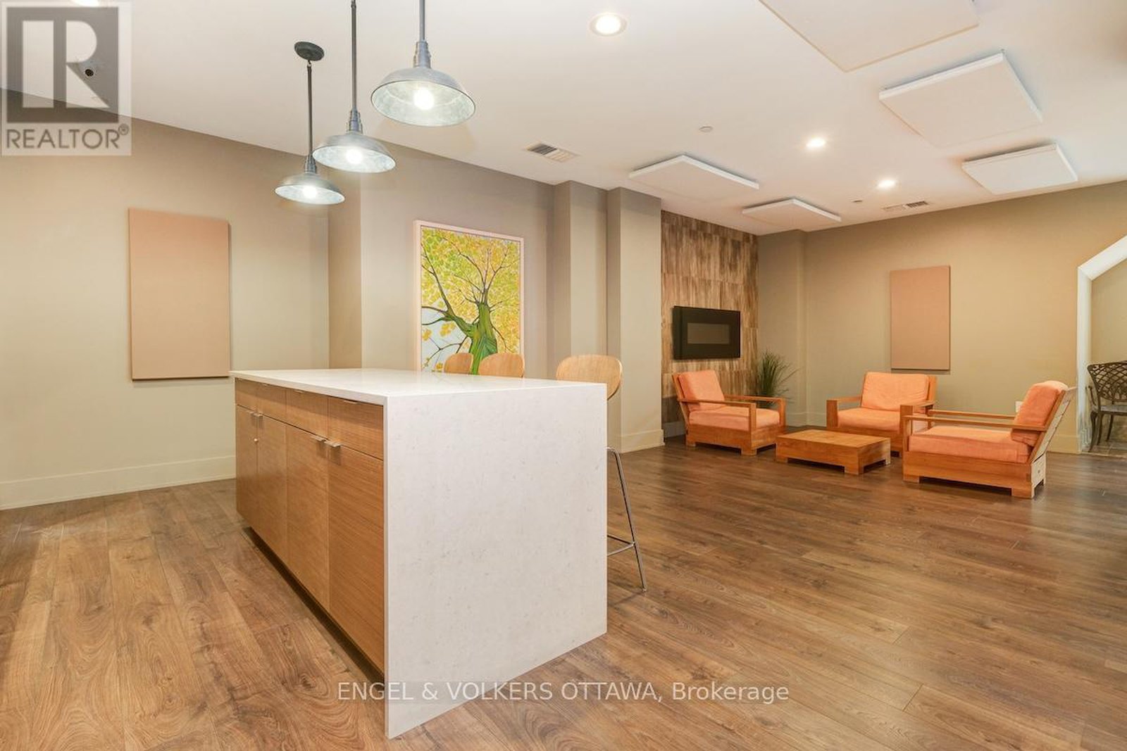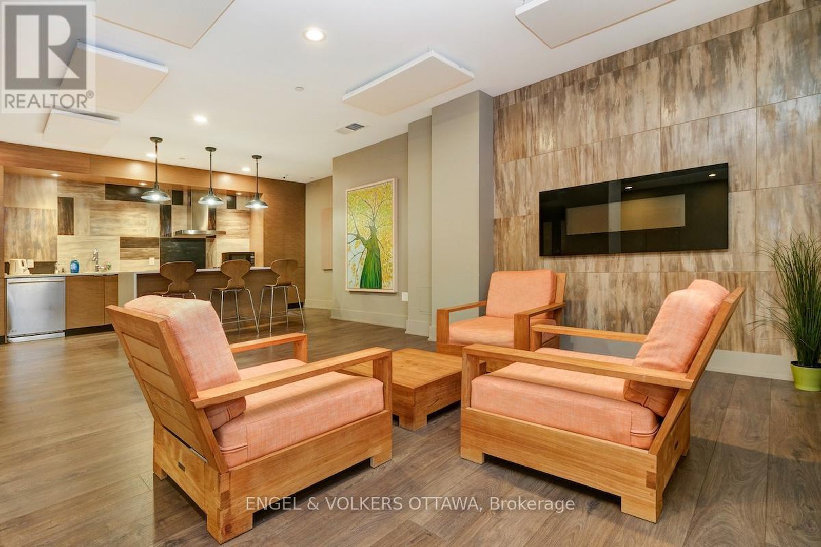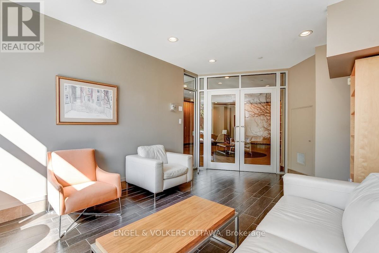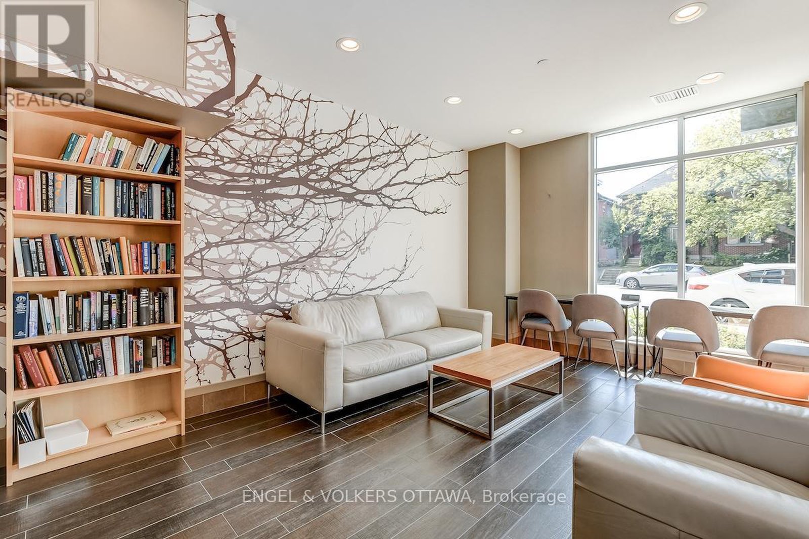 Leed certified building in excellent location.Walk to great shops and restaurants. Transit at the front door. Dark stained wood laminate floors, stainless steel appliances, Garage parking and locker. Roof terrace, party room, meeting room, guest suite, gym and garden area. Listing agent related to sellers. Some photos virtually staged. Super condo in a great neighbourhood. Look out to top of trees. Small balcony, Parking space: P2 #42, Locker: P2 #21. Heat pump to be replaced by Condo Corporation in April 2026. Consideration for EV charging is being undertaken by the Board of Directors.