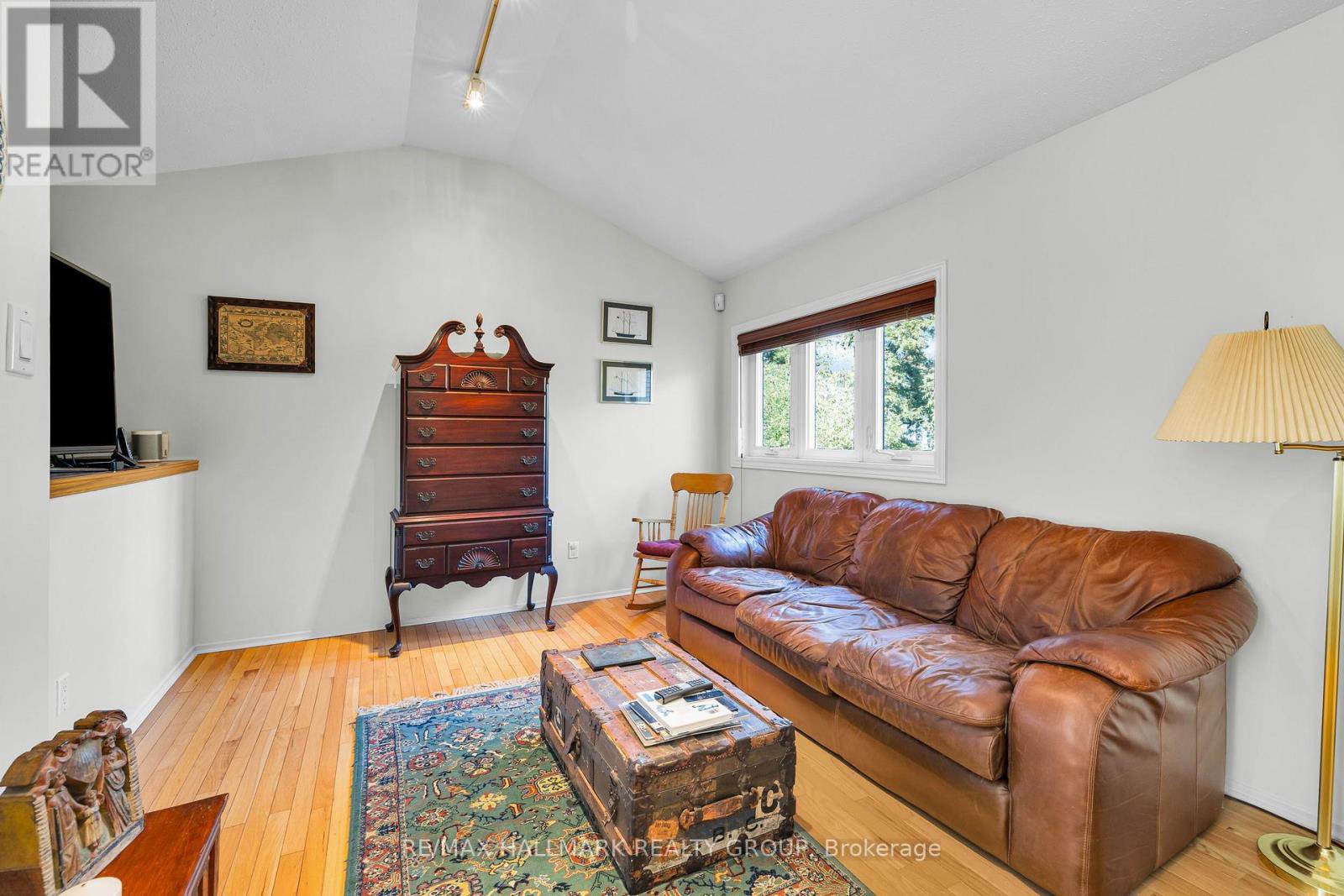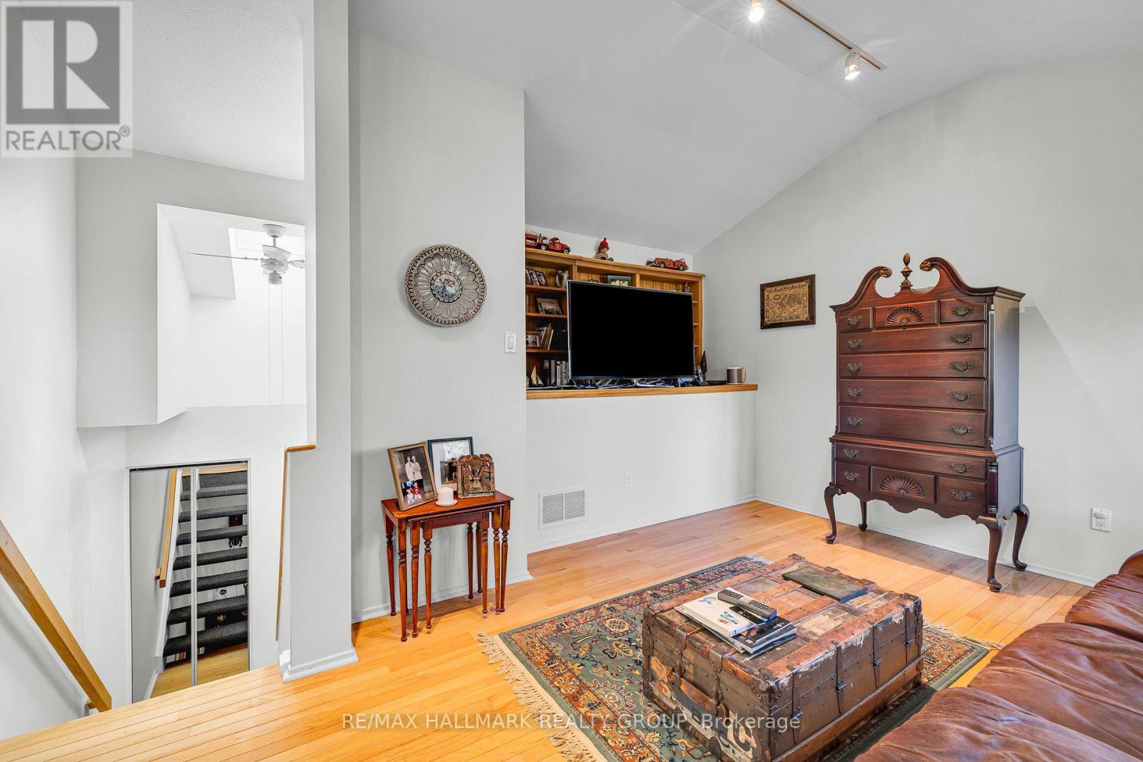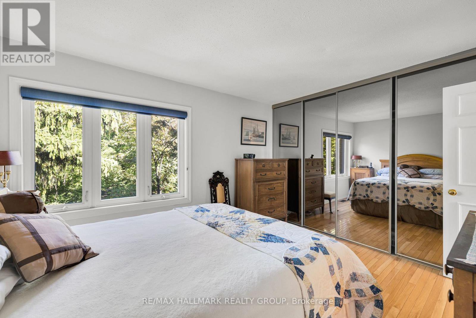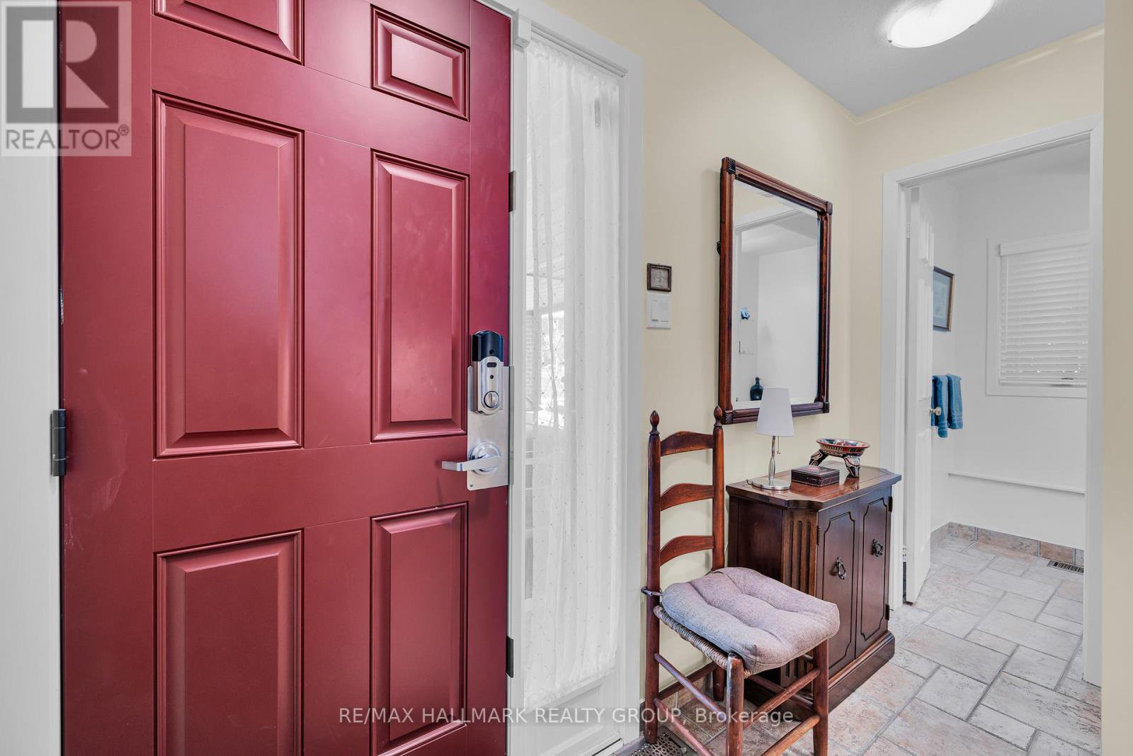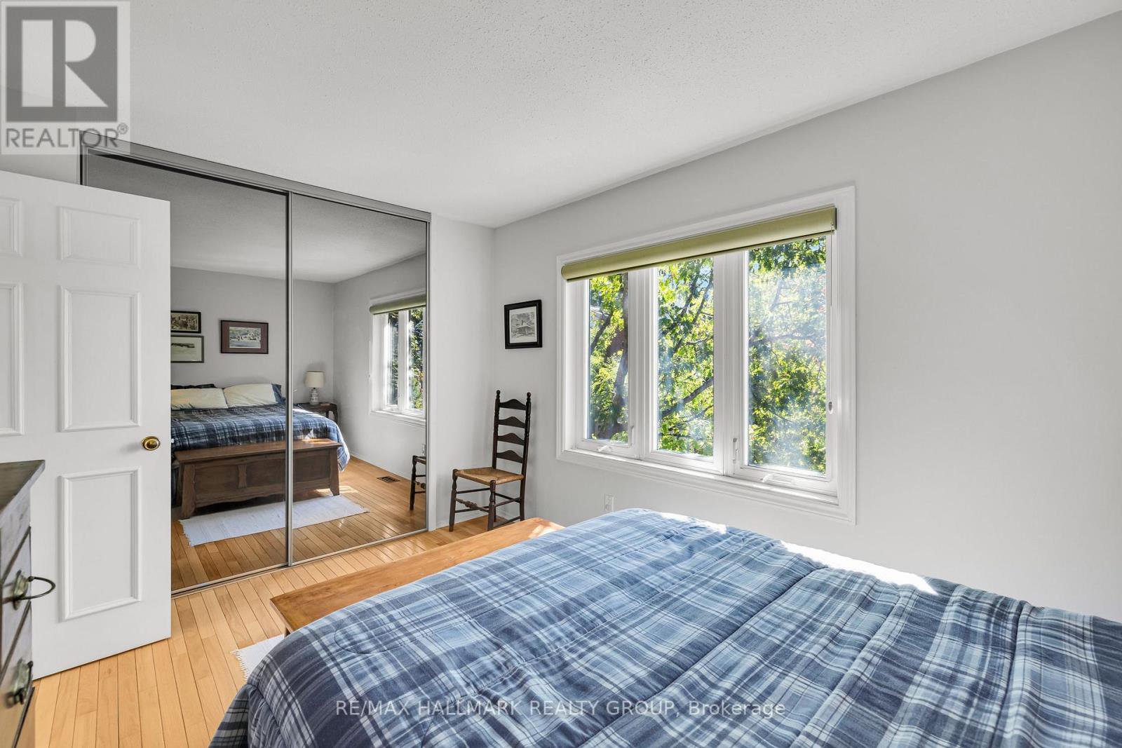 Welcome to 1-60 Greenfield -- Steps from the Rideau Canal and minutes to downtown, this 3-bed, 3-bath multi-level end-unit townhome blends city convenience with rare privacy, all while backing onto trees with no rear neighbours. Inside, the bright U-shaped kitchen boasts newer appliances (2022-2025), stone countertops and backsplash, an induction stove, a corner sink, and a large window overlooking the yard and trees. Natural hardwood runs through the dining and upper levels, complemented by shutters in the dining room. The living room features a fireplace and patio doors to a spacious terrace above the carport - perfect for hosting all season long. The private levels provide flexibility: a primary with an ensuite (corner shower), a skylit 4-piece bath with a jacuzzi tub and updated tile tub surround beside the second bedroom, and a third bedroom at the top, currently used as an additional lounge. The lower level expands the home with a full laundry room, walk-in workshop, storage, and a bonus room ideal as a gym, office, family room, or guest suite. Major systems are updated with a furnace & AC (2018). All this is just a stone's throw to the Canal, with quick in-and-out city access, and surrounded by shopping, dining, and recreation, a rare balance of downtown living and peaceful retreat.