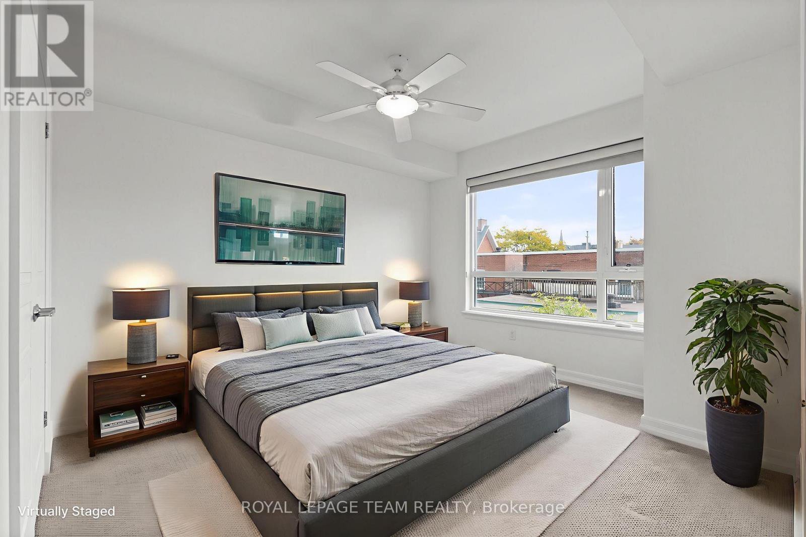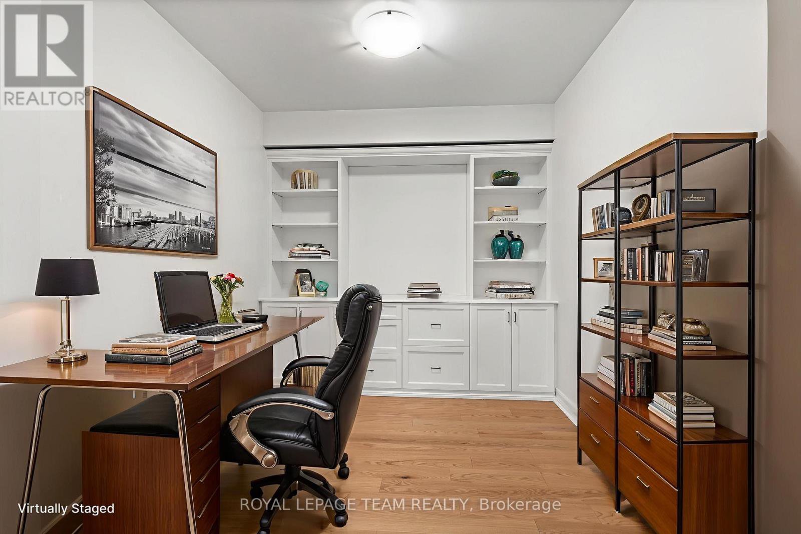 Rarely Offered! Modern 2-Bedroom + Den Condo with 1 Parking Spot & Storage locker. This elegant and spacious 2-bedroom + large den condo offers approximately 1,135 sq ft (as per builder's plan) of beautifully maintained living space. Move-in ready, the unit was freshly painted this past month, and features updated gleaming hardwood floors in the living and dining areas. The carpets in the bedrooms have just been steam-cleaned and are in excellent condition. The bright and airy primary bedroom boasts a wall of south-facing windows, two closets, and a 4-piece ensuite bathroom with a separate shower. The thoughtful split floorplan places the second bedroom on the opposite side of the unit, ideal for guests or privacy. 2nd bedroom also features sunny views and ample closet space. Additional highlights: Large den - perfect for a home office or additional living space. 2 full bathrooms. 1 underground parking spot (P1-1) Storage locker included. Building amenities: gym, sauna, and pool on the 2nd floor. Pet-friendly building (with some size restrictions). Condo fee includes heat/ water and building maintenance. Conveniently located within walking distance to grocery stores, LCBO, and LRT. Please note: Estate sale conditions apply. 24-hour irrevocable required on all offers. Status docs on file. Some photos virtually staged.
