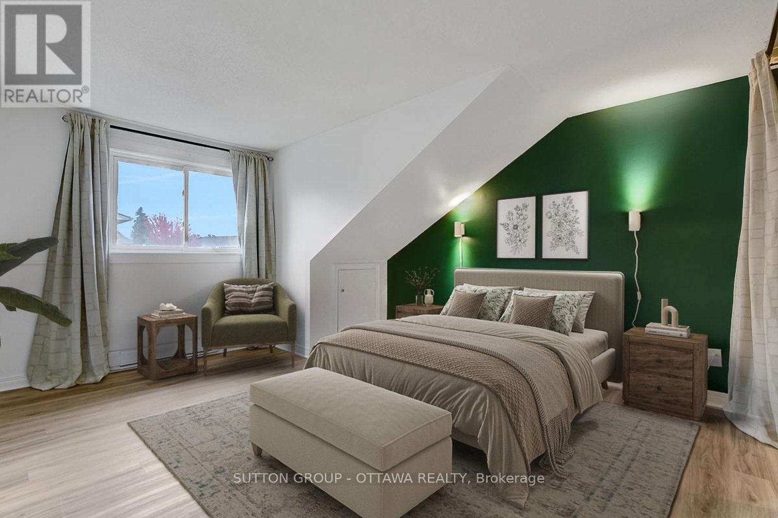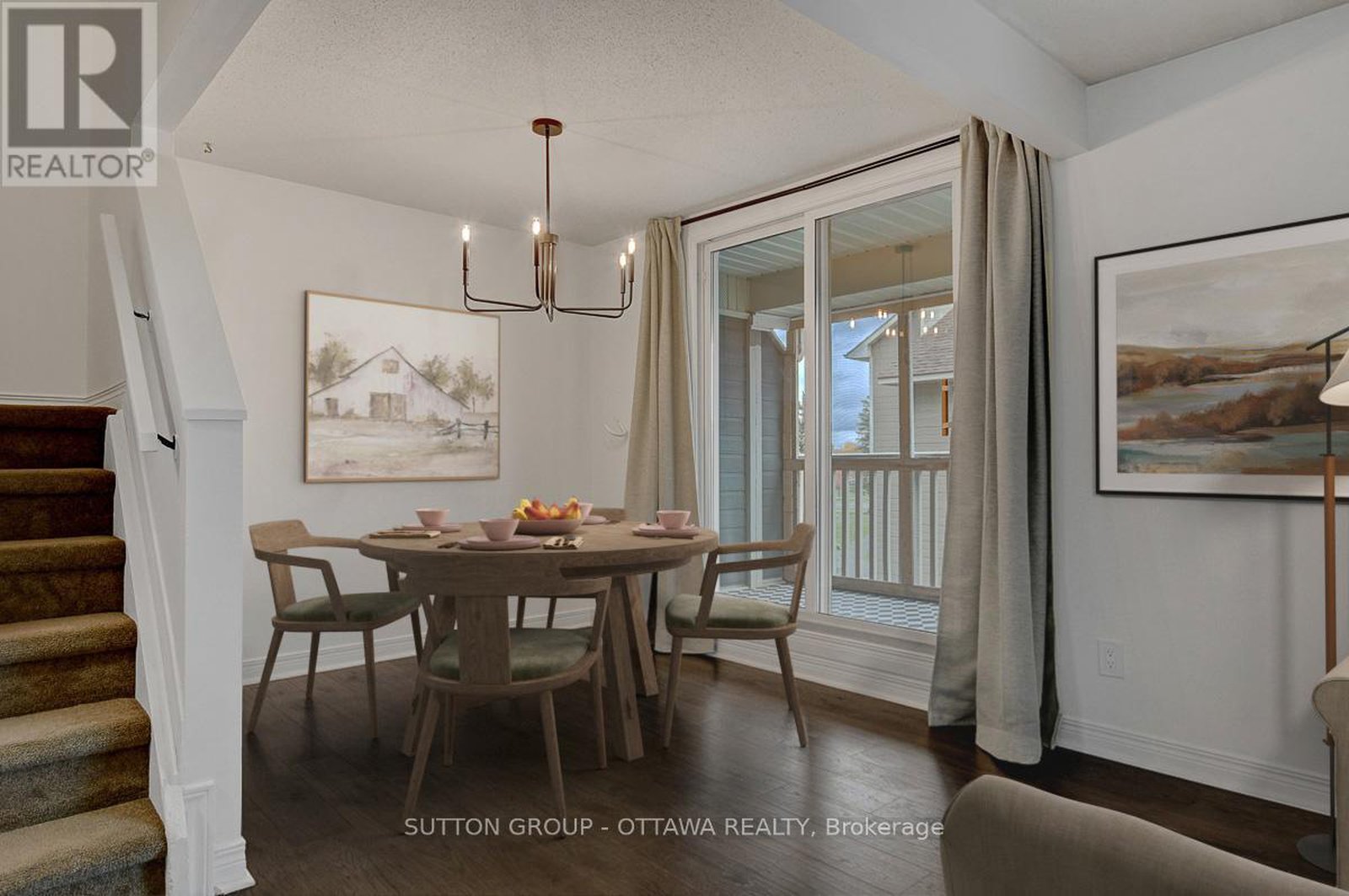 Upgraded 3 BEDROOM UPPER END UNIT in heart of Orleans! This freshly painted 3 bed, 2 bath home is sure to please! The main level features modern laminate flooring, upgraded light fixtures and an open concept living & dining area, perfect for entertaining. The dining room provides access to the spacious balcony with modern tiles and removable screens (2021), making the space both beautiful and comfortable. The kitchen boasts new marble-look laminate countertops & subway tile backsplash (2025), extended pantry (2020), and stainless steel appliances. A great sized bedroom is located off the main level living space which can also be used as a kids play room, home office, exercise space or whatever your heart desires! The main level also offers both a powder room and coat closet, conveniently located at the top of the entry stairs. The second level boats brand new luxury vinyl flooring and trim (2025). The large primary bedroom easily fits a king-sized bed with enough room for additional furniture as well! This bedroom also has a huge walk-in closet! A good-sized secondary bedroom, walk-in laundry room with plenty of shelving, and full bath complete this level. The extremely reasonable condo fees include water as well as an outdoor pool for you to cool off in the summer + playground for the kids! This property is situated close to everything you could possibly need: WALK TO shops (Metro, Shoppers Dollarama, LCBO, etc.!), the upcoming LRT station opening soon, multiple schools, dining & more! Amazing bike trails and parks nearby! 1 Parking Space & 2 Portable AC Units (2025) included. This one is not to be missed; Book a showing today! Note: some photos are virtually staged. Visit link for more photos!