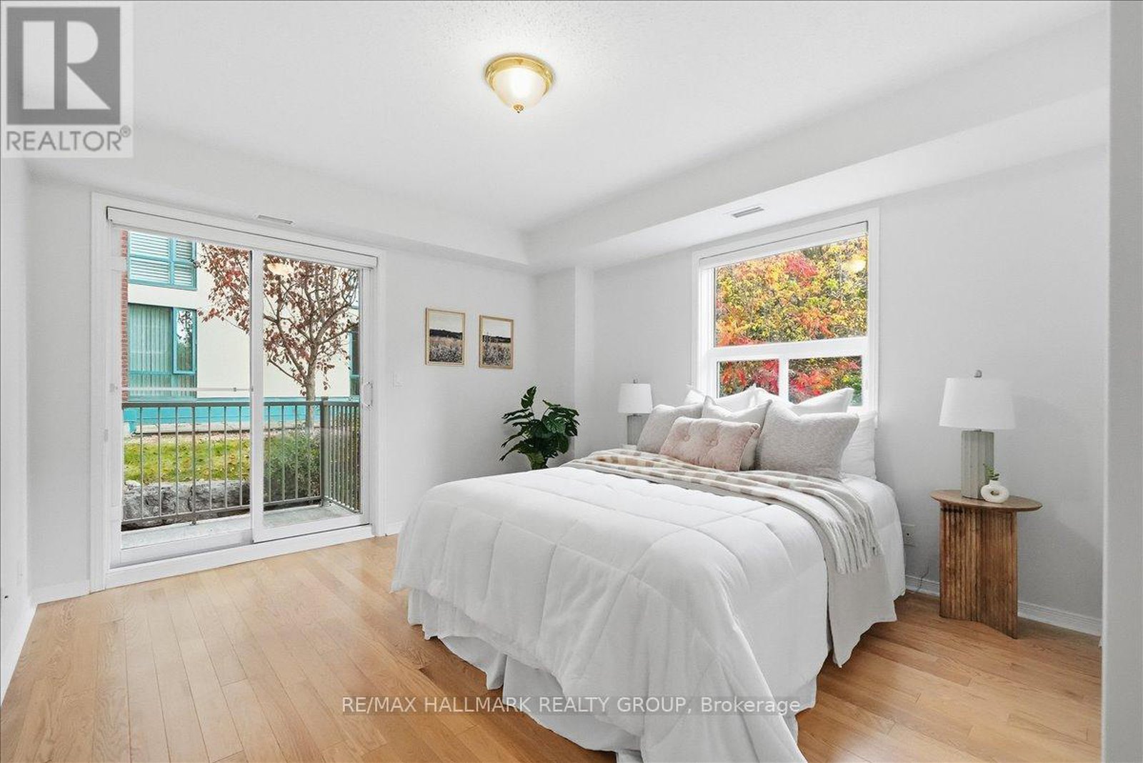 Welcome to this bright and spacious 2-bedroom, 2-bathroom corner unit in the heart of Orleans! Designed with convenience in mind, all living space is on one level, making it easily accessible without stairs. This carpet-free home offers an open-concept living and dining area with access to a private balcony, along with a generous kitchen featuring plenty of crisp white cabinetry. The primary bedroom serves as a relaxing retreat, complete with a 4-piece ensuite, ample closet space, and direct access to its own balcony. Added perks include in-unit laundry with a newer washer and dryer. The well-cared-for building provides a same-level locker, a welcoming party room, an elevator for effortless access, and underground parking with a handy car wash bay. The condo fees include water. Ideally situated just steps from a park, Place d'Orleans Shopping Center, Farm Boy grocery store, dining options, and everyday amenities, this condo offers the perfect balance of comfort, functionality, and location. Quick possession available. Book your showing today!