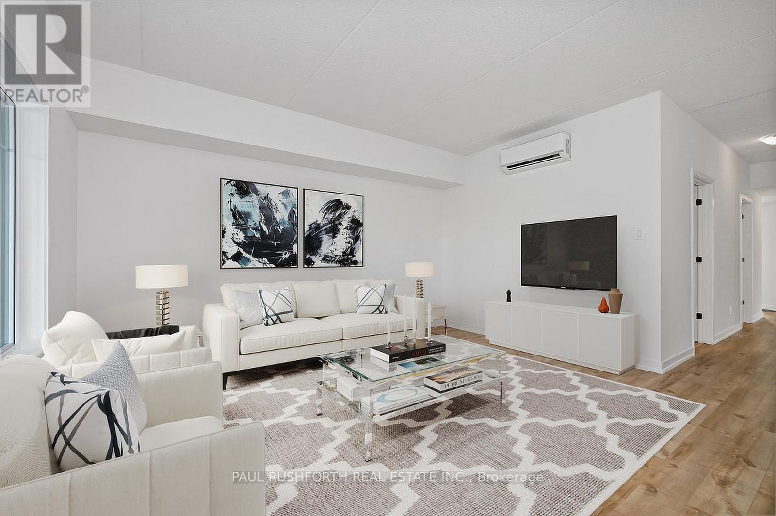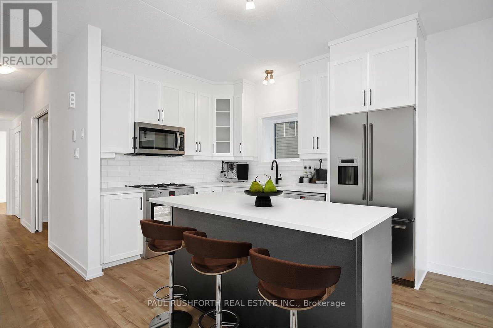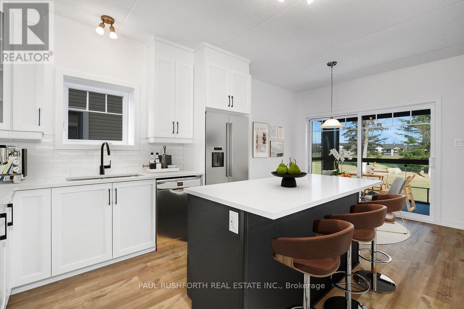 This upcoming 2-bedroom, 1-bathroom (2 Bath option also available.) condominium is a stunning lower level end unit home that provides privacy and is surrounded by amazing views. The modern and luxurious design features high-end finishes with attention to detail throughout the house. You will love the comfort and warmth provided by the radiant heat floors during the colder months. The concrete construction of the house ensures a peaceful and quiet living experience with minimal outside noise. Backing onto the Rockland Golf Course provides a tranquil and picturesque backdrop to your daily life. This home comes with all the modern amenities you could ask for, including in-suite laundry, parking, and ample storage space. The location is prime, in a growing community with easy access to major highways, shopping, dining, and entertainment. Photos are of a similar Le Mulligan Model and have been virtually staged. Buyer to choose upgrades/ finishes. Approx Fall 2026 Occupancy.