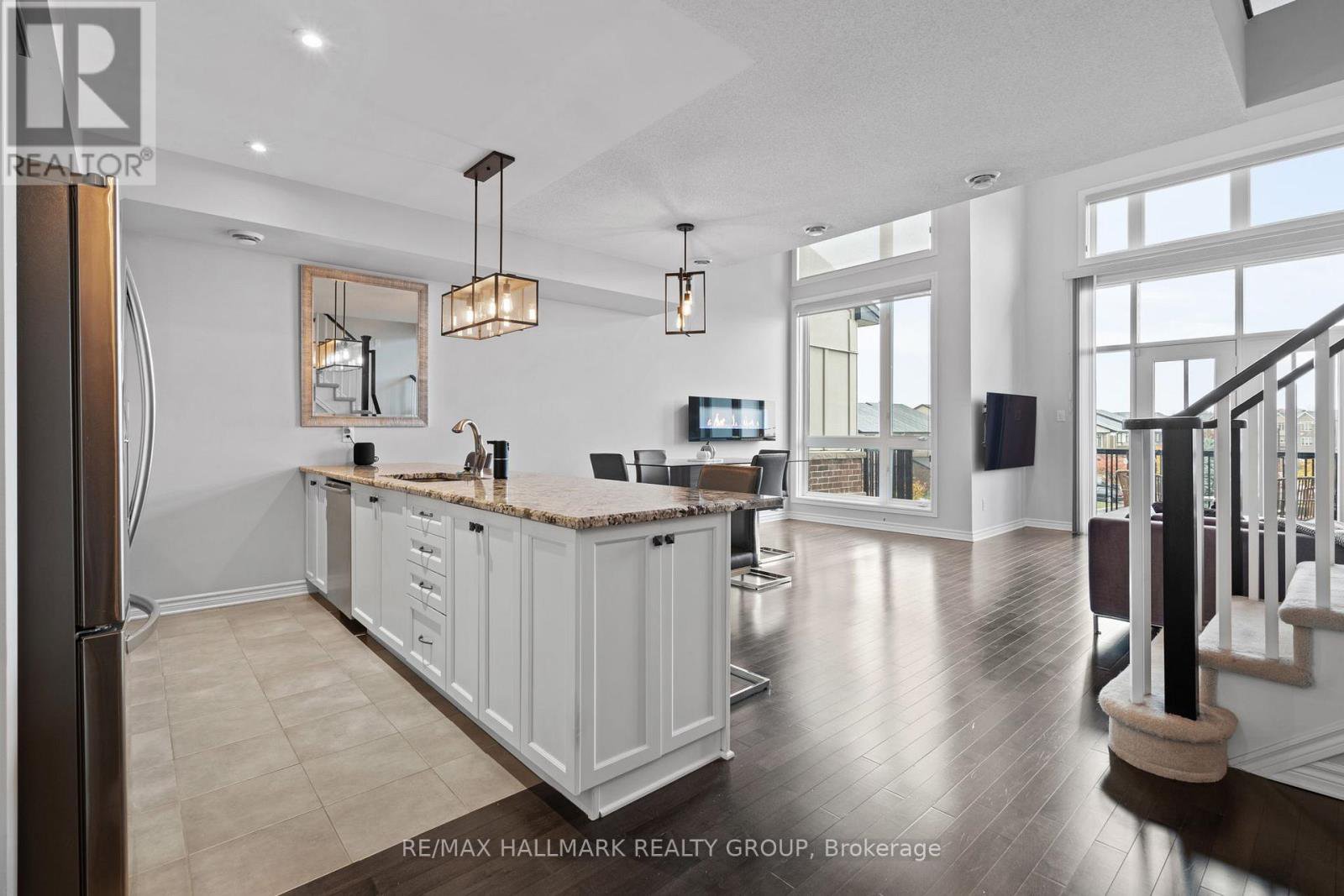 Welcome to 109 Poplin Street in sought-after Riverside South. This stylish townhouse-style condo offers a unique three-level layout with inside access to an oversized garage featuring a brand-new automatic door opener and excellent additional storage space, plus a tandem parking spot outside for added convenience. Perfectly positioned with no immediate neighbours in front, this home enjoys both privacy and practicality. Step inside to a welcoming foyer leading up to a bright open-concept main level featuring expansive windows, rich hardwood flooring, and elegant finishes throughout. The modern kitchen is equipped with granite countertops, upgraded cabinetry, stainless steel appliances, and a large island ideal for entertaining. The main level also includes a full bathroom, laundry, and a spacious bedroom with a walk-in closet. The open staircase with contemporary handrails leads to the upper floor with a versatile loft overlooking the living area, perfect for a home office or relaxing retreat. The impressive primary suite features a generous layout, a walk-in closet, and a spa-inspired ensuite complete with dual sinks, a soaker tub, and a separate shower. Enjoy a prime location close to parks, schools, walking trails, grocery stores, restaurants, fitness centres, and everyday conveniences, with easy access to LRT transit. This home offers the perfect blend of comfort, style, and modern living in one of Ottawa's most desirable communities. 24 hour irrevocable on all offers.