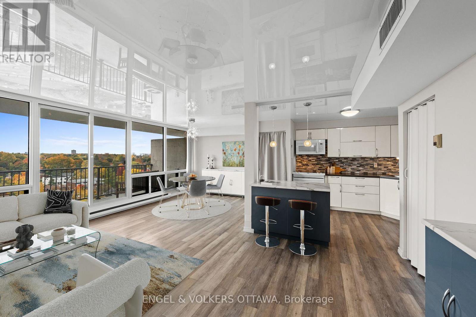 Discover this stylish and renovated two-bedroom, one-and-a-half-bath condo in The Halcyon, perfectly located just minutes from the heart of Westboro. This bright, open-concept home has been thoughtfully redesigned with new flooring, a sleek modern kitchen, and elegant bathrooms. The main living area features contemporary stretch-fabric tensile ceilings that add architectural flair and enhance the sense of space, while a private balcony offers sweeping views of the city. Both bedrooms are generously sized, complemented by a convenient ensuite powder room, full bath, bonus in-unit storage room, central air conditioning and in-suite laundry. The location combines urban convenience with outdoor enjoyment - steps from the new LRT station for easy city access, and surrounded by shopping, cafés, restaurants, and miles of walking and biking trails that makes everyday living convenient and enjoyable. Residents enjoy resort-style amenities including an outdoor pool, BBQ area, sauna, gym, bicycle storage, car wash bay, party room with full kitchen, library/lounge, meeting room, workshop with power tools, commercial washer/dryer for bulky items, and a guest suite for visitors. Condo fees include heat, hydro, water, TV, internet, and building insurance-offering a truly worry-free lifestyle with every essential conveniently covered. A storage locker and underground parking complete this perfect blend of modern comfort and a truly connected community lifestyle