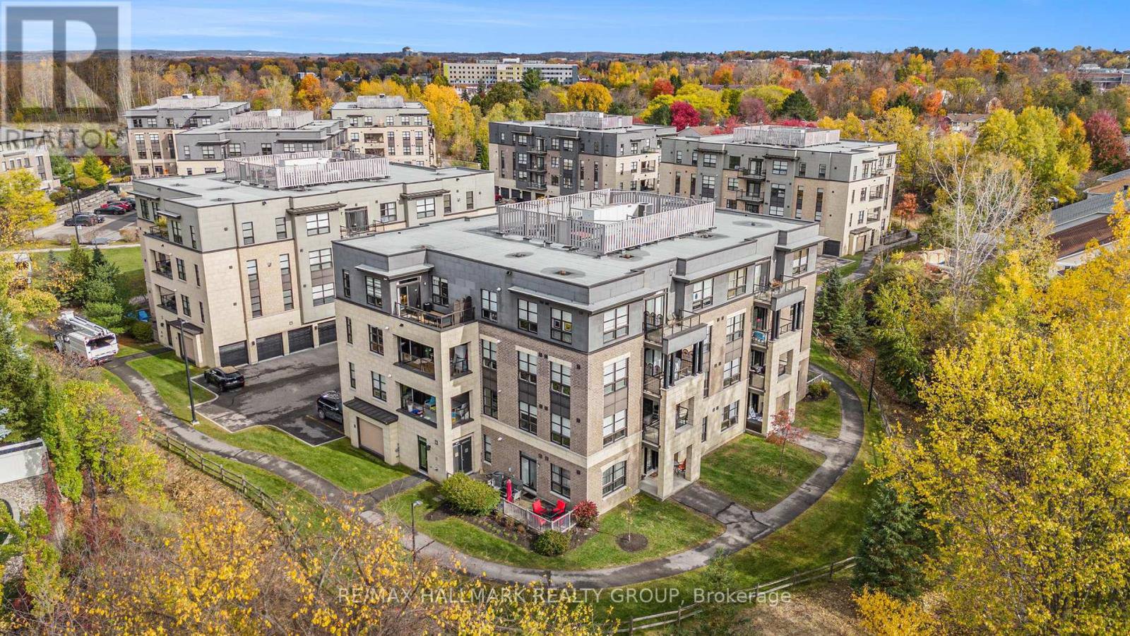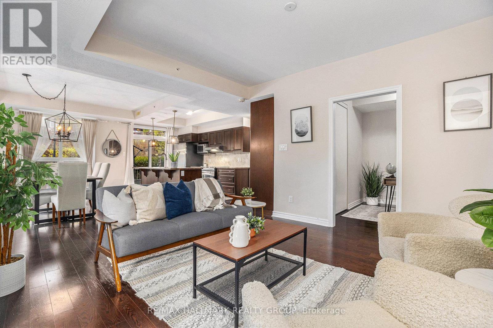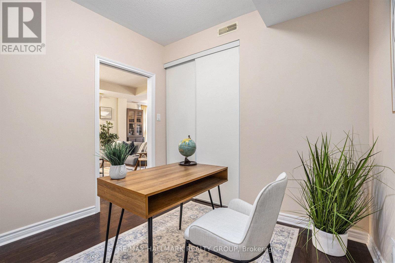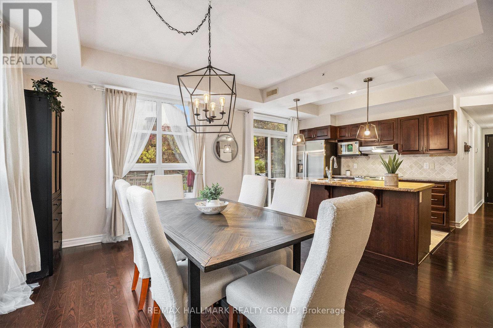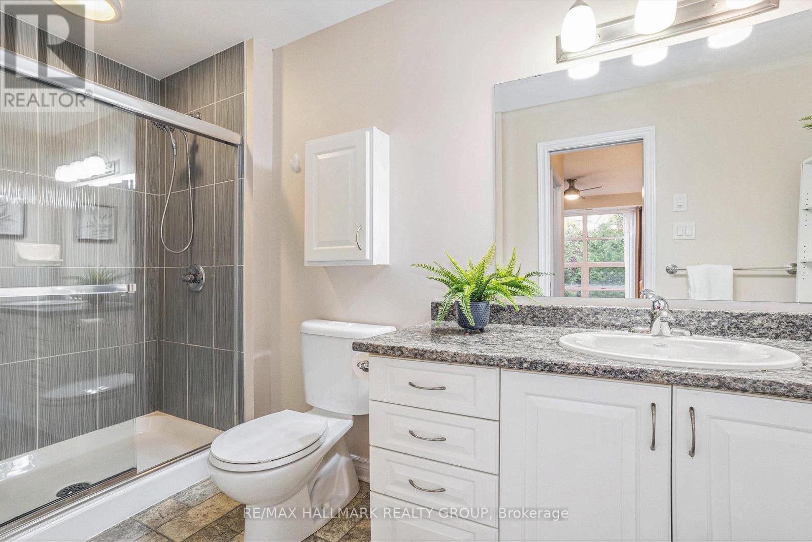 Stunning 2 bedroom plus den, ground level unit corner unit in the exclusive adult oriented community of Quarry Ridge in Orleans. These units are rarely offered and when they are, they go quick! Looking to downsize or simply get all your living onto one level, this is sure to impress as this unit offers approx.1326sqft of living space with 2 spacious patios surrounded by beautiful landscaping. The interior space is thoughtfully laid out with a great open concept kitchen, living and dining area with lots of natural light sitting in the heart of the home. While 2 spacious bedrooms are at separate ends of the unit. There is also a den that can be utilized as a 3rd bedroom/home office/guest room. The primary room can fit even the largest of bedroom sets and has vaulted ceilings, a walk-in closet, another closet, and an ensuite bathroom with spacious walk-in shower. The secondary bedroom is also a great size and has a full bathroom located just across the hall from it. Dining area is large enough to accommodate a large dining table. The chefs kitchen has a large island and loads of cabinet and counter space. The main patio is a great size which can fit a BBQ area, outdoor living space and dining area. Inside access to your own garage and storage locker, with a secondary parking space right there as well. If you're looking for convenience, space, low maintenance, and a scenic, quiet location to call home, look no further. Probate conditions apply, 24 hours irrevocable on all offers, schedule B to accompany all offers.