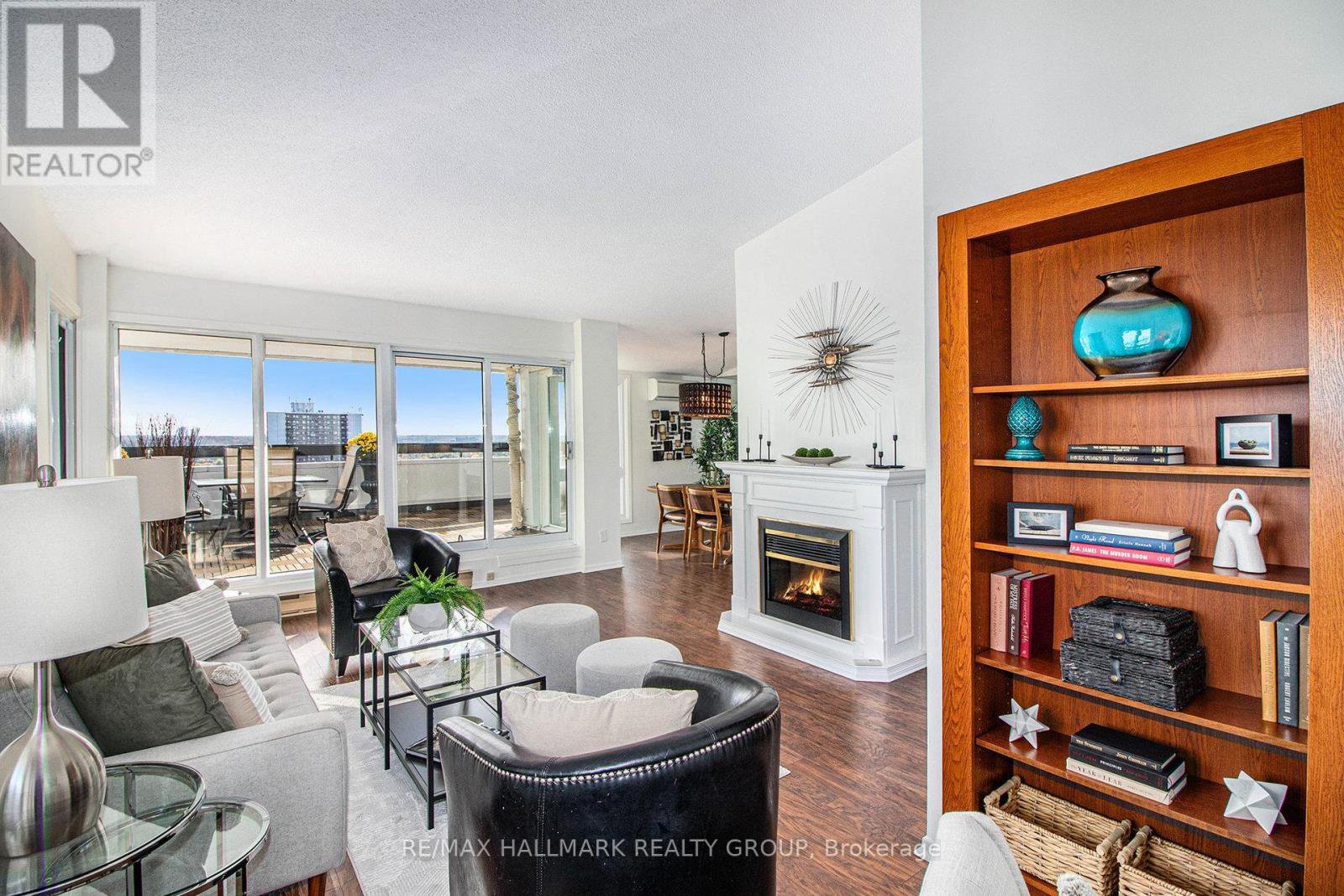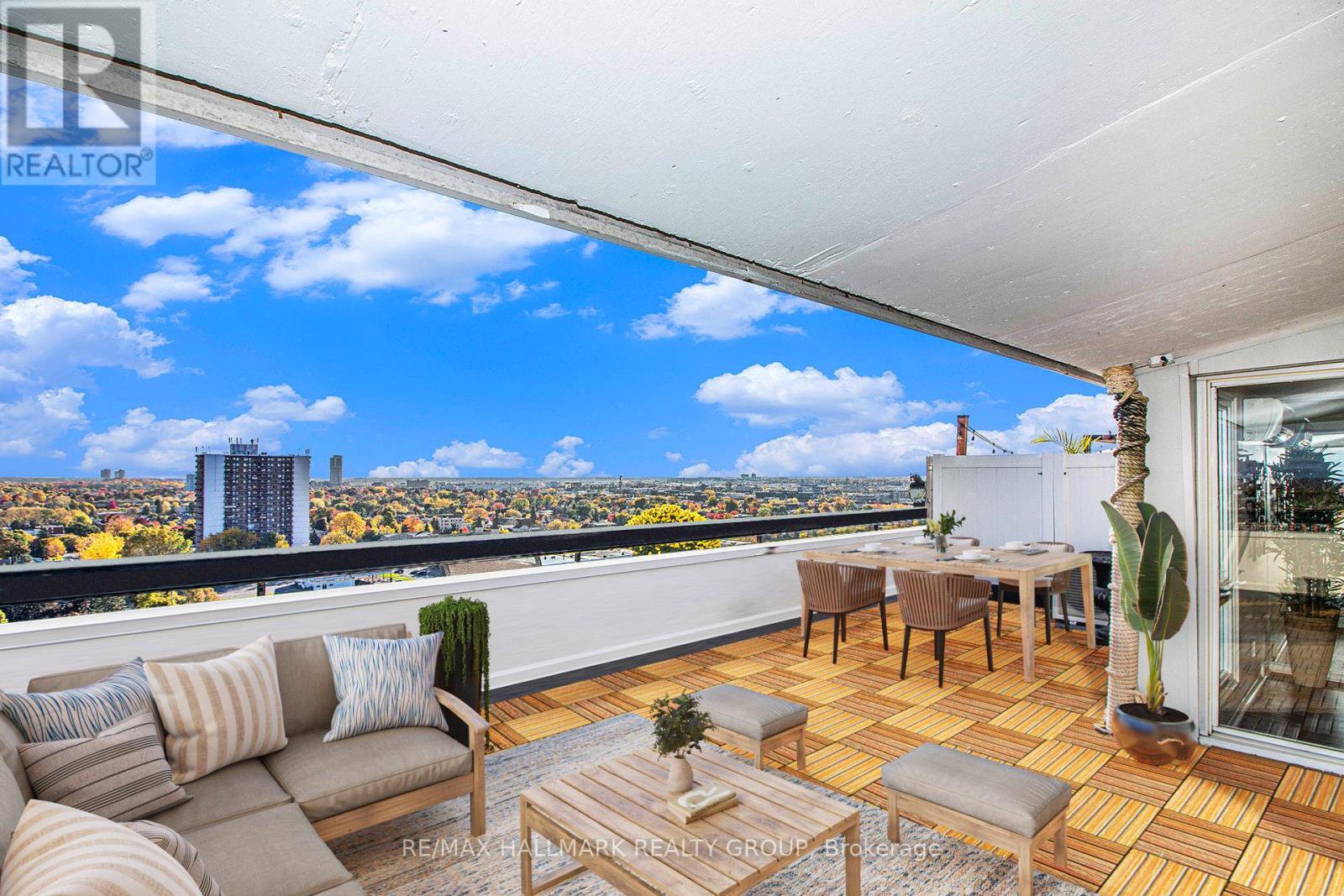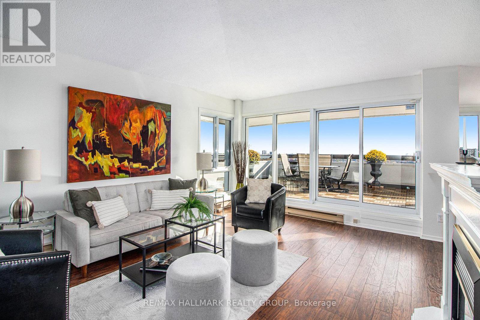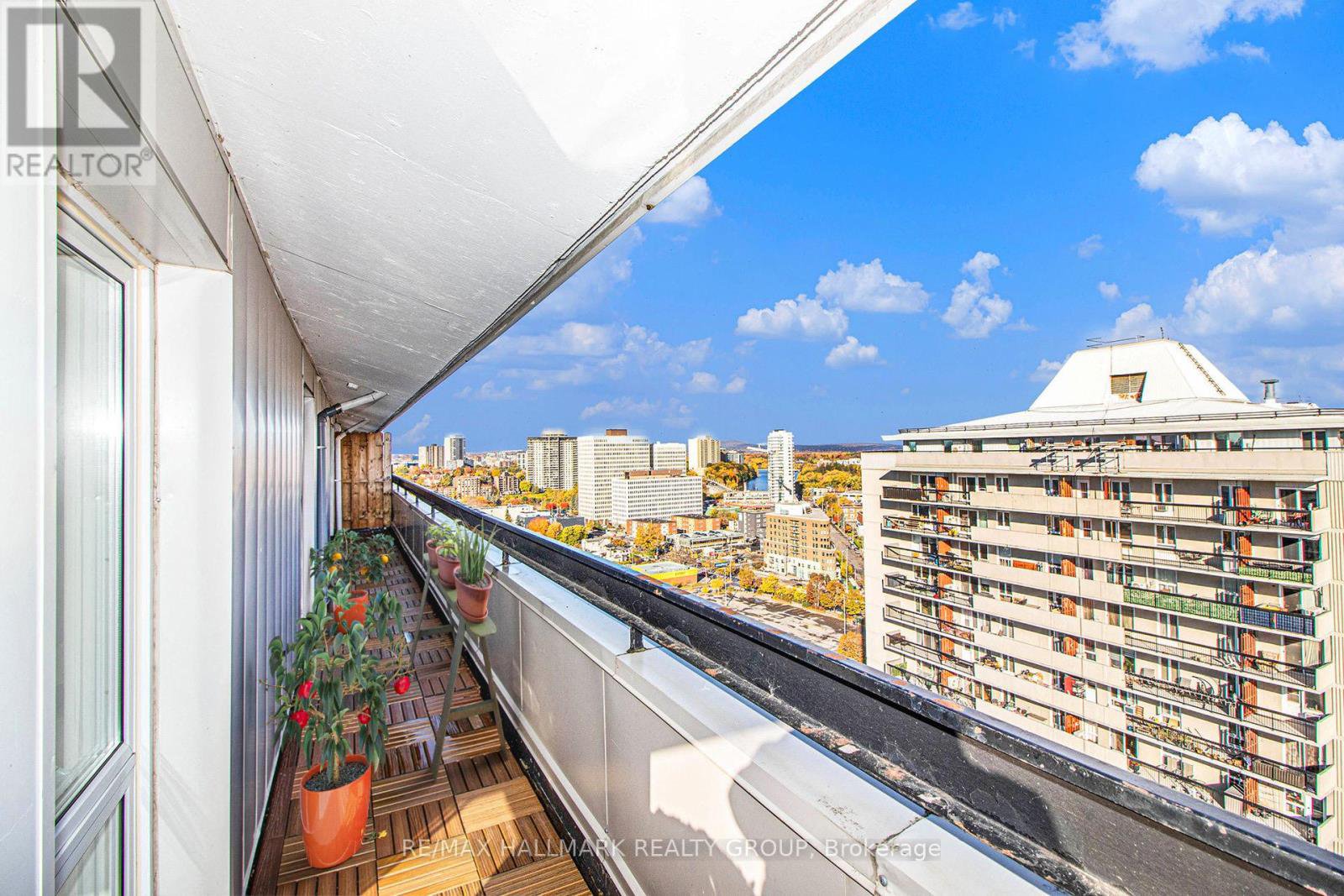 Looking for some wow factor? Is bang for your buck important? Check this, just shy of 1000 "real" square feet, PENTHOUSE with spectacular views of the sunrise, tree tops of the community and Gatineau Hills as well as the lazy Rideau River to the west from the huge 400+ sq ft deck, on the quieter side of the building, a perfect spot to entertain and relax. Unique vaulted ceilings throughout the interior spaces make this light filled apartment just shine! There are 2 full bathrooms ( only the penthouses do in this complex of three towers), both have been renovated. The kitchen is an older renovation with modern design elements and is very functional now but it could we really "wow" if you knocked down the wall to the living space. The dining is adjacent to the kitchen and the living room space has been divided to provide a home office nook for those days you still get to work form home. There is a handy storage closet IN the unit as well as your own exclusive use locker just a few steps up from your apartment, again, a feature only the penthouse units have. The only modern convenience missing in the unit is laundry but this building has a very pleasant ground floor laundry room for residents to use. As well, you've got one assigned parking spot at your disposal. Don't own a car? (you really don't need one living here!), rent it out to a fellow resident. Reasonable condo fees with excellent amenities. Super well managed complex with onsite office. Bus to Parliament Hill in 20, bike in 15, walk in under 45.... the Rideau River bike and ski paths are practically at your door. Loblaws and the Green Fresh grocer are across the street as is Louis Pizza: an Ottawa classic! don't let the Brutalist architecture of the tower dissuade you form looking at this incredibly unique and super affordable condo. Cats and birds permitted but not dogs. No smoking. Status Certificate package on file. Rooms listed as "Other": first one is the in suite storage and the second is the