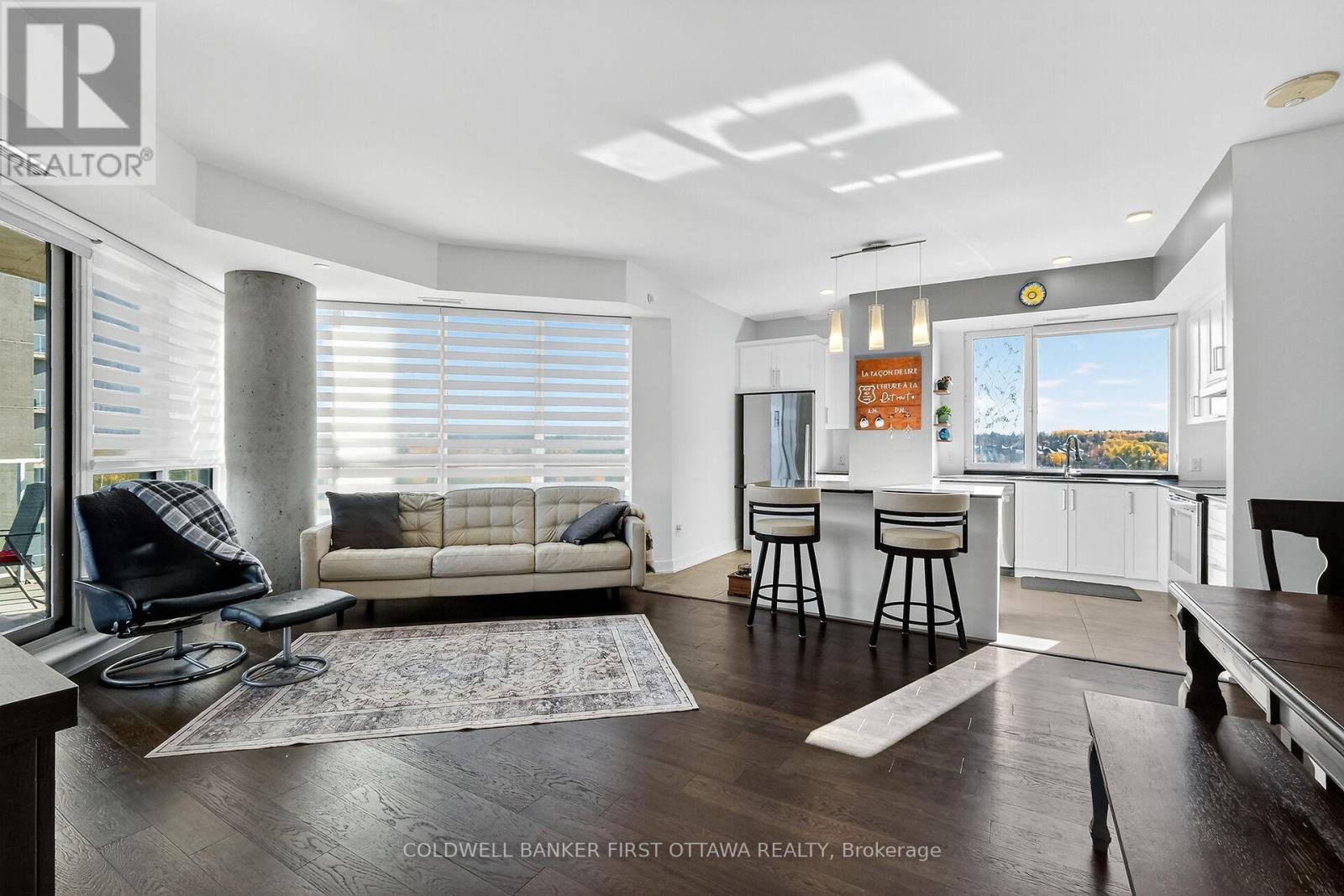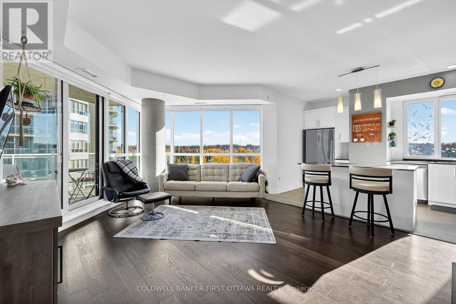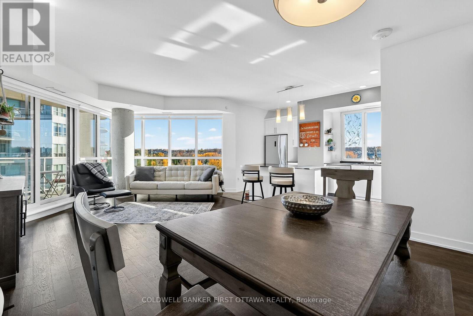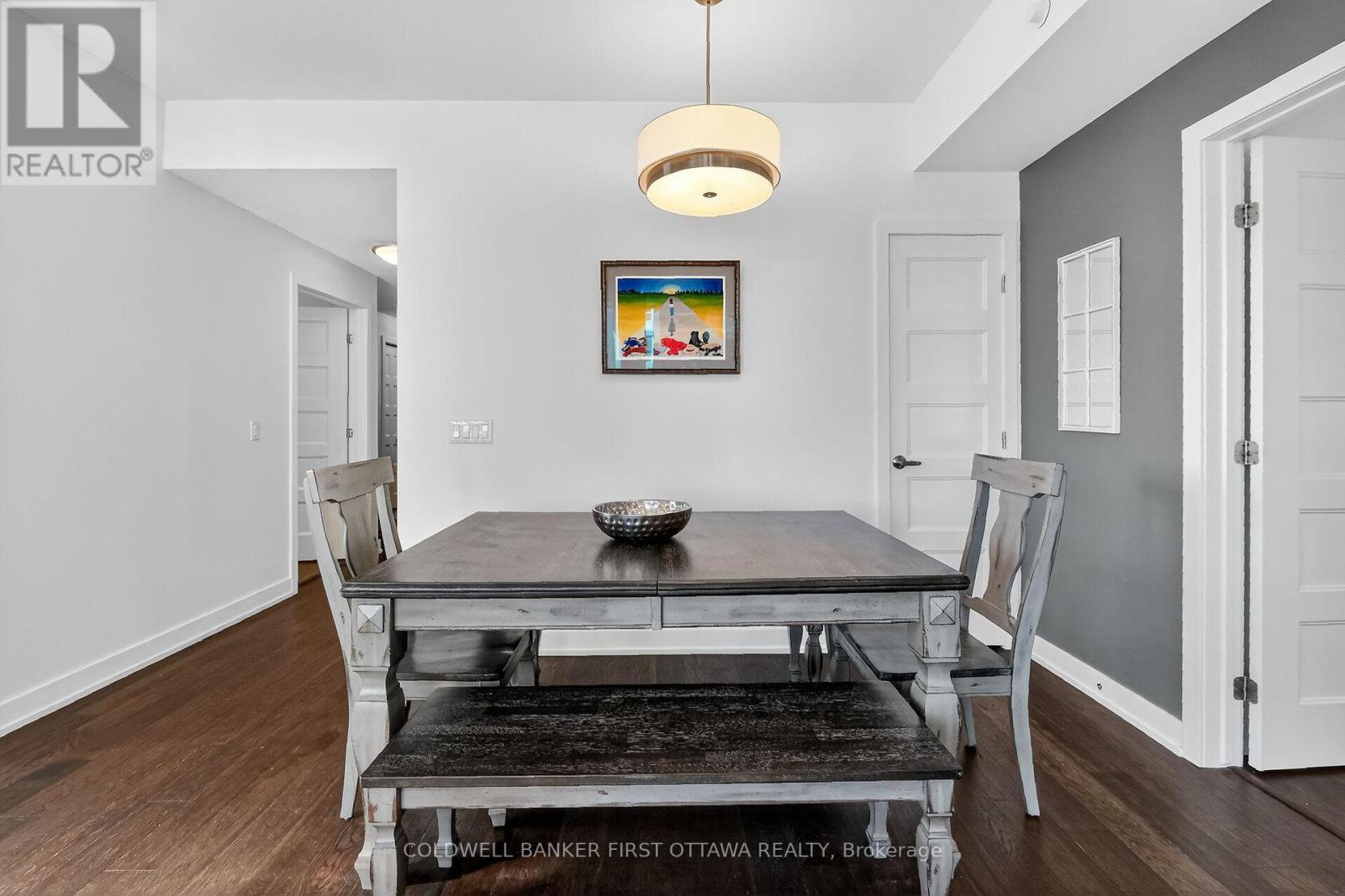 Spacious and well laid out 2 bedroom, 2 bath condo in the coveted Petrie's Landing area with River view. Over 1150 square feet of living space, with 2 balconies (extra 287 s.f.) one with views of the River and the other overlooking Orleans (North- East-South views). The condo comes with 1 underground parking space and one locker. No carpets in the unit, all engineered hardwood or tiles. Bright unit with living-dining-kitchen open plan, bedrooms separated by the living space each have their own full bathroom. The primary bedroom offers a walk through closet and lux bathroom with double vanity, separate tub and double shower; the 2nd bathroom is a 3 piece bathroom. Good size vestibule at t the entrance, in unit laundry and storage area. Kitchen has a breakfast island, generous counter space counters (Granite) and a window. Linen closet near the dining area. Quality blinds throughout, stainless kitchen appliances. You will love the roof top amenities, including lap pool & spa with gorgeous views of Petrie Island, the adjacent party room (looks like a lounge!) and exercise room. Other amenities include bicycle storage, kayak, paddleboard storage & indoor car wash. Also walking distance to the LTR Park & RIde at Trim Rd and soon to be LRT stop on Line 1. Occupancy possible before Christmas. Maintenance fees include heating & water (no hot water tank rental!)..