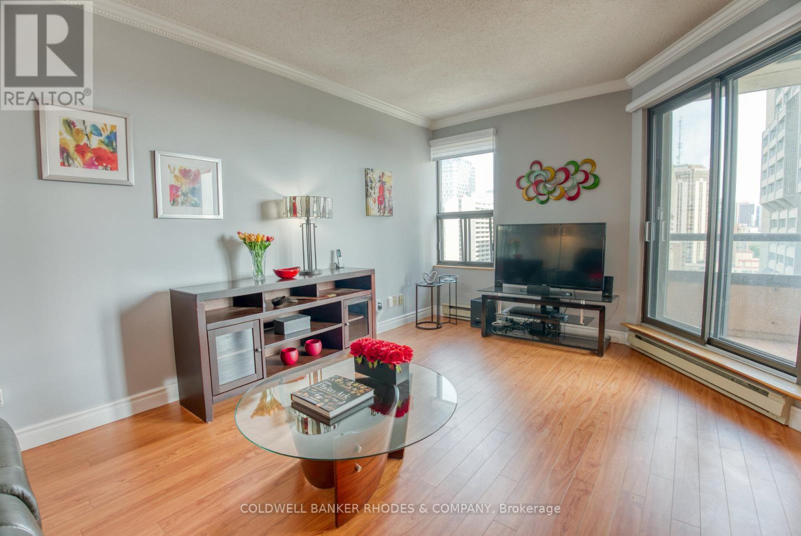 Over 1,000 square feet of bright living space! Awesome amenities including a pool on the 23rd floor! This two storey home in the sky has an unbeatable location steps from Parliament Hill, Community Gardens, Food Basics, Sparks Street restaurants, Light Rail at the Lyon Station, or cycle along the Ottawa River! This modern 2 bedroom, 2 bathroom, apartment features laminate floors, a renovated kitchen, a large open concept living / dining room, 2 balconies with South and North vistas, in-unit laundry, in-unit storage, a separate dedicated locker and underground parking. The primary bedroom has an ensuite three piece bath and the second balcony. This excellent condo Building known as Kevlee Tower, also features an exercise room, sauna, party room with Fooseball, Ping Pong and Guest Suites.