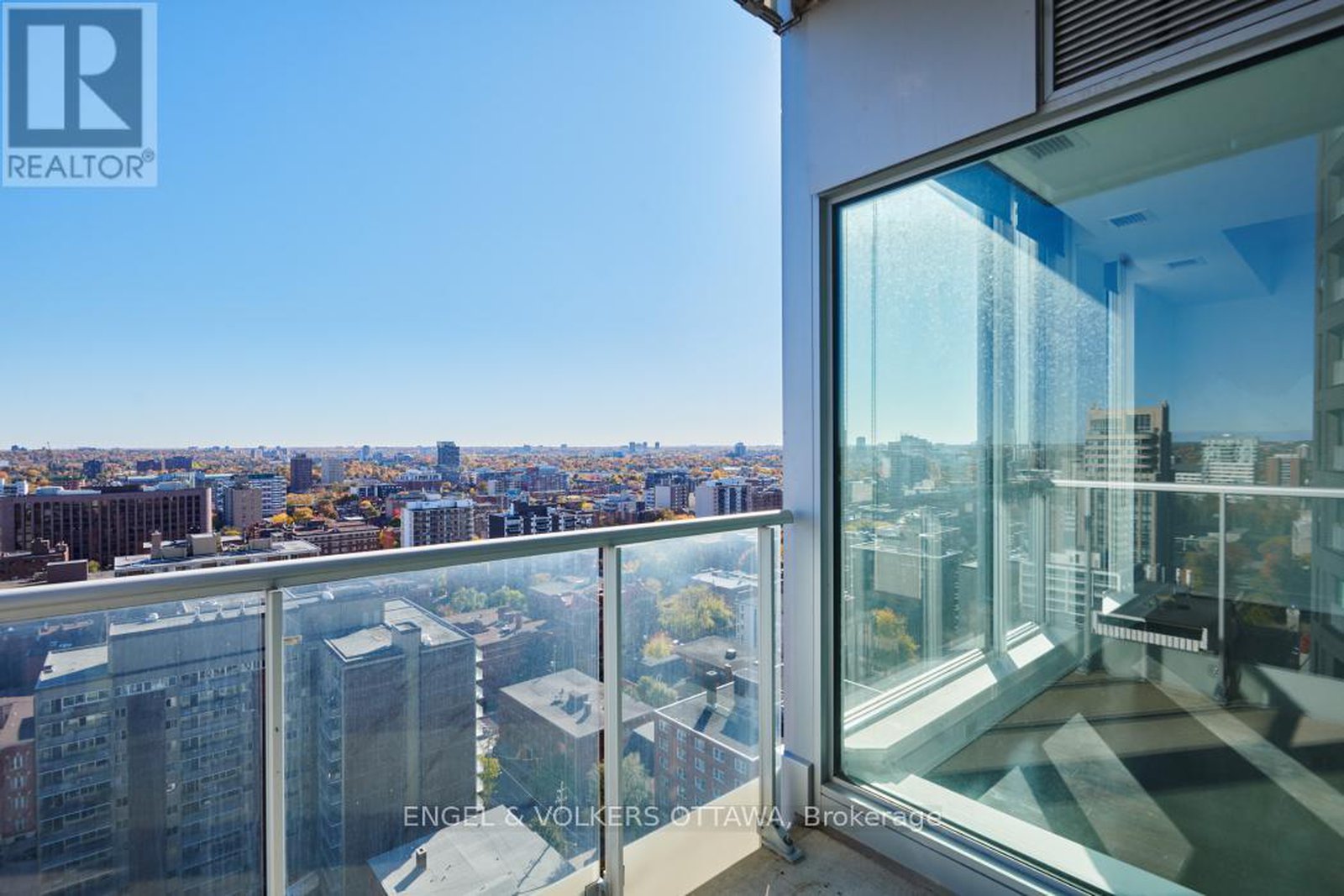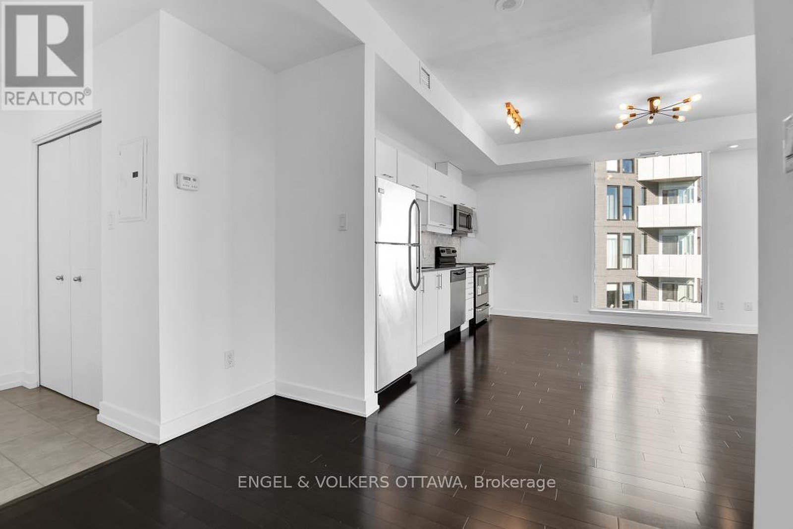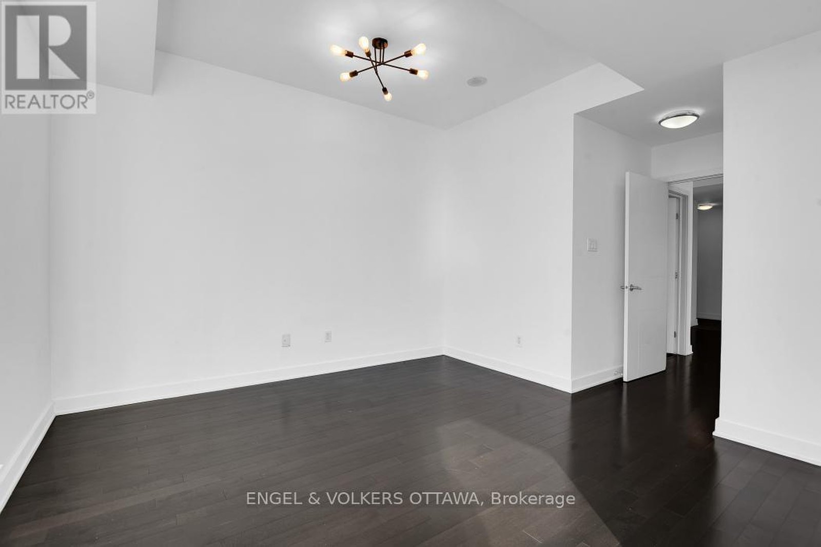 Luxurious 1-bedroom + den CORNER unit, spanning 805 sq. ft.-one of the largest 1 bed. floor plans in its collection. This sophisticated residence offers an open-concept layout with floor-to-ceiling windows that provide million-dollar, unobstructed downtown views from the 20th floor. The custom kitchen is equipped with granite countertops, a beautiful new backsplash, and elegant white cabinetry. Sliding doors open to a private balcony, perfect for enjoying the city scape. The versatile office/den area is conveniently located to the right of the kitchen. The large primary bedroom boasts a corner window and a dedicated study area. Additional features include in-suite laundry (2024), custom roller blinds (2025), hardwood floors, and updated light fixtures throughout the unit. A parking space and storage locker are also included. Residents will enjoy an array of amenities, including a 24-hour concierge/security service, a guest suite, a terrace, an outdoor patio with BBQs, an indoor pool, a gym, and a conference room. For ultimate convenience, Farm Boy is located on the ground level, with amazing restaurants and an LCBO just steps away. The building offers quick access to Parliament Hill, Rideau Centre, the University of Ottawa, and the Financial District.