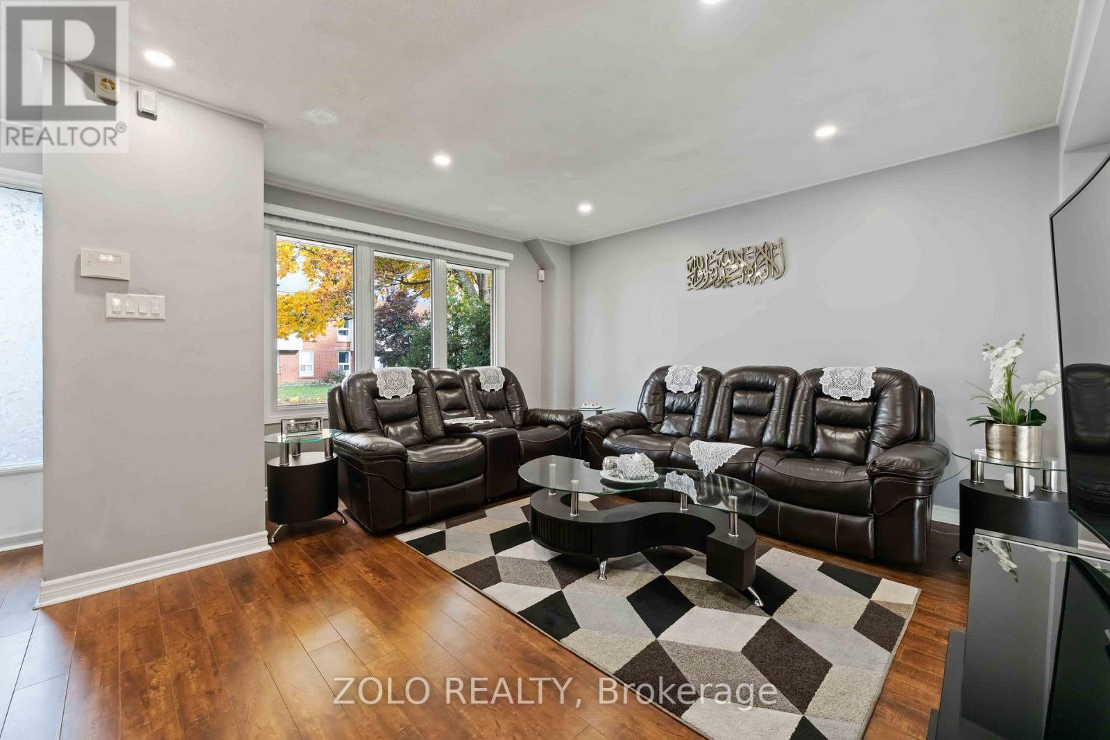 Beautifully Updated END UNIT Condo Townhome in Desirable Family-Oriented Area! Welcome to this bright and spacious 3-bedroom, 1.5-bath End Unit Condo Townhome offering comfort, style, and convenience. Featuring gleaming floors throughout the main level with pot lights. Beautifully updated kitchen with modern cabinetry & stainless steel appliances. Fully finished basement perfect for a cozy family room, home office, or recreation area or Movie Nights. Enjoy a private, fully fenced backyard with a storage shed - ideal for outdoor entertaining or relaxation. Includes one designated parking space for your convenience. Located in a sought-after, family-friendly community within walking distance to shopping, schools, parks, and transit. Perfect opportunity for First-time home buyers or Investors looking for a turnkey property in a prime location. Don't miss this move-in-ready Gem - Book your showing today!