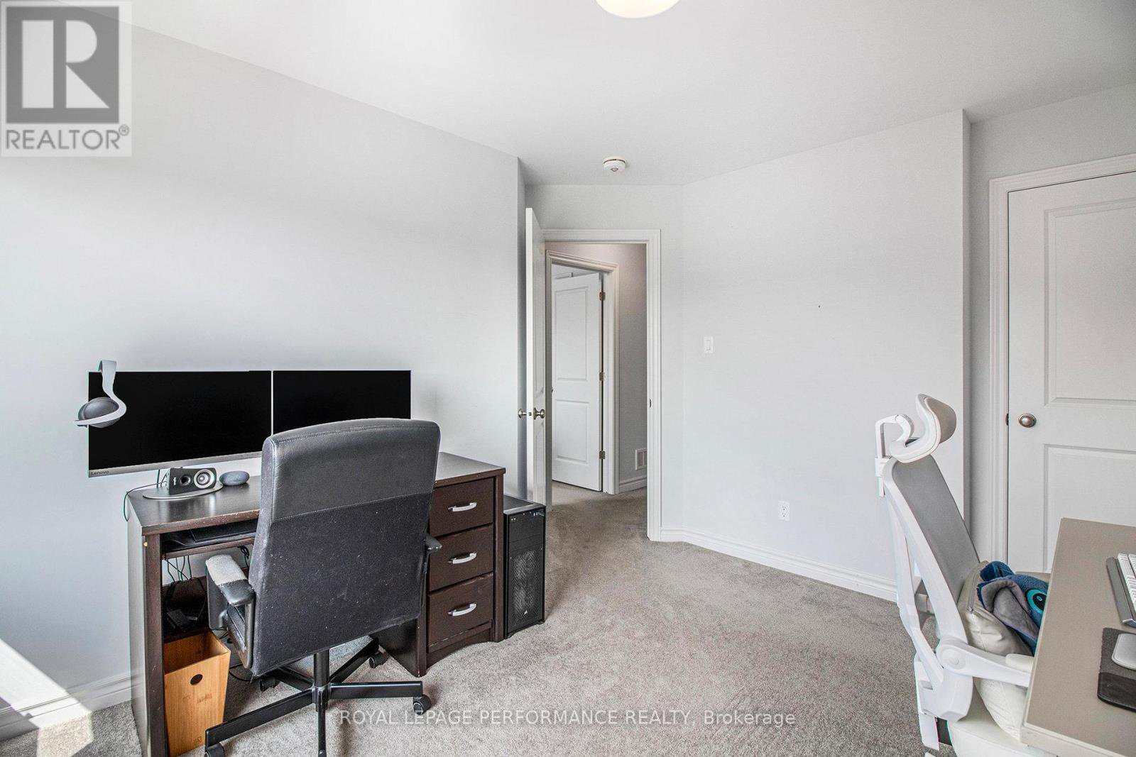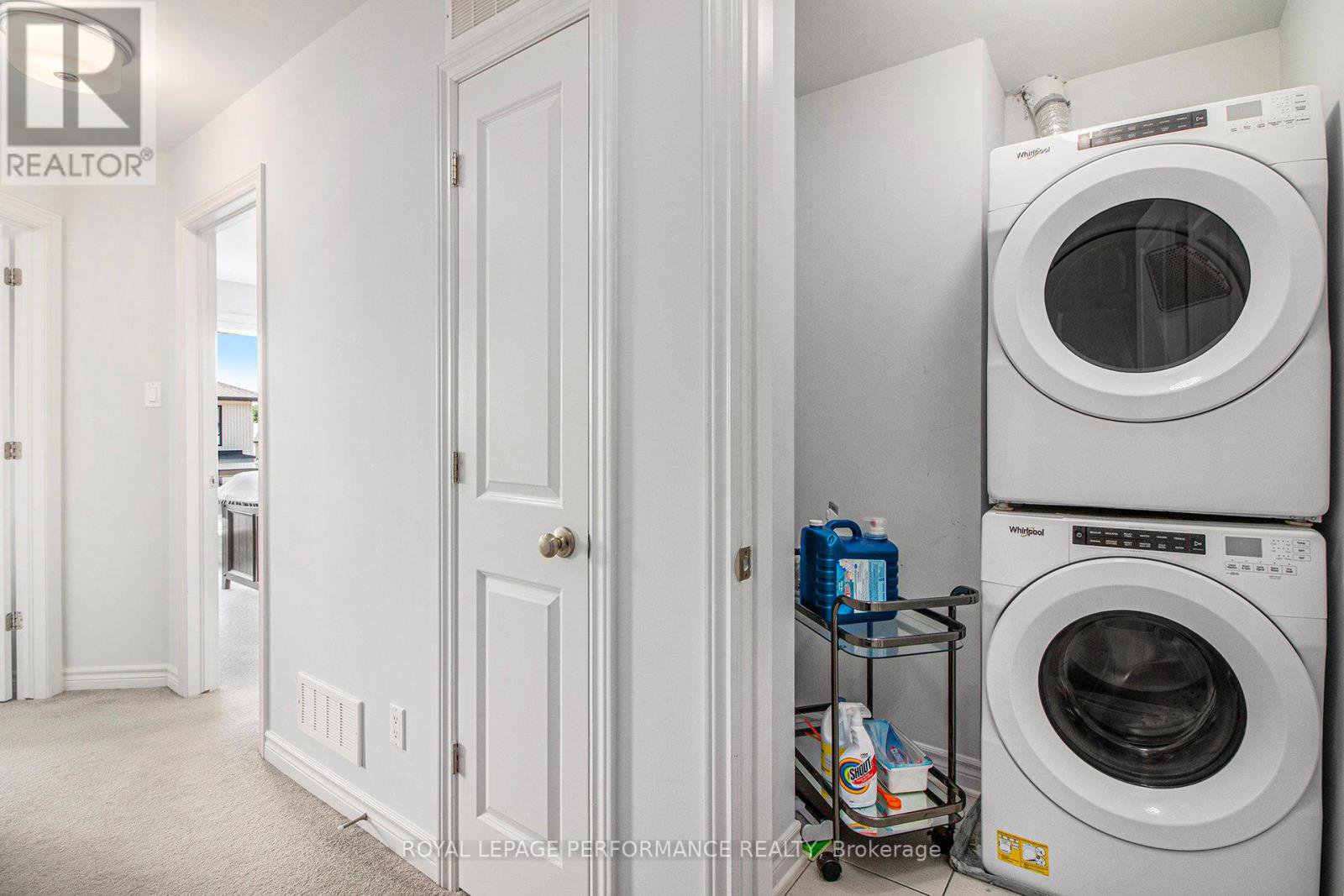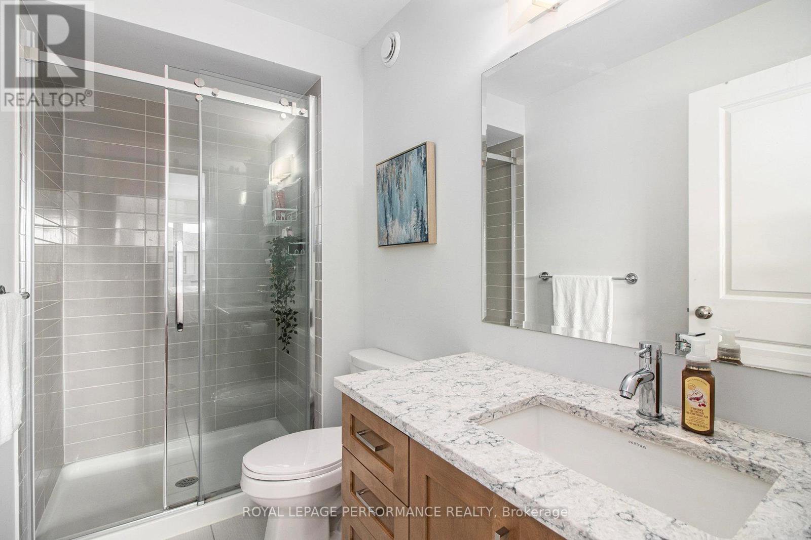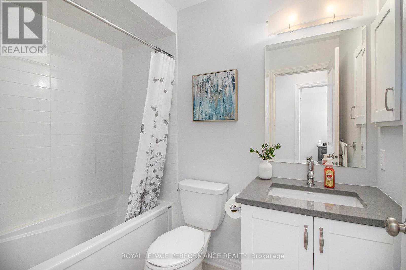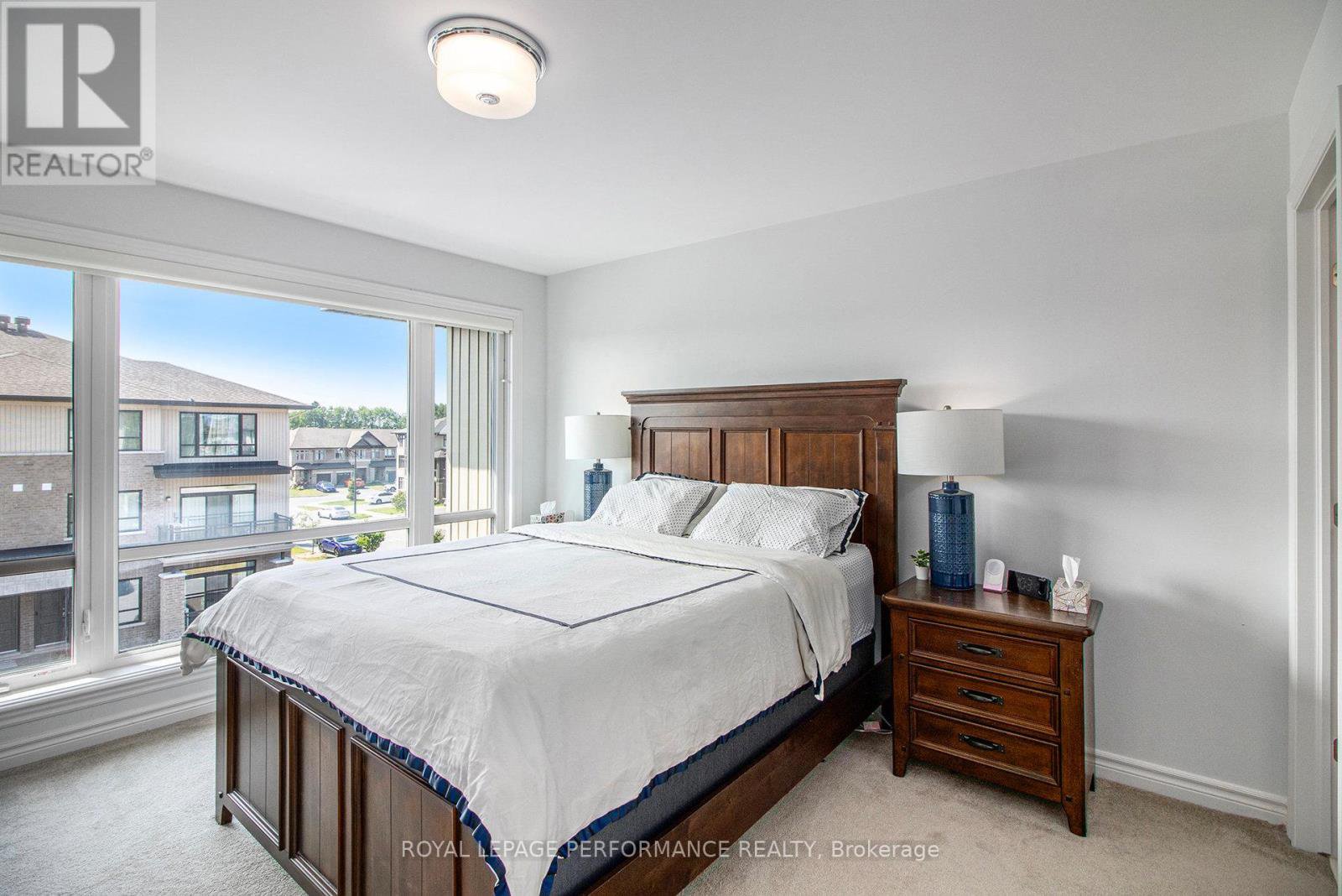 Spectacular Upper-Level 2-Storey Condo Top Floor with Premium Finishes! Welcome to this rarely available upper-level stacked 2-storey condo unit offering 1,196 sq ft of luxurious living space built in 2020! Boasting 2 spacious bedrooms, 2.5 beautifully appointed bathrooms, and impressive upgrades throughout, this sun-drenched home is a true gem. Step inside and be captivated by the stunning open-concept second level, featuring rich hardwood flooring and a dramatic wall of windows that floods the space with natural light. The stylish living room opens to a private balcony through sliding patio doors, creating a seamless indoor-outdoor flow, perfect for morning coffee or evening relaxation. The modern kitchen is a chefs dream, complete with sleek granite countertops, a designer tile backsplash, pot lights, stainless steel appliances, a breakfast bar, and a bright eat-in area ideal for casual dining. A chic 2-piece powder room completes this level, perfect for guests. Upstairs, the third level offers a tranquil retreat. The generously sized primary bedroom features a walk-in closet and a gorgeous 3-piece ensuite with an oversized glass shower and granite vanity. A bright and spacious second bedroom and a modern 4-piece main bathroom provide comfort and convenience for family or guests. Additional features include in-suite laundry, one parking space, and low-maintenance condo living at its finest. Located in a vibrant community just steps from parks, schools, walking paths by the pond, and all major amenities, this spectacular unit offers style, space, and unbeatable convenience. Don't miss your chance to call this exceptional property home!