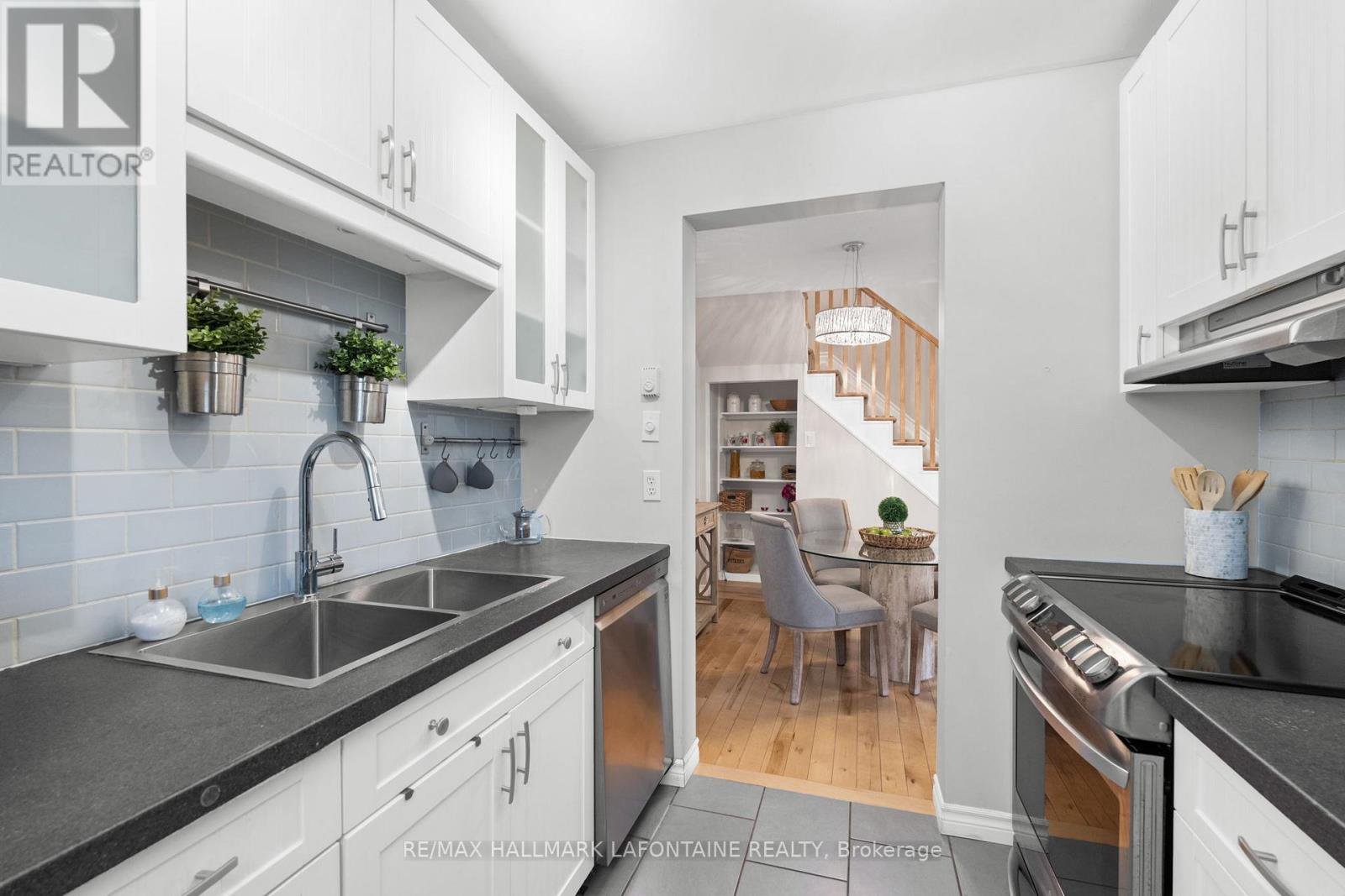 Find yourself surrounded by lush greenery and a peaceful sense of privacy in this beautifully maintained home-just minutes from the Ottawa Hospital, Trainyards shopping, and steps from the scenic Rideau River. This vibrant community is ideal for families and downsizers alike, offering walkable access to parks, trails, schools, and transit.Inside, pride of ownership shines throughout. The home has been meticulously upgraded with thoughtful touches, including a custom front foyer bench with storage, Mitsubishi Electric heat pump/AC (2020), new toilets, staircase runners, and basement carpet (2021). The stylish kitchen is equipped with stainless steel appliances (2021) and a Samsung washer and dryer set (2021) in the oversized laundry room.This 3-bedroom layout offers two bedrooms on the second floor, plus a large legal third bedroom-or a flexible recreation space-on the lower level, complete with a 3-piece bath. Storage is abundant, from under-stair nooks to full-room capacity in the laundry area.One assigned parking space is included. Enjoy life where comfort meets convenience-near green space, top hospitals, and every amenity that makes Ottawa living easy and inspired.
