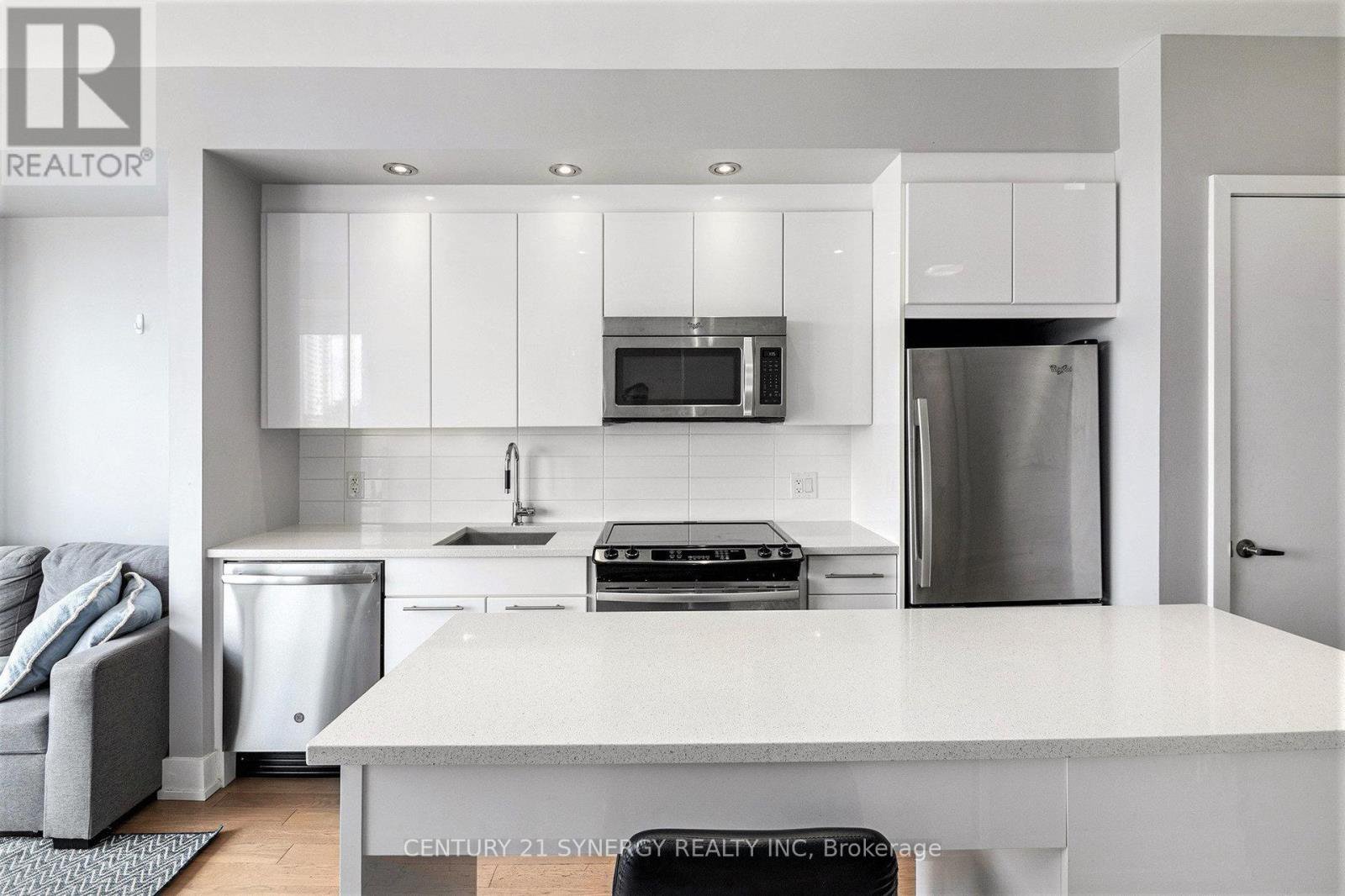 Experience the Pinnacle of Westboro Living. Welcome to this exquisite 1-bedroom, 1-bathroom corner unit in one of Ottawa's most vibrant and desirable neighborhoods - Westboro. Perfectly positioned on the private corner of a sought-after building, this condo offers unobstructed north facing views of Gatineau Park, the Ottawa River, the downtown skyline, and breathtaking sunsets - the perfect place to unwind and soak in panoramic views after a long day. The modern open-concept layout features sleek contemporary finishes, gleaming white cabinetry, quartz countertops, stainless steel appliances, and a stylish eat-at island ideal for entertaining. The spacious primary bedroom offers ample closet space and scenic views of the hills. A pristine 4-piece bathroom and convenient in-unit laundry complete the interior. This upscale building boasts an impressive list of amenities, including expansive rooftop patio with BBQs and entertainment space, fully equipped fitness centre and yoga studio, party room, movie theatre, and sauna, pet grooming station, bike and ski tuning room, and more. Located just steps from shops, restaurants, cafes, galleries, Westboro Beach, the LRT, and bike paths - this is urban living at its best. Don't miss this rare opportunity to own a truly special condo in the heart of Westboro.