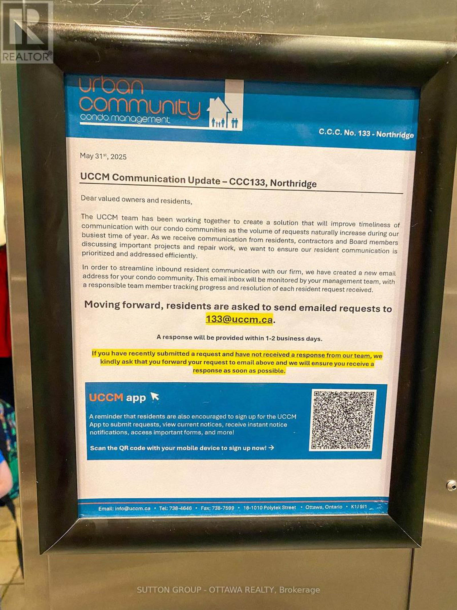 A lovely 2 bedroom apartment, in a convenient & pleasant location, with a view facing toward the Gatineau Hills. Features a sunken Living room with a balcony. The Dining room looks down on the Living room, with a view of the Gatineau Hills. This apartment has been gently Owner occupied. The kitchen, as with the entire apartment is clean & functional. There are 2 good sized Bedrooms and a 4-pce bathroom. For convenience, don't miss the storage room. Also a functional sized Foyer area. Parking has 1 spot, reachable from inside the building (and 1 storage locker), on the second floor (you're not exposed to overhead rain or snow). with Visitor spots to the right of the main entrance. The Condo also has a main floor Laundry room, a party room, bike storage, 2 Guest suites and an outdoor pool. Condo fees include heat, cooling, hydro and water. You're close to shopping, a bank, transportation, all in a quiet area. Don't miss it!
