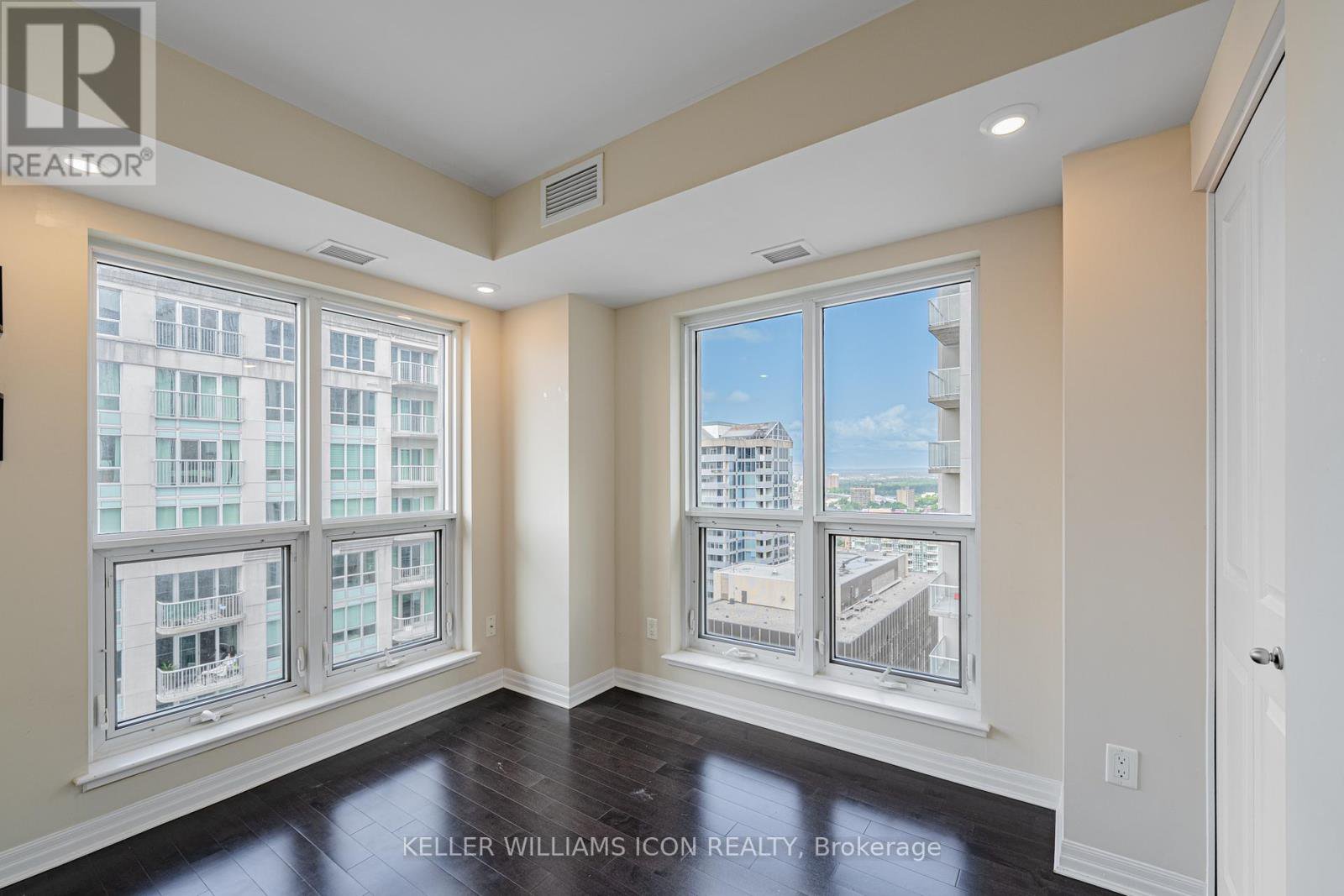 Stunning Two-Bedroom Condo in the Heart of Downtown Ottawa.This bright and modern 740 sq. ft. condo comes with a Premium parking spot right across the elevator and a XLarge private locker behind the parking. Unit offers extra sunlight from the two side windows, functional layout featuring a sleek, contemporary kitchen, an open-concept living area, one larger sized bedroom and one smaller bedroom, perfect for a private office or a smaller bedroom. Unit located on 22nd floor with sweeping views of the Ottawa River. Floor-to-ceiling windows fill the home with natural light, creating a peaceful retreat above the city's energy. Includes one Premium underground parking space and a individual entrance storage locker behind the parking for your convenience. Residents enjoy a wealth of amenities in this well-managed building, including a 24-hour concierge, indoor pool, fitness center, sauna, theatre room, and party/meeting rooms. Step outside and explore everything downtown has to offer.Parliament Hill, the ByWard Market, Rideau Centre, University of Ottawa, and LRT transit are all just a short walk away. Ideal for professionals or anyone seeking a central, turn-key lifestyle.