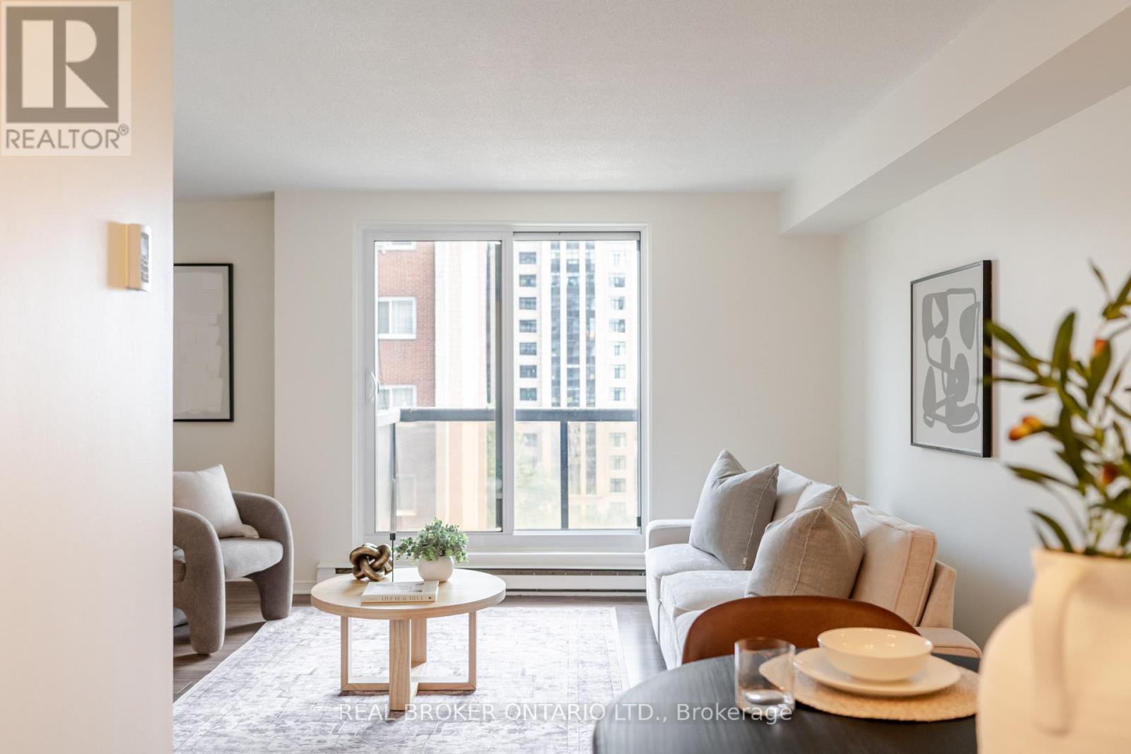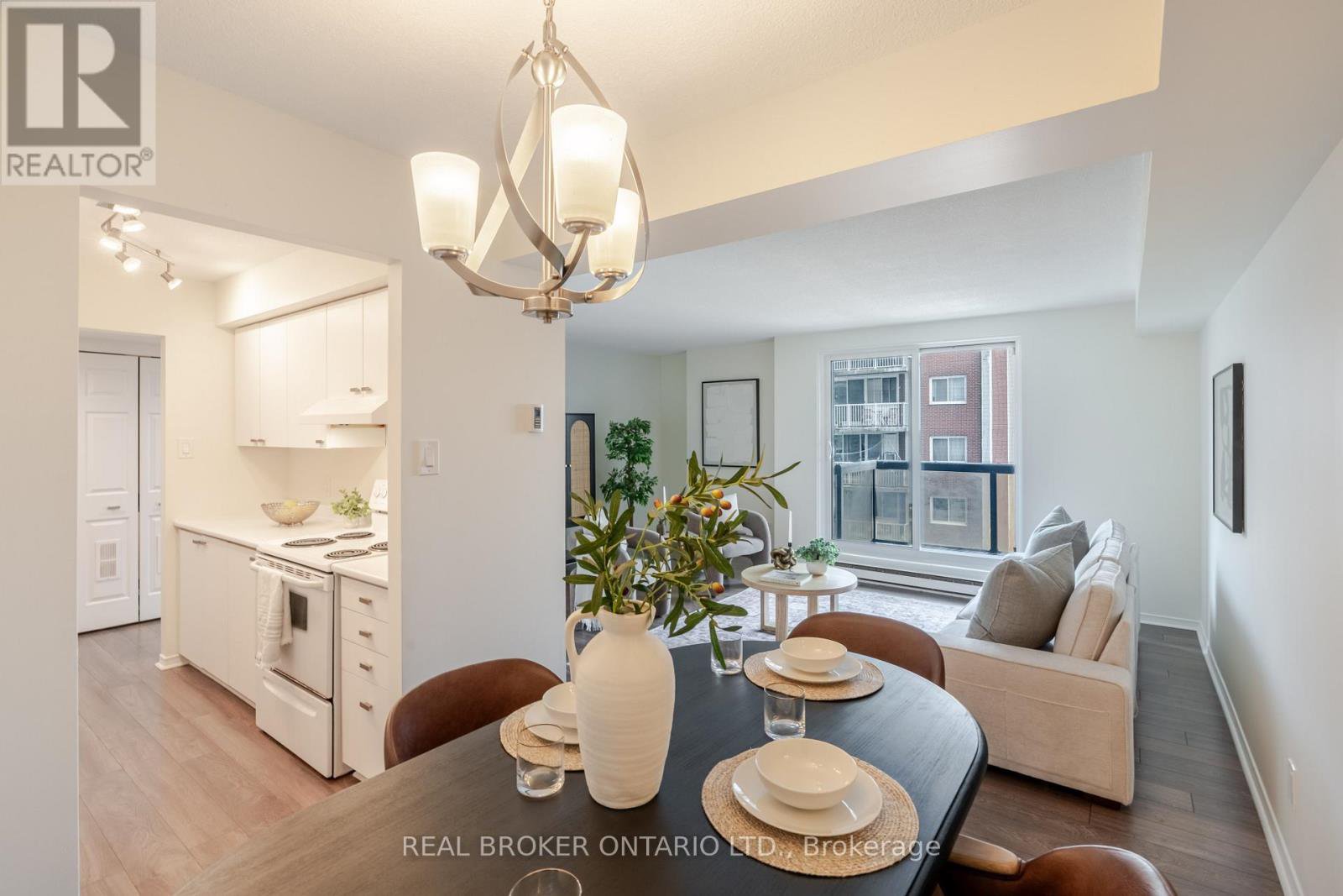 Welcome to Kent Towers, ideally situated in the heart of the action in downtown Ottawa. This spacious & move-in ready 2-bed, 1-bath condo offers over 800 sq. ft. of living space + a covered balcony, with a rare blend of size & value. The full-sized galley kitchen features generous cabinetry, counter space and a dishwasher; no compact, apartment-sized appliances here! 2 generous sized bedrooms including a primary with space for a king-size bed. Full bathroom with a dedicated linen closet. In-suite laundry is conveniently located within it's own dedicated laundry and storage room. Bonus features include central AC -- no portable AC units! -- as well as a separate storage locker and underground parking. A well-managed building with attentive management staff and on-site security, amenities such as pool, sauna, hot tub and fitness room, all within walking distance of Parliament, LeBreton Flats, LRT, Farm Boy groceries and more.