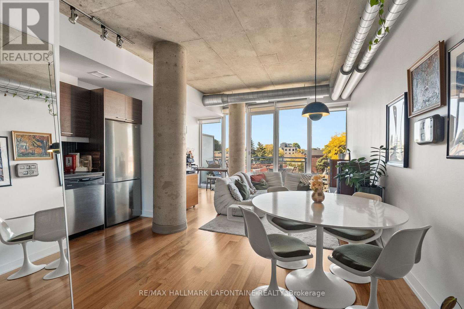Welcome to Central 1 Lofts - where city vibes meet cozy comfort. This bright and airy 1-bed, 1-bath condo gives you open concept modern living space plus a 62 sq. ft. balcony to enjoy golden-hour sunsets and downtown views. The kitchen is a chef's dream with stainless steel appliances, flat-panel wood cabinetry, and stone countertops. The living area is complete with floor to ceiling windows and space for a work from home set up! Amenities include in-suite laundry, central air, and a pet-friendly policy. Enjoy access to a fitness room, party room, media room, and concierge. Located at Bank & Gladstone, you're just steps from public transit, grocery stores, coffee shops, restaurants, and downtown Ottawa's top neighborhoods including the Glebe and Little Italy. Ideal for Ottawa first-time homebuyers or real estate investors. Don't miss this turn-key condo in one of the city's most walkable and desirable locations.