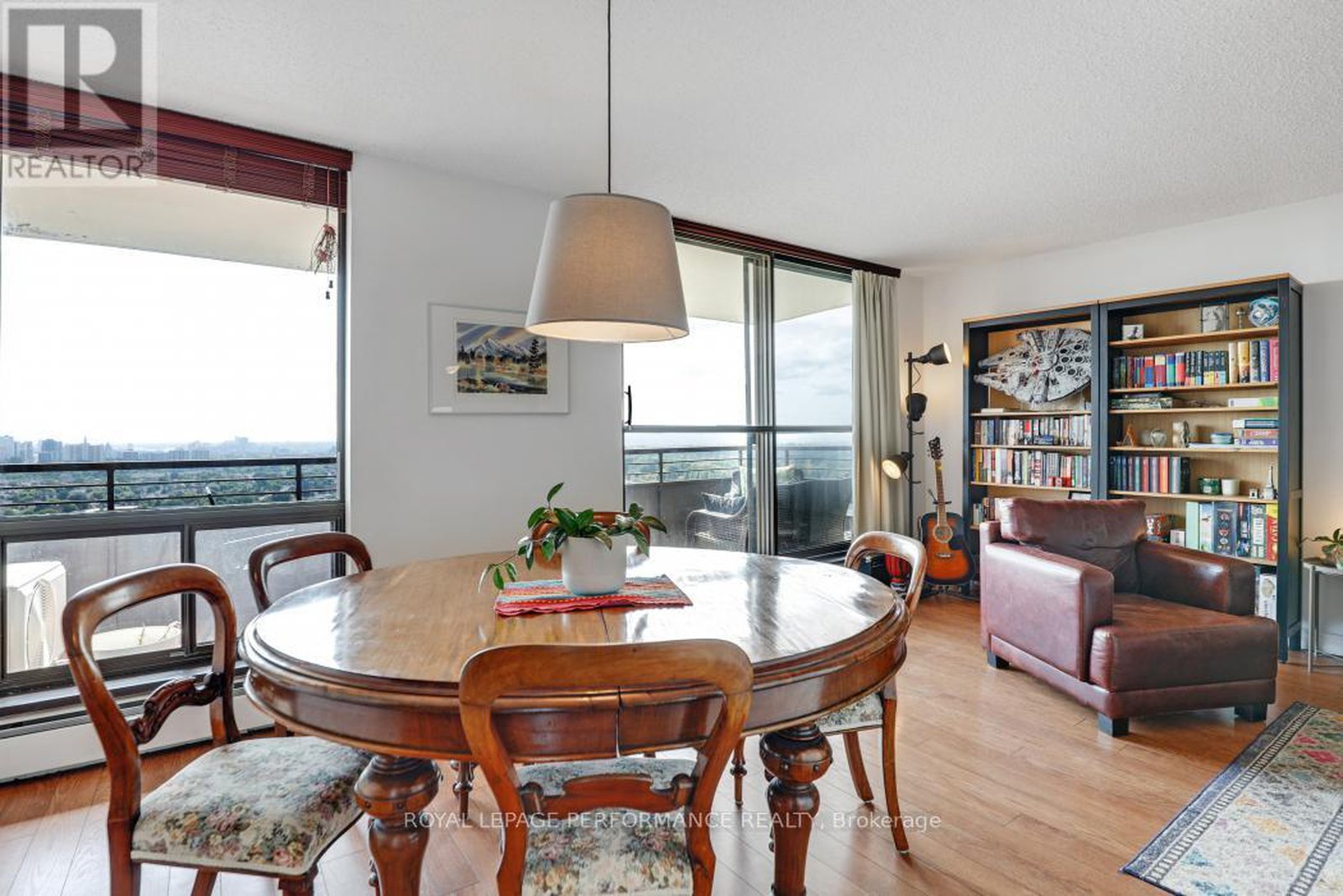 Enjoy breathtaking, unobstructed western views with stunning sunsets from the 23rd floor of this thoughtfully designed 3-bedroom, 2-bathroomcondo in the well-established community of The Highlands. Step out onto the large balcony and take in the expansive skyline. Inside, you'll find aspacious open-concept layout with a rare in-unit laundry - a standout upgrade compared to many units in the building. Condo fees also includeheat, hydro, and water, making for stress-free living. The beautifully maintained grounds feature an outdoor pool surrounded by a private pondand lush green space, creating a peaceful retreat right at your home. This condo also comes with parking and access to a fitness centre andparty/recreation room.Ideally located near shops, restaurants, scenic pathways, and public transit, this home offers the perfect blend of comfortand convenience. Stylish, functional, and move-in ready this onehas it all. 24 hours irrevocable on offers.