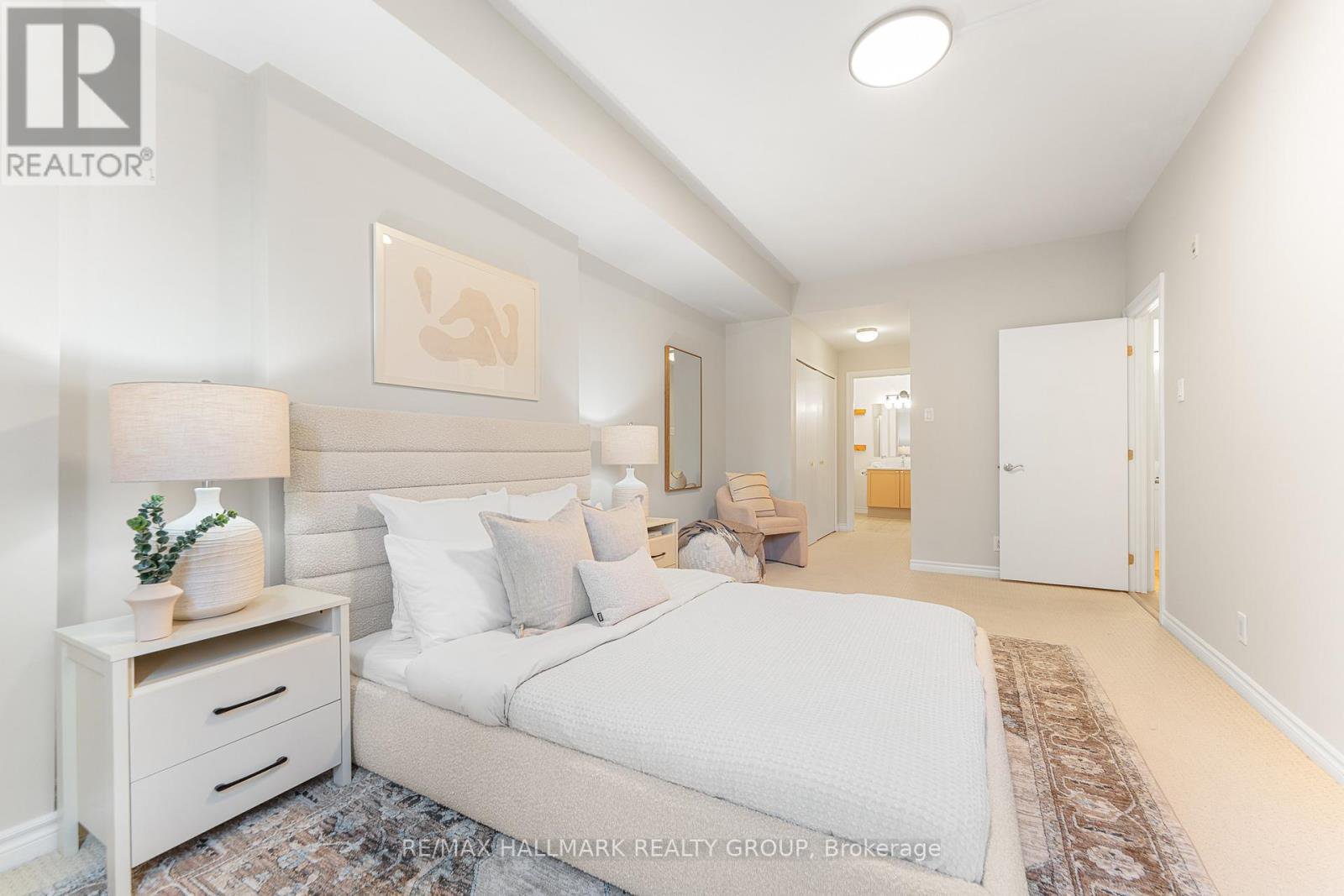 *INCLUDES TWO UNDERGROUND PARKING SPOTS!* Welcome home to Sussex Square, one of Ottawa's most sought after and desirable condo addresses! This beautifully appointed two bedroom + den, south-facing condo offers the perfect blend of comfort, convenience, and style. Step inside to discover a bright, open-concept layout featuring tall ceilings, garden views, and a walkout to your private patio overlooking the gardens. The chef-inspired kitchen includes stainless steel appliances, ample rich cabinetry, generous counter space, and a breakfast bar - ideal for both cooking and entertaining. The spacious den provides a flexible space for guests, a home office, reading nook, or even a hobby area - the possibilities are endless here! The Primary Bedroom boasts a walk-through closet and a sleek 3-piece ensuite, while the versatile second bedroom and full bathroom offer great flexibility for guests or family. Additional features include in-suite laundry, a storage locker, and TWO underground parking spaces - a rare find! Located in the heart of Lower Town, you're just steps to the ByWard Market, Global Affairs, Embassies, LRT stops, Parliament Hill, and beautiful river pathways. Enjoy the best of downtown living with a relaxed, quiet neighbourhood feel. You really can have it all here! Sussex Square offers its residents top notch, private amenities including a rooftop terrace with BBQs and panoramic city views (watch the Canada Day fireworks from home!), a full fitness centre, and a party room. Plus, Cathcart Park is right across the street for easy access to green space! This is downtown living done right - stylish, convenient, and connected. Come see for yourself and fall in love today!
