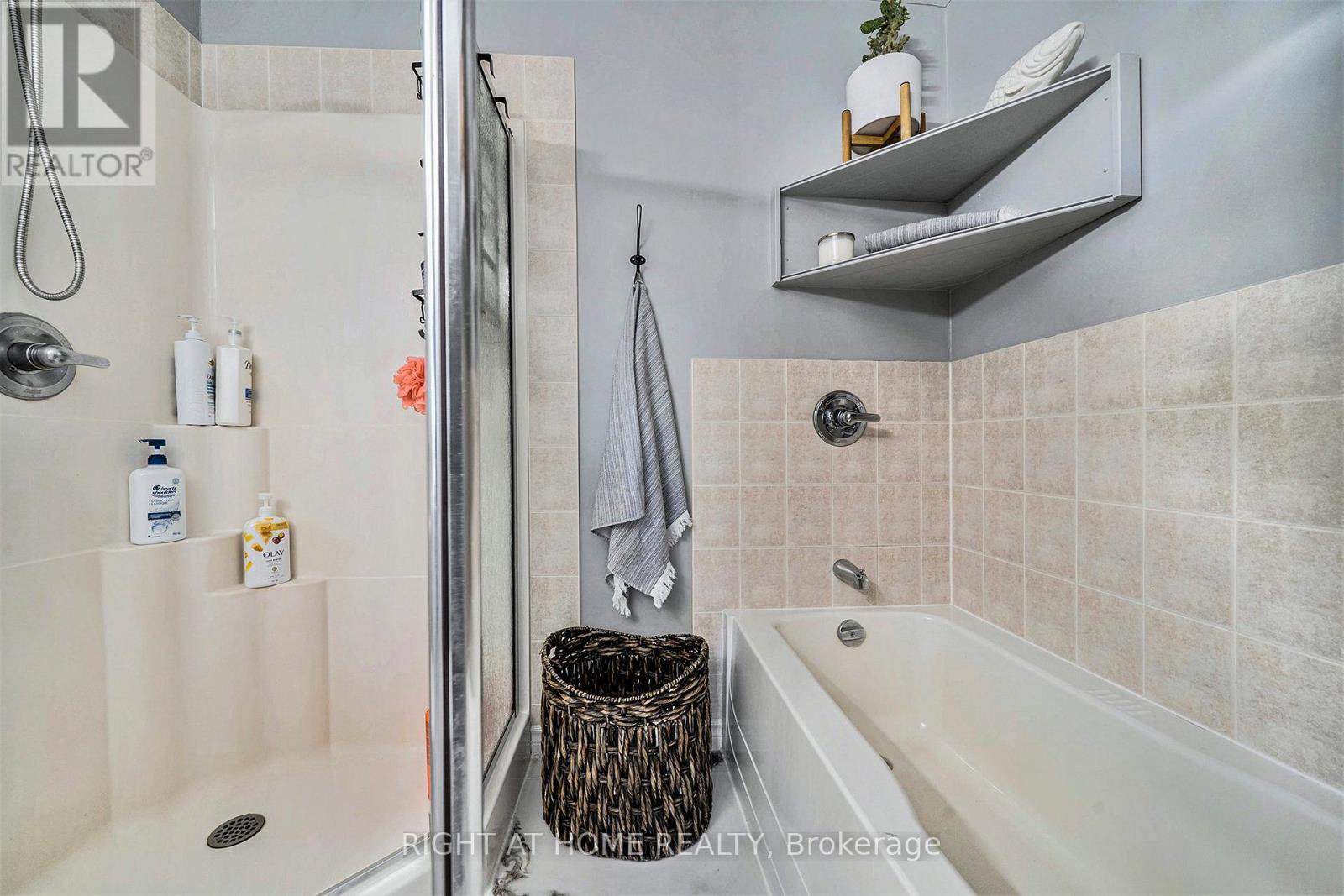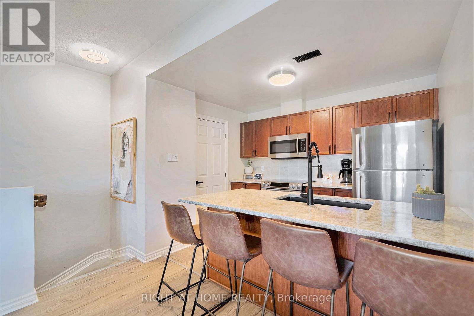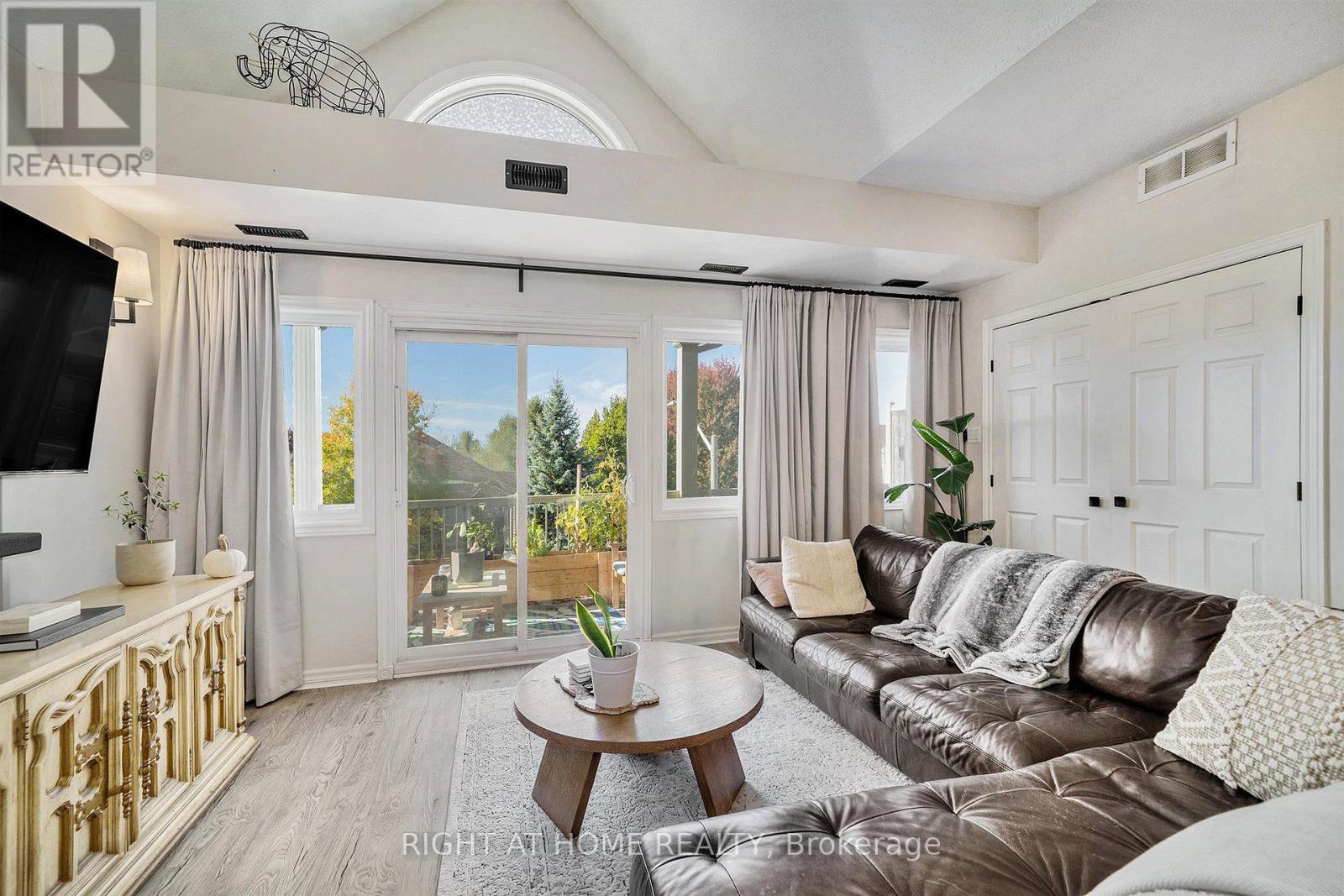 Bright, Fully Renovated 2-Bedroom Condo with Soaring Ceilings & Private Balcony. Welcome to this beautifully updated 2-bedroom, 1-bathroomterrace-level condo, where soaring cathedral ceilings and expansive new windows fill the space with natural light. Fully renovated with freshpaint and new flooring throughout (2025), this home blends modern style with everyday comfort.The open-concept layout showcases a stylishfully renovated kitchen featuring newly installed quartz countertops , granite sink, updated backsplash and brand-new stainless steel appliances.Perfect for both entertaining and daily living, the kitchen flows seamlessly into the spacious living and dining area.The stunning primary suiteboasts cathedral ceilings, a large window, and a generous walk-in closet. A versatile second bedroom offers flexibility for a home office, guestspace, or both. The contemporary 4-piece bathroom has been fully upgraded with sleek tiles, modern fixtures, and spa-like finishes.Step outsideto enjoy a massive private balcony with a natural gas BBQ hookup-ideal for relaxing or hosting friends.Additional highlights include in-unitlaundry, dedicated parking spot #21 (first on the right side of the building), and unbeatable location-just steps from parks, schools, transit, andeveryday amenities. Enjoy walking distance to the RCMP HQ, Rideau River, scenic trails, and grocery stores.This turnkey home offers the best ofstyle, convenience, and location-move in and enjoy! Recent upgrades: Floor (2025) ,Paint(2025) ,Kitchen(2024), Bathroom(2025), Refrigerator(2025), Stove(2025), Dishwasher(2025), Microwave(2025), Furnace (2021). No conveyance of offers until 2:00PM on Tuesday,November 11th ; however Seller reserves the right to review and may accept pre-emptive offer. 24 hour irrevocable on all offers.