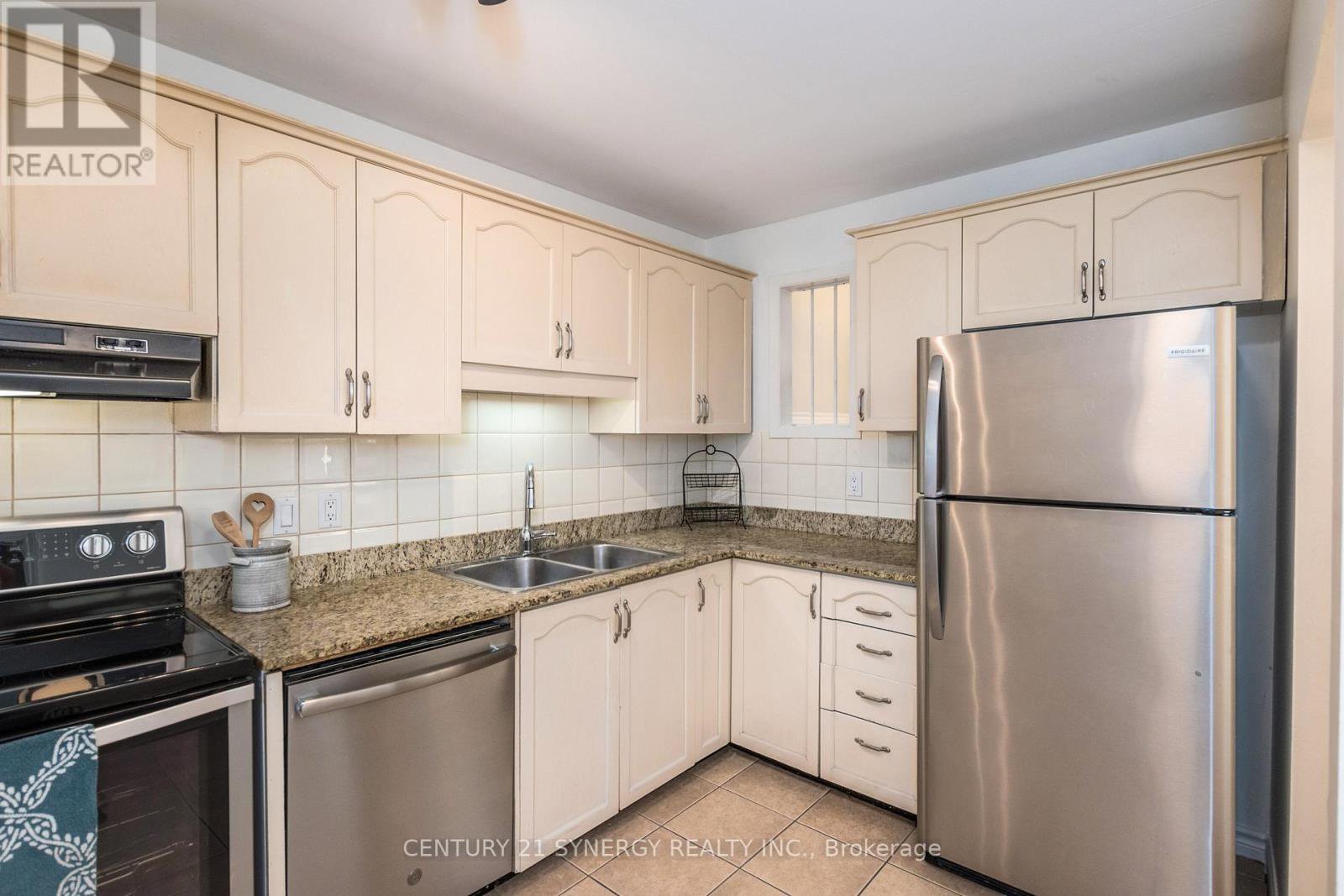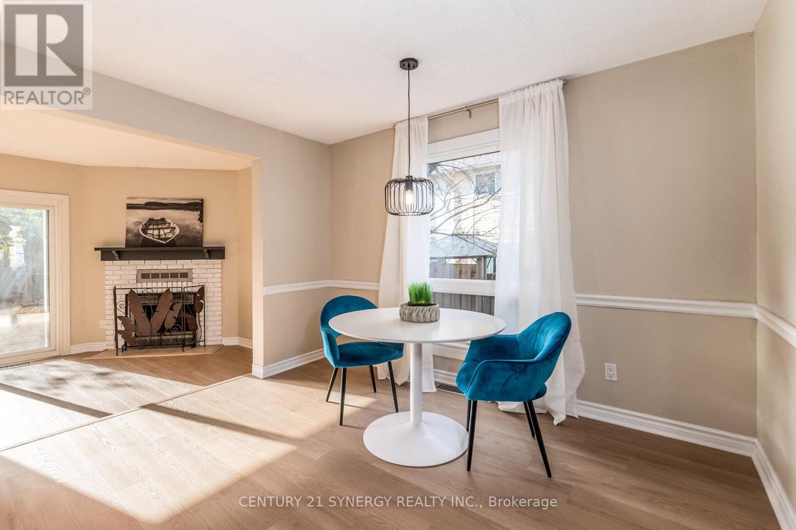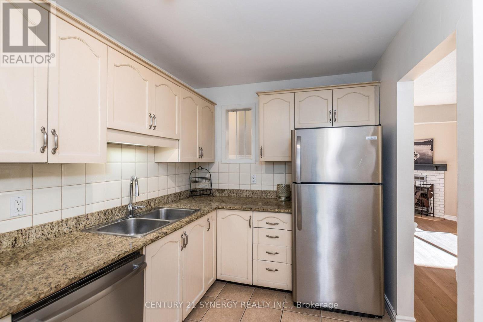 WOW Low Condo fees and extensive recent updates make this end unit townhouse a great value for a first time buyer or investor. Centrally located in a small complex with great access to Hwy 417, transit, shopping, parks and school. This end unit offers a open floor plan on the main level, with an updated kitchen that features granite counters, stainless steel appliances and lots of cupboard space. You could easily have a small bistro table here too. The dining and living room L-shaped and feature big bright windows & new vinyl plank flooring. The dining room has a lovely window & new light fixture. The living room has a patio door to the private rear yard and a wood burning corner fireplace. The main level is completed with a 2 piece powder room that has a new toilet and granite counters. The home also has inside access to the single garage. Upstairs you will find a massive primary bedroom with a full wall of closets and large picture window overlooking the yard and parkland in the rear. The two secondary bedrooms have great space for kids or home office and feature double closets. The second level is home to the renovated main bathroom with new tub and surround, new toilet & an updated vanity. The basement is finished with a great recroom, storage closets and laundry/utility room. The laundry is equipped with washer/dryer. This home has a newer roof (2022), new patio door, most new windows (2025) except dining room, new furnace, air conditioner and hot water tank (owned - 2024), new flooring throughout (2025) excepted kitchen. All new closet doors bedrooms and foyer. It was freshly painted in 2025 in neutral tones. CONDO FEES are just $245.86/month including water - Just move in and enjoy.