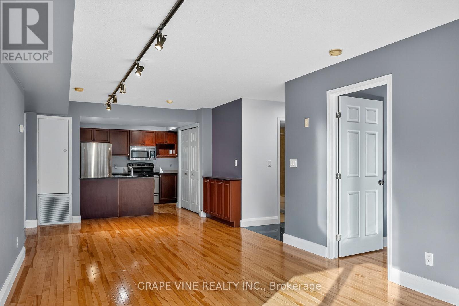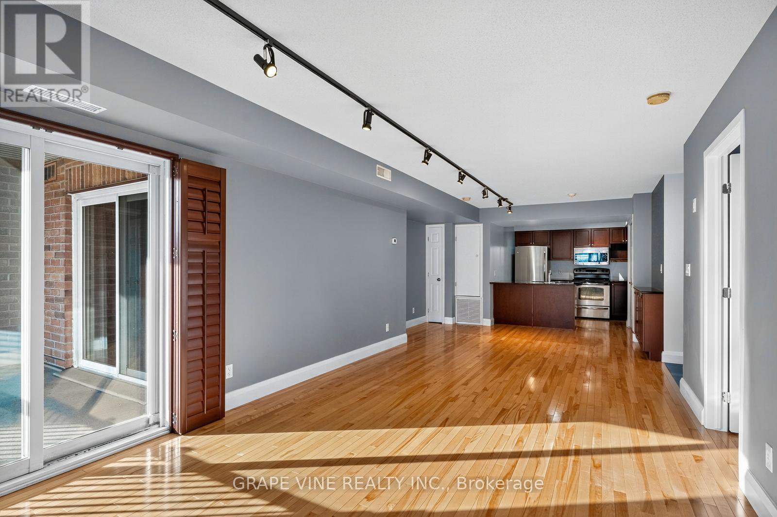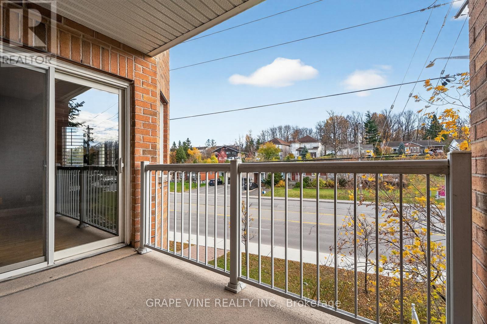Executive living at it's best in this 1138 sq ft spacious and bright corner unit. Building features only 2 units per level! Convenient access to highway 174 and LRT and right down the street from the White Sands Golf Course. Carpet-free with gleaming hardwood and tiling throughout with upgraded baseboards. The spacious foyer with marble tile flooring features a large closet and a full 4 piece bathroom. The kitchen includes granite countertops, rich, dark wood cabinetry, stainless steel appliances (new dishwasher 2024), and an island with breakfast bar overlooking the dining and living area. Enjoy the large south-facing covered balcony accessible from the patio doors in the living room, or the Primary bedroom - a perfect place to enjoy your morning coffee, or unwind at the end of the day. The large Primary bedroom features separate his and hers closets with upgraded built-in cabinetry, a 4-piece ensuite including a separate shower and soaker tub. Spacious secondary bedroom also with upgraded built-in cabinetry. Custom shutters in living room and both bedroom windows. Convenient in-unit stacked washer/dryer (purchased in Sept. 2025), 1 owned parking space (#27 - close to the main door), and 1 storage locker (#10). Amenities include visitor parking, water, and an elevator.
