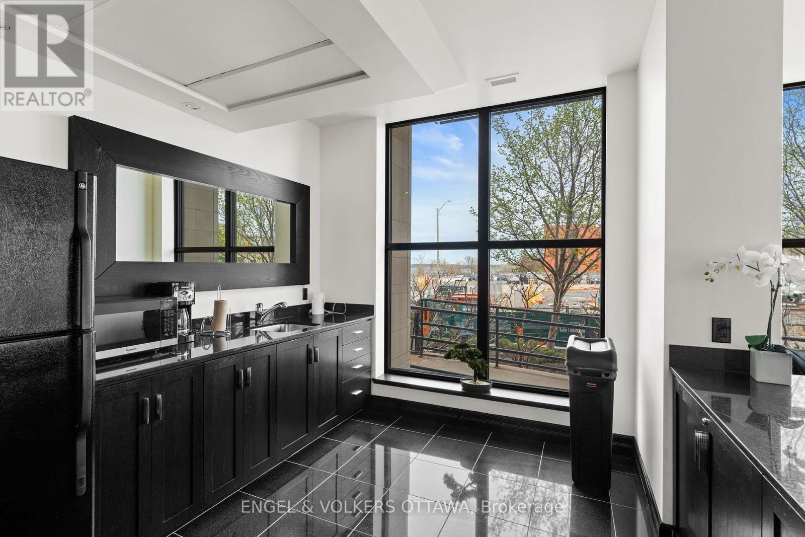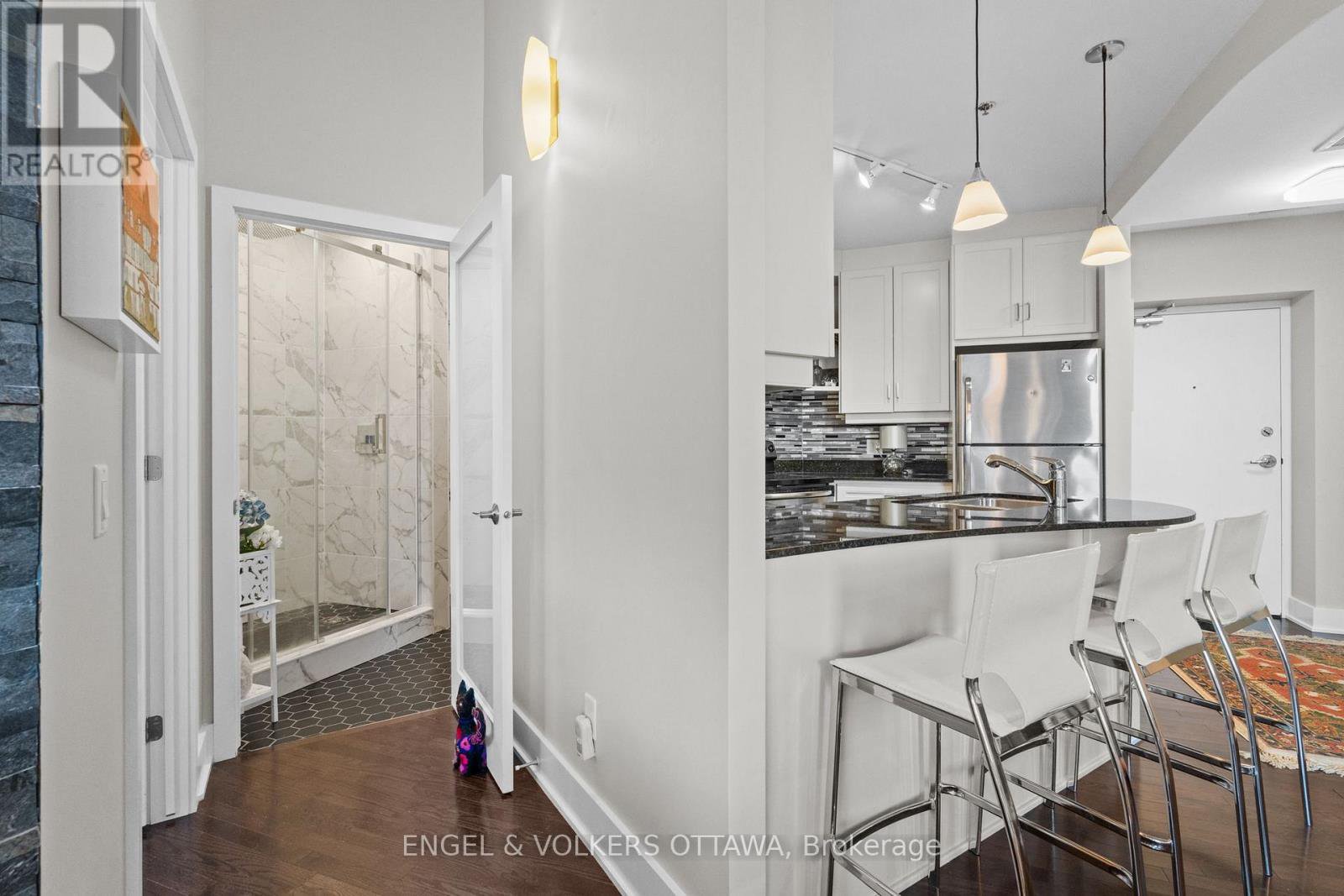 Welcome to The Continental by Charlesfort, a highly sought-after building in one of Ottawa's premier locations along the river and steps to transit, pathways, cafés, and Westboro amenities. This spacious one-bedroom, one-bath condo offers approximately 800 sq. ft. of stylish living space, highlighted by soaring ceilings and floor-to-ceiling windows that fill the suite with natural light. The open-concept design features hardwood flooring, a striking stone feature wall with electric fireplace, and a beautifully updated kitchen with granite countertops, newer stainless steel appliances, and excellent storage. Recently refreshed with new paint, this home feels elevated and move-in ready. The generously sized bedroom offers ample closet space, and the renovated bathroom adds a spa-like touch. A rare bonus- a private ground-level terrace, providing your own outdoor space for morning coffee or evening relaxation. Additional conveniences include in-unit laundry, owned underground parking equipped with an EV charger, and an owned storage locker. Residents enjoy exceptional amenities such as an exercise room, a rooftop patio with stunning Ottawa River views, and a stylish games/party room. Offering design, comfort, lifestyle, and an unbeatable location!
