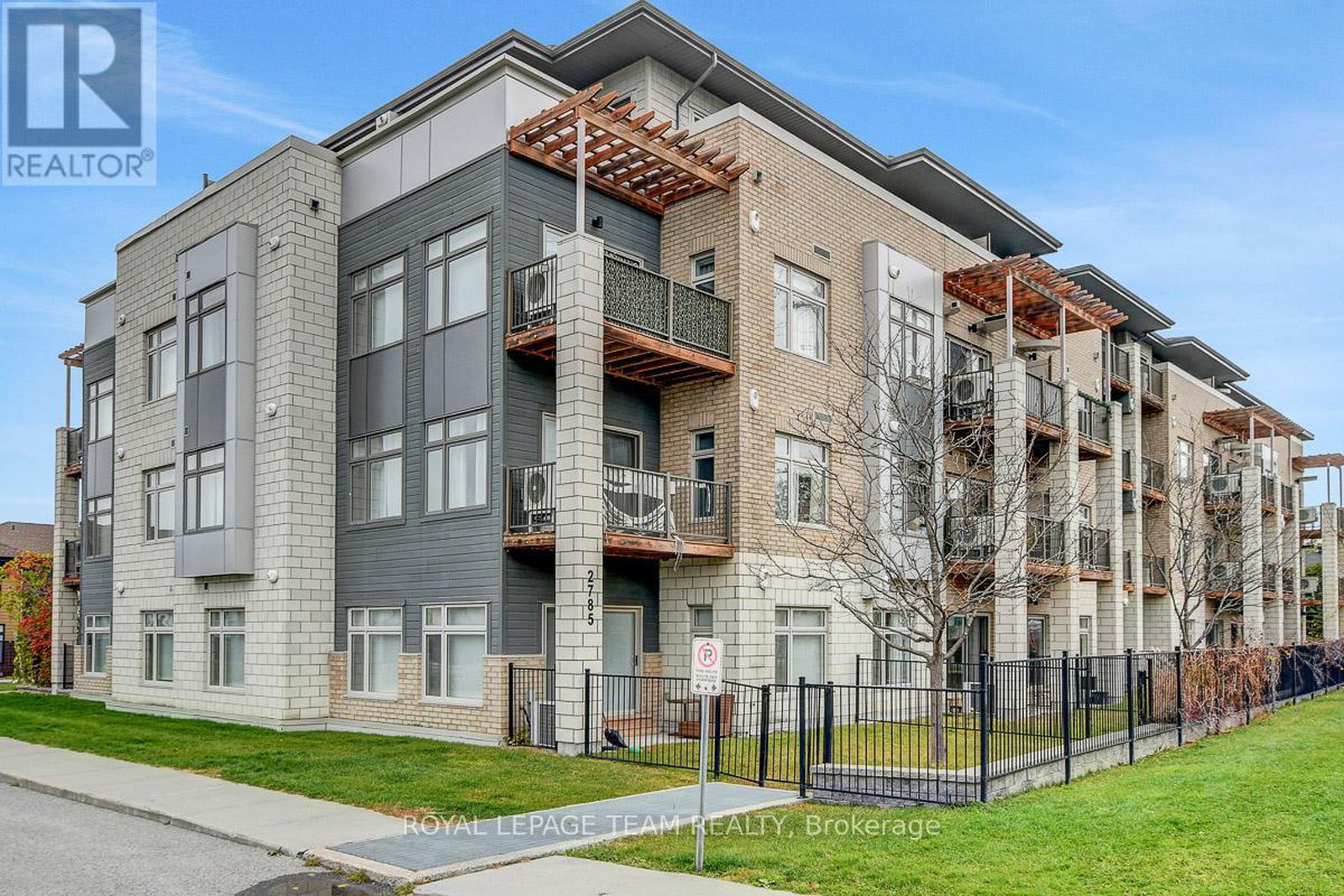 Welcome to 2785 Baseline Road. Modern Comfort in Ottawa's Redwood Park. Experience stylish, low-maintenance living in this beautifully updated 2-bedroom, 2-bathroom condo located in the highly sought-after neighbourhood. Perfectly situated just minutes from Queensway Carleton Hospital, Algonquin College, and the future Pinecrest LRT station, this modern condo offers convenience, comfort, and a fantastic west-end lifestyle. Enjoy one of the building's larger floor plans with 869 sq. ft. of interior space plus a 63 sq. ft. balcony. The open-concept design with 9ft ceiling is ideal for entertaining or relaxing, featuring elegant hardwood flooring, tile in the kitchen and bathrooms, and freshly cleaned carpet in the bedrooms. The chef-inspired kitchen offers neutral Granite countertops, contemporary cabinetry, tile backsplash, appliances (fridge, stove, dishwasher, hood fan), and a central island with breakfast bar. Flooded with natural light, the spacious living room opens onto a private balcony complete with natural gas BBQ hookup-perfect for outdoor dining or unwinding at sunset. Both bathrooms boast granite countertops and have been updated with modern lighting (2025), and the entire unit has been freshly painted, creating a bright, move-in-ready space. The primary bedroom includes a 3-piece ensuite and walk-in closet, while the second bedroom with walk in closet, offers flexibility for guests, a home office, or study area. Added conveniences include in-unit laundry, central air conditioning, a storage locker (P1 - #169), and heated underground (#28) parking-no scraping snow off your car in winter! Located close to Bayshore Shopping Centre, DND Moodie Drive, parks, schools, trails, and quick access to Highways 416/417 and public transit, this condo combines modern design, everyday comfort, and unbeatable convenience. Ideal for first-time buyers, professionals, or downsizers seeking a beautiful home in Ottawa's west end. Some photo are virtually staged.