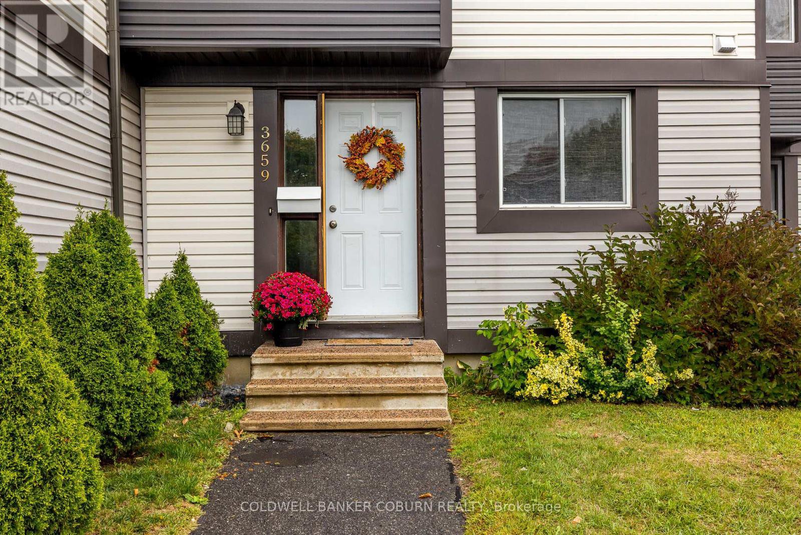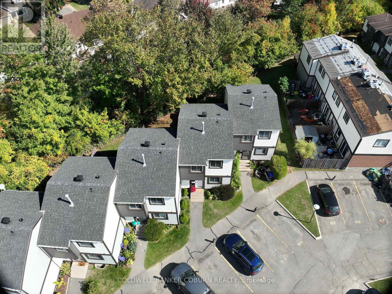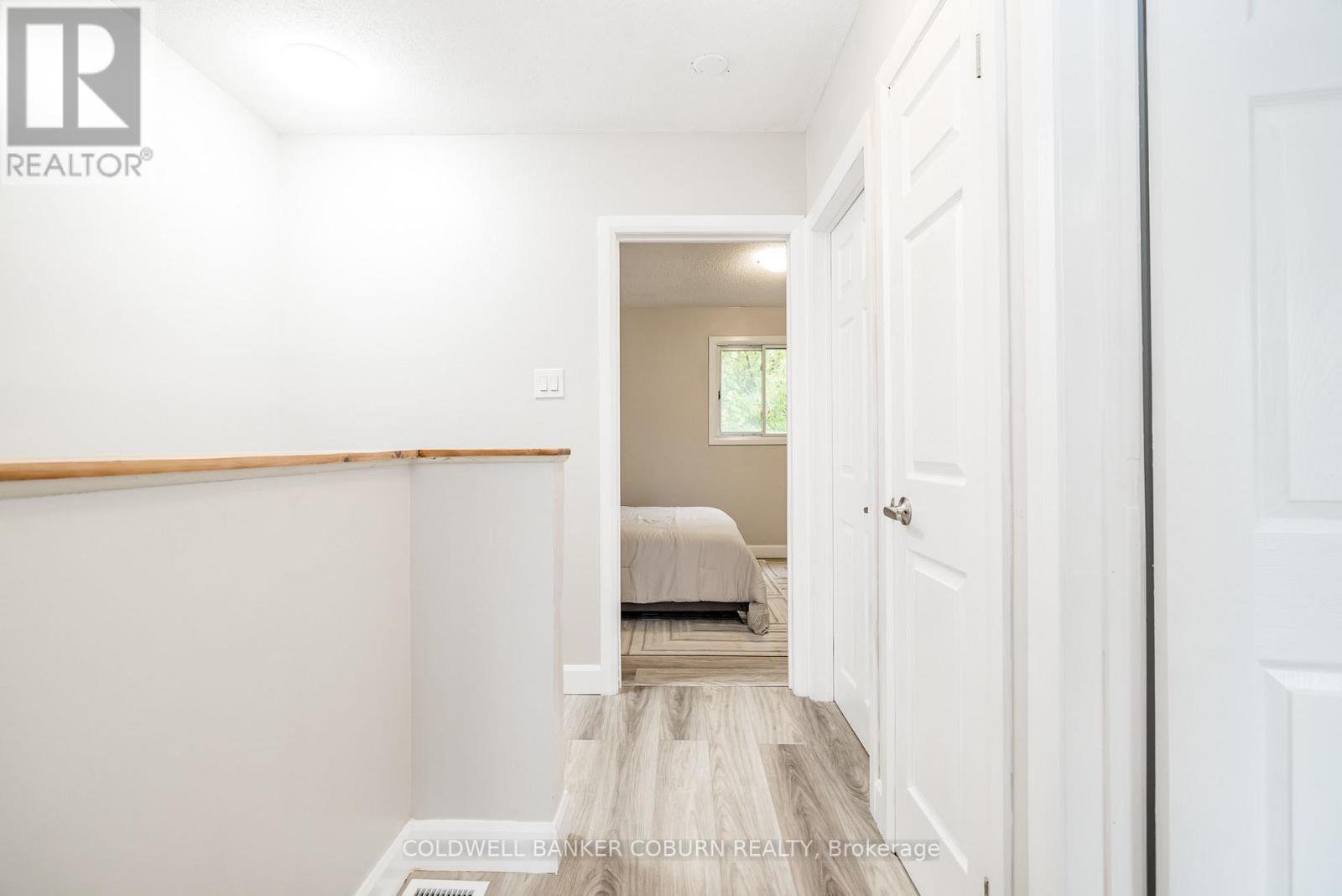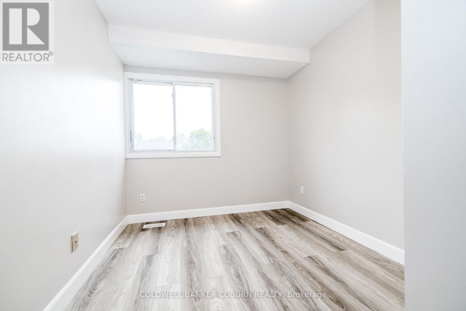 FULLY RENOVATED townhouse condo in Blossom Park with NO REAR NEIGHBOURS! Welcome to this beautifully renovated row unit offering privacy, style, and modern updates throughout. Backing onto a peaceful treed area with a bike path and no rear neighbours, this home is the perfect blend of nature and convenience. Step inside to find a freshly painted interior, luxury vinyl flooring throughout, flat ceilings on main and lower, and contemporary light fixtures that elevate the bright, airy feel of the space. The white kitchen has been fully updated with new appliances, modern countertop, double sink with new faucet, and space for additional storage or a cozy breakfast table. The open-concept dining and living area features chic ceiling lights and offers versatile space to include a TV lounge and home office setup. From here, step out to your private back patio, surrounded by mature trees - a tranquil retreat right at home. You'll find brand-new carpeting heading upstairs, and vinyl flooring throughout the second level. The bright primary bedroom overlooks the private back patio with a beautiful tree line, and has extra wide closet. Adjacent is the beautifully renovated 4pc main bathroom with oak vanity, ceramic tile flooring, luxury subway tile in shower and stylish finishes. Two spacious bedrooms complete the second floor, both freshly painted with newly added ceiling lights for a bright and welcoming feel. The finished lower level includes a renovated 2-piece bathroom, matching vinyl flooring, modern pot lights, and a laundry room with plenty of storage space. This move-in-ready home is in a well-located community, 5 min walk to Aladdin park w/ tennis & basketball courts, close to airport, schools, shopping, and transit. Don't miss this turnkey gem in Blossom Park!