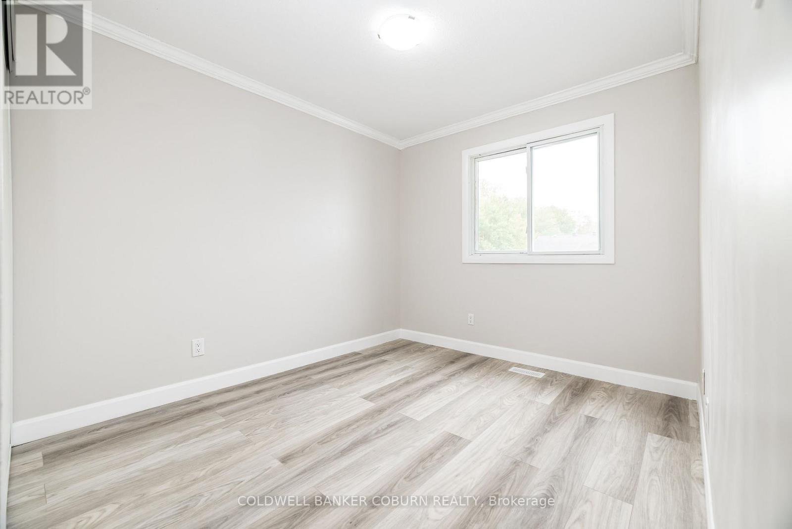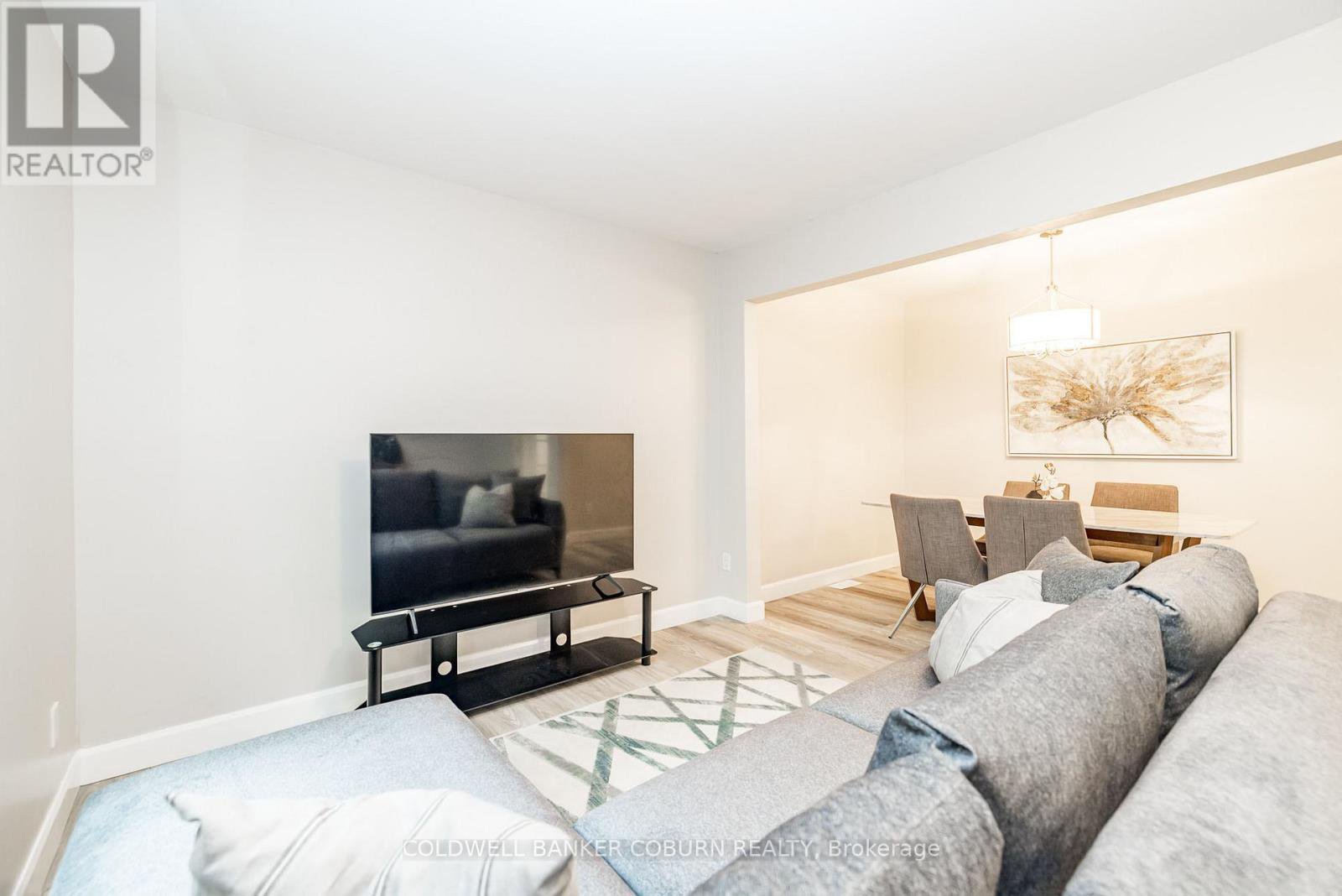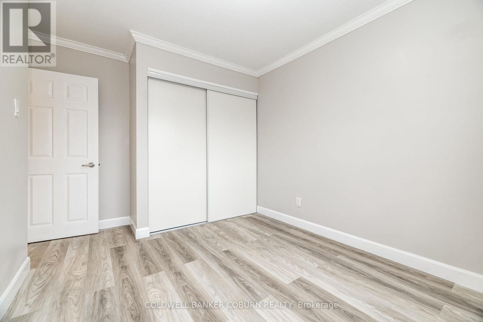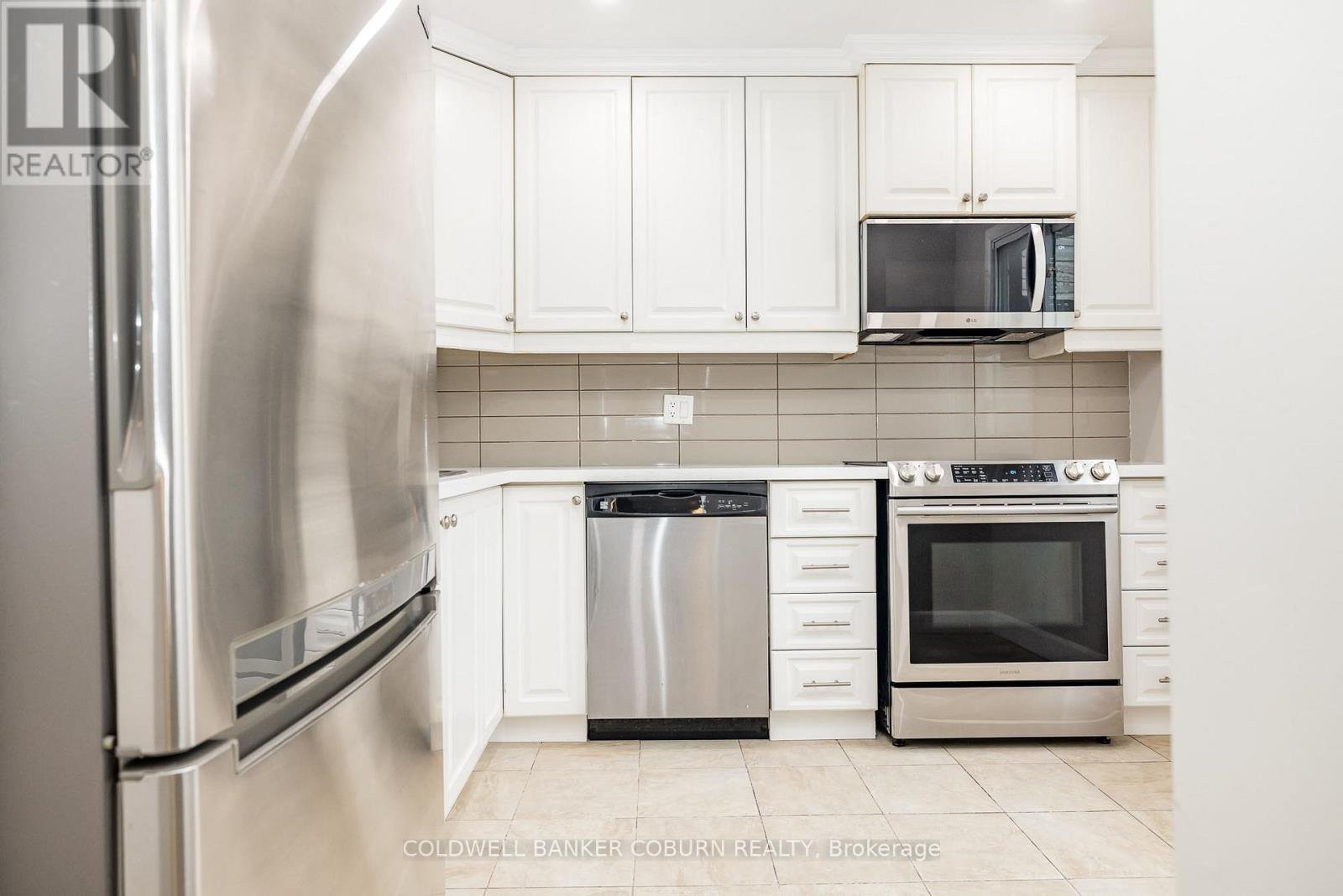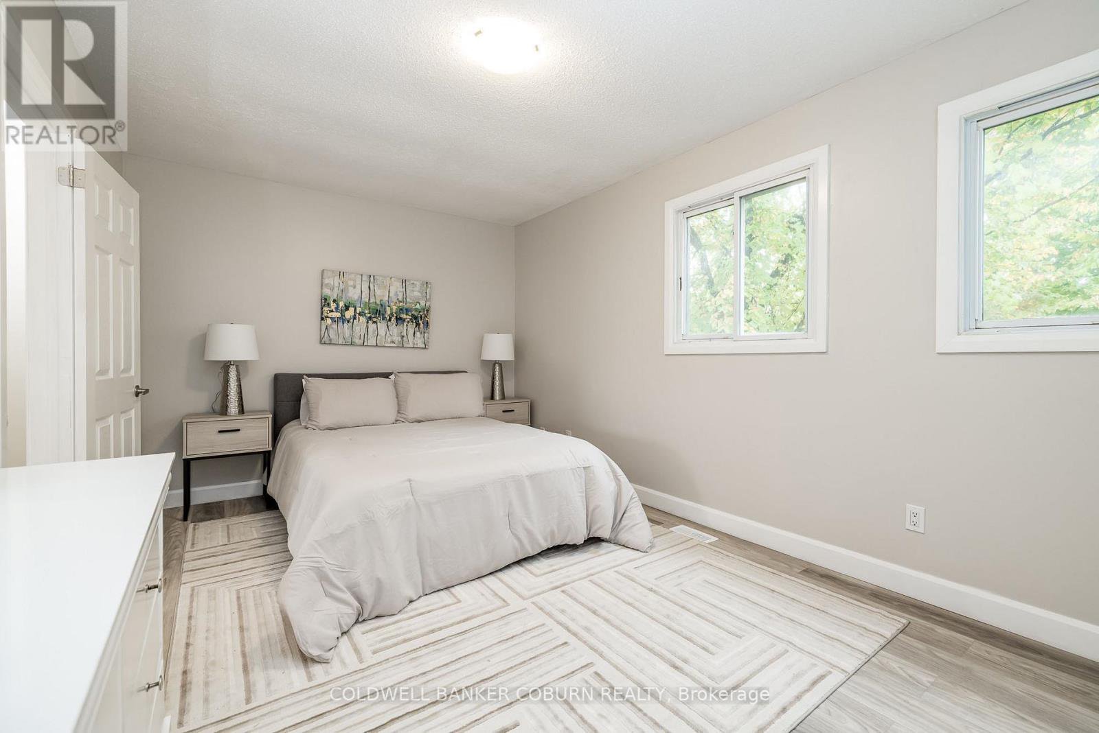 FULLY RENOVATED townhouse condo in Blossom Park with NO REAR NEIGHBOURS! Welcome to this beautifully renovated row unit offering privacy, style, and modern updates throughout. Backing onto a peaceful treed area with a bike path and no rear neighbours, this home is the perfect blend of nature and convenience. Step inside to find a freshly painted interior, luxury vinyl flooring throughout, flat ceilings on main and lower, and contemporary light fixtures that elevate the bright, airy feel of the space. The white kitchen has been fully updated with new appliances, modern countertop, double sink with new faucet, and space for additional storage or a cozy breakfast table. The open-concept dining and living area features chic ceiling lights and offers versatile space to include a TV lounge and home office setup. From here, step out to your private back patio, surrounded by mature trees - a tranquil retreat right at home. You'll find brand-new carpeting heading upstairs, and vinyl flooring throughout the second level. The bright primary bedroom overlooks the private back patio with a beautiful tree line, and has extra wide closet. Adjacent is the beautifully renovated 4pc main bathroom with oak vanity, ceramic tile flooring, luxury subway tile in shower and stylish finishes. Two spacious bedrooms complete the second floor, both freshly painted with newly added ceiling lights for a bright and welcoming feel. The finished lower level includes a renovated 2-piece bathroom, matching vinyl flooring, modern pot lights, and a laundry room with plenty of storage space. This move-in-ready home is in a well-located community, 5 min walk to Aladdin park w/ tennis & basketball courts, close to airport, schools, shopping, and transit. Don't miss this turnkey gem in Blossom Park!
