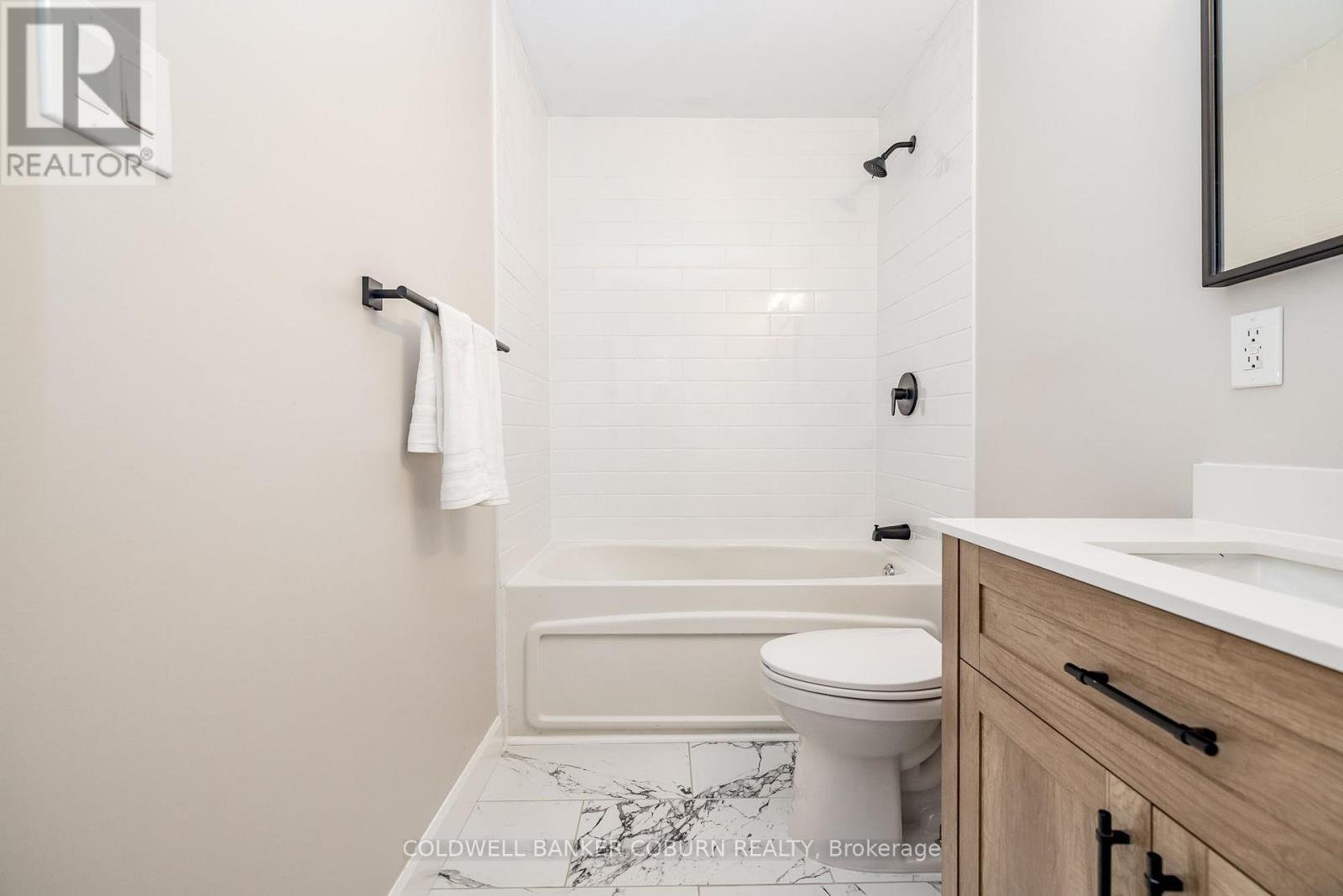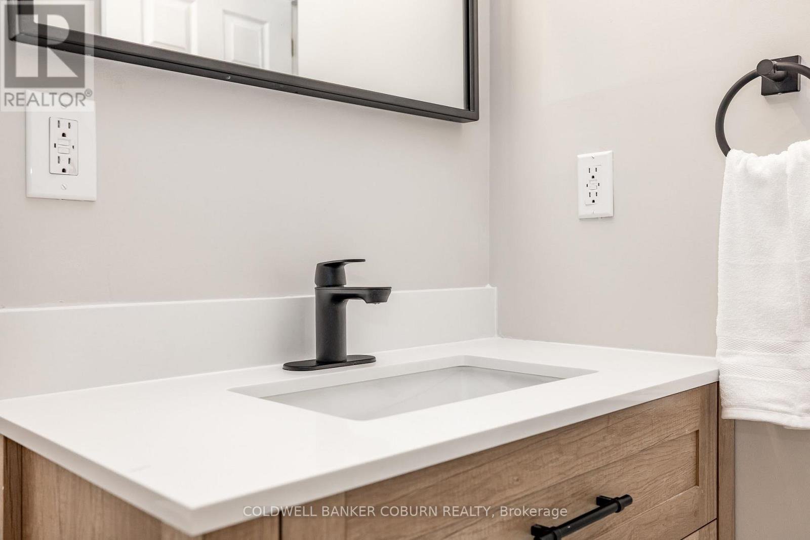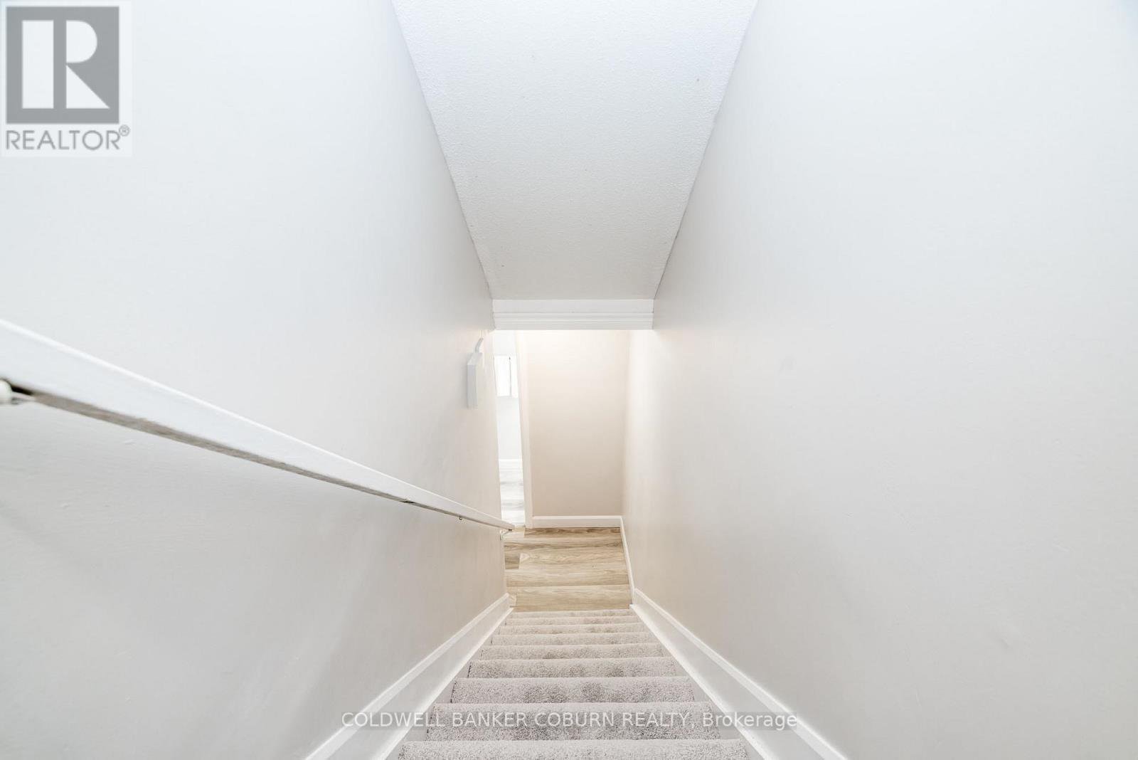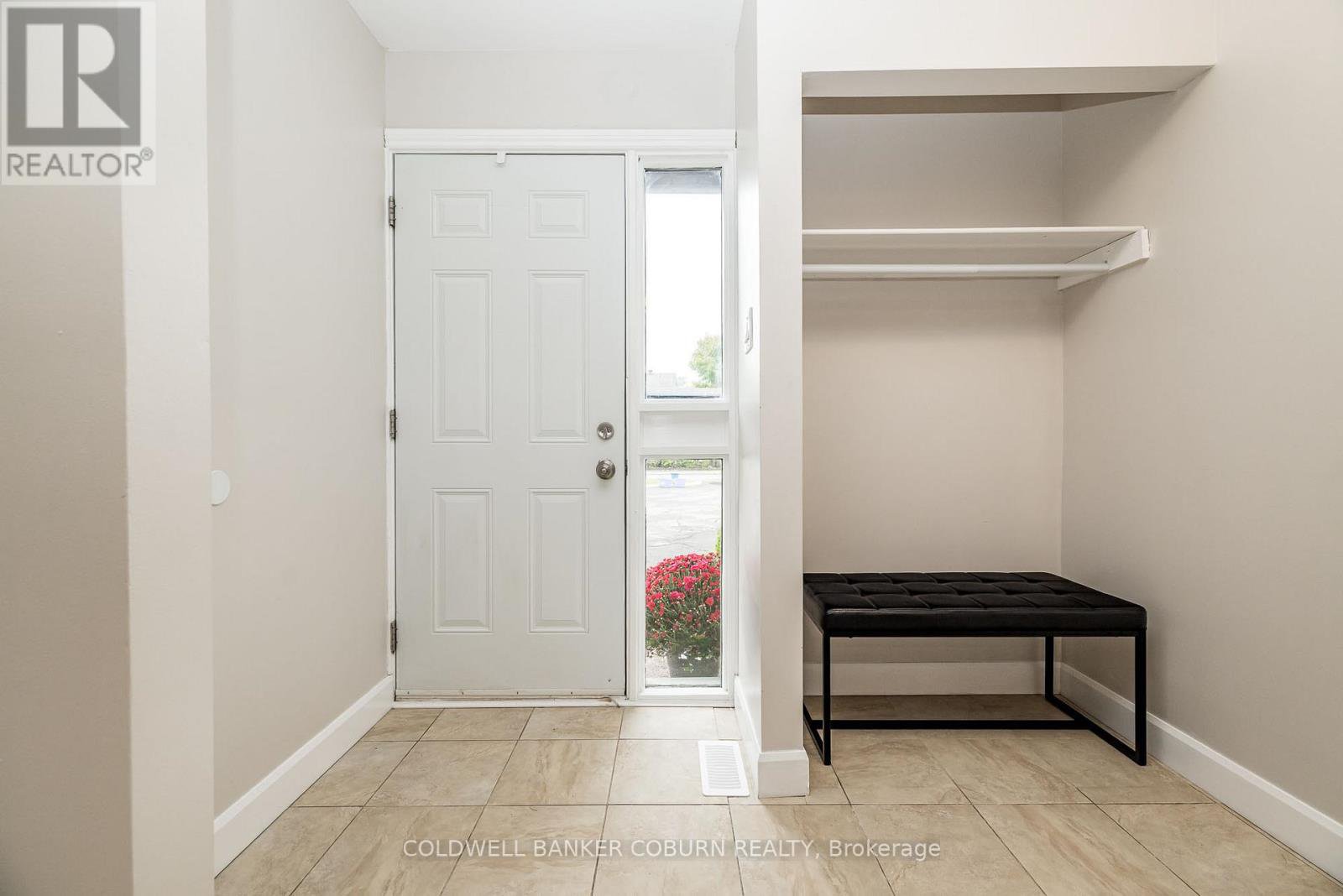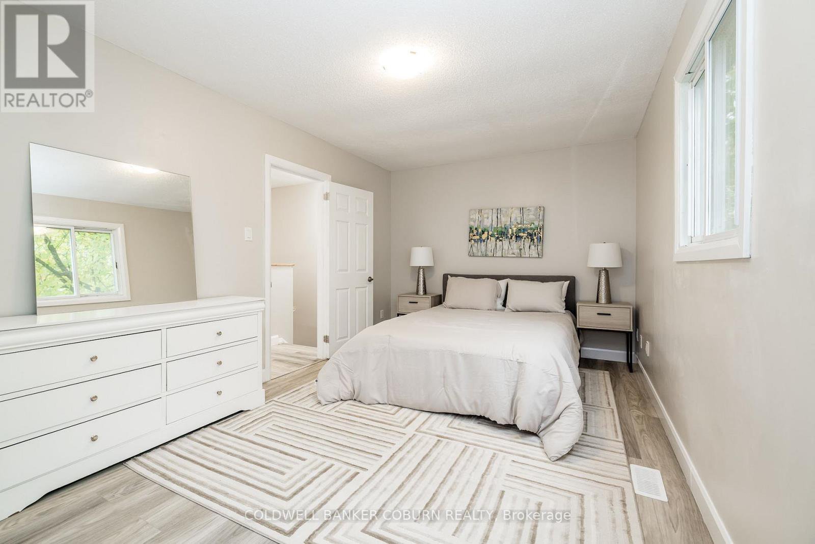 FULLY RENOVATED townhouse condo in Blossom Park with NO REAR NEIGHBOURS! Welcome to this beautifully renovated row unit offering privacy, style, and modern updates throughout. Backing onto a peaceful treed area with a bike path and no rear neighbours, this home is the perfect blend of nature and convenience. Step inside to find a freshly painted interior, luxury vinyl flooring throughout, flat ceilings on main and lower, and contemporary light fixtures that elevate the bright, airy feel of the space. The white kitchen has been fully updated with new appliances, modern countertop, double sink with new faucet, and space for additional storage or a cozy breakfast table. The open-concept dining and living area features chic ceiling lights and offers versatile space to include a TV lounge and home office setup. From here, step out to your private back patio, surrounded by mature trees - a tranquil retreat right at home. You'll find brand-new carpeting heading upstairs, and vinyl flooring throughout the second level. The bright primary bedroom overlooks the private back patio with a beautiful tree line, and has extra wide closet. Adjacent is the beautifully renovated 4pc main bathroom with oak vanity, ceramic tile flooring, luxury subway tile in shower and stylish finishes. Two spacious bedrooms complete the second floor, both freshly painted with newly added ceiling lights for a bright and welcoming feel. The finished lower level includes a renovated 2-piece bathroom, matching vinyl flooring, modern pot lights, and a laundry room with plenty of storage space. This move-in-ready home is in a well-located community, 5 min walk to Aladdin park w/ tennis & basketball courts, close to airport, schools, shopping, and transit. Don't miss this turnkey gem in Blossom Park!