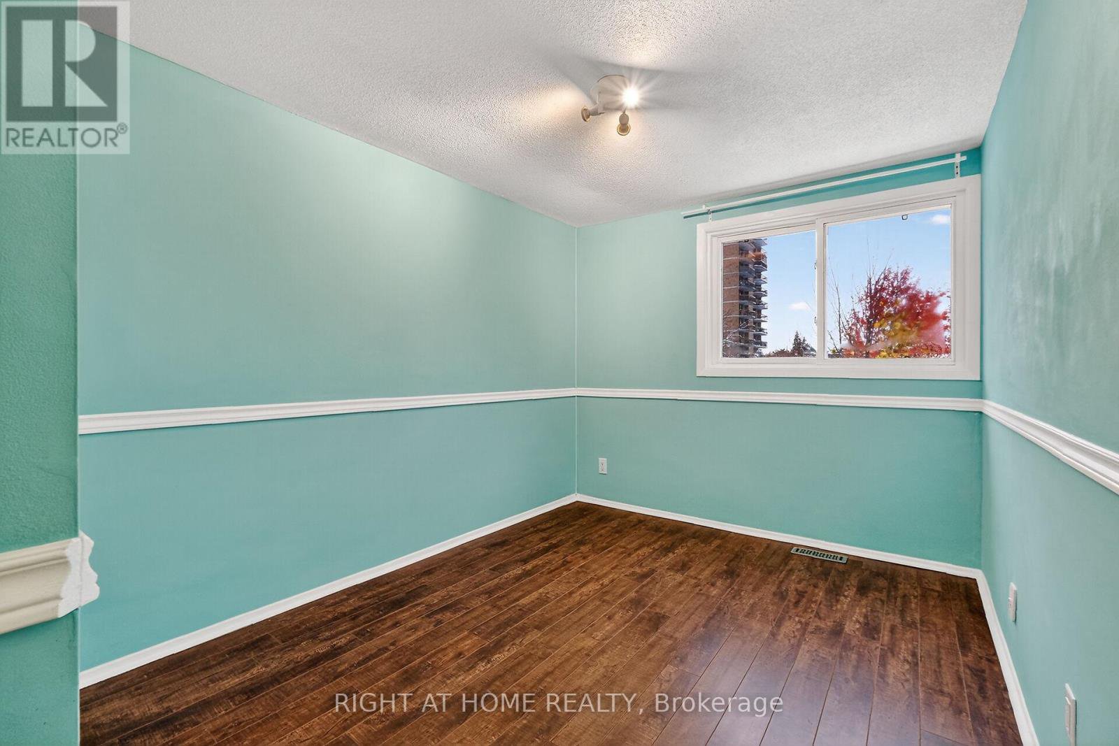 Centrally located Condominium end unit 2 storey townhouse at an affordable price with numerous upgrades, ready to move-in condition, just bring in your furniture, no carpet, no rear neighbour and fully fenced side and rear yard with shed and patio for you to relax after work. Functional layout on main floor with spacious living room, patio door to rear yard, 2nd floor with 3 bedrooms and updated full bathroom, finished basement with an extra bathroom with shower stall. Convenient parking space (parking #95 ) almost in front of the house. Upgrades:Main floor - flooring in living room, kitchen and corridor redone with prefinished hardwood flooring (2025), Kitchen with new cupboards and countertops, new large modern stainless steel sink, faucet, brand new dishwasher (2025). 2nd floor - upgraded laminate flooring - 12mm plus built in padding in all bedrooms (2023), Bathroom - new waterproof vinyl flooring, toilet, vanity, medicine cabinet and bathroom tiles (2025), Basement - Recreation room and corridor new laminate flooring - 11mm plus built in padding (2025), Walls and ceiling in recreation room been totally redone (2025), whole house has been repainted over the last three years; Furnace (2021), Dryer - brand new (2025), All blinds are new (2025);(2023) all new electrical receptacles and switches updated with copper pig tailing with ESA certificate, wood staircase from main floor to 2nd floor re-stained (2023), hand railing from MF to basement and updated stairsteps (2025). Close to all amenities: OC Transpo, O-train, Supermarkets, banks, community swimming pool, arena, schools, shopping centres, close to Bank Street, variety of restaurants and café, easy access to highway. Call today for a private viewing, don't miss the opportunity to own this lovely unit for your future home. Parking space # 95.