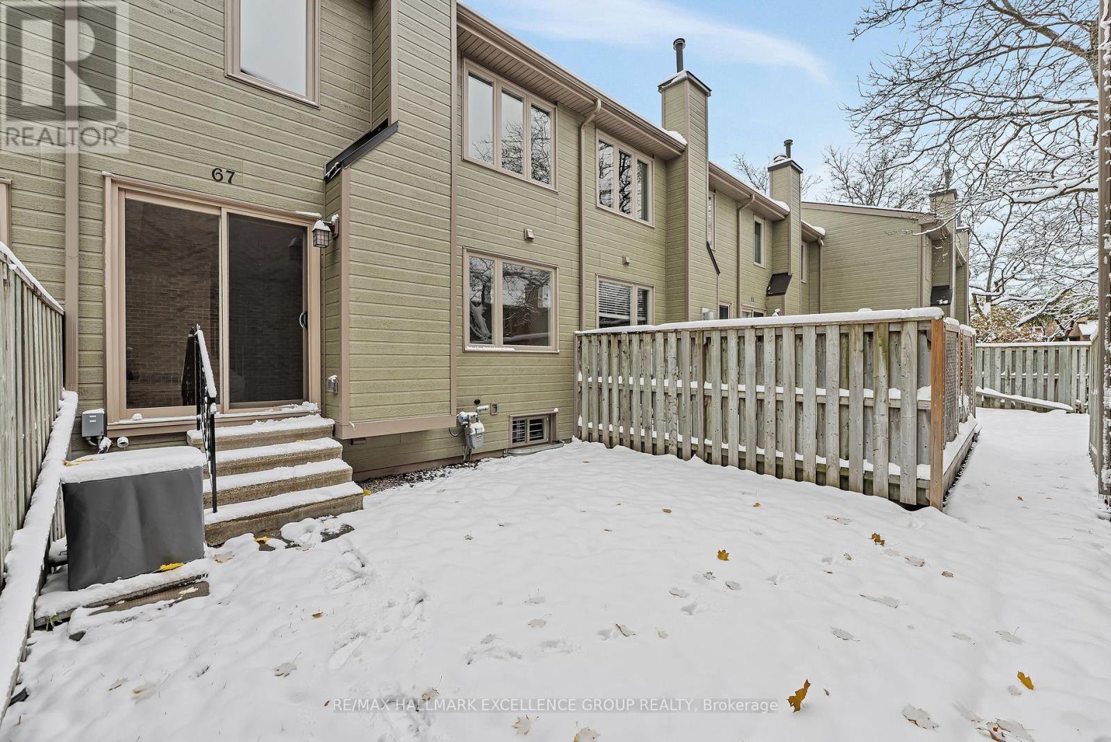 Stylish Comfort in a Quiet, Parkside Enclave. Welcome home to a beautifully maintained 3-bedroom, 3.5-bath condo townhome nestled in a quiet, tree-lined pocket of Ottawa East-just steps to Coronation Park, Train Yards shopping, cafés, and transit. This is a location that offers both serenity and connection.Step into a welcoming foyer with updated powder room and discover an airy, open-concept main level filled with natural light. Hardwood flooring, designer-neutral finishes, and picture windows set an inviting tone. The well-proportioned kitchen is practical and bright, offering excellent workflow and plenty of cabinetry. The adjoining living and dining areas flow seamlessly to a private, fenced patio-ideal for morning coffees, relaxed evenings, or hosting friends.Upstairs, three generous bedrooms offer peaceful treetop views. Practical second floor laundry.The primary suite features a full wall of mirrored closet with built-in closet organizers and a private ensuite. The main bath is spotless and includes a soaking tub for end-of-day unwinding.The finished lower level extends your living space with a retro-inspired recreation room, convenient full bathroom, home office nook, and abundant storage-perfect for hobbies, movie nights, or a quiet workspace.Parking is right at your door in garage or private driveway, and the community is exceptionally well cared for. Hardwood staircase, porcelain tile in key areas, and tasteful updates throughout enhance both style and durability.This home truly checks every box: location, layout, lifestyle, and low maintenance living in a charming, established enclave. Quick closing is available.Offers to include 24-hour irrevocable. Wood burning Fireplace is no longer used and deemed non functional. All Appliances included. Hot water tank is owned. Furnace, AC and water tank all replaced in 2022, Condo fees include water and taxes 3613.67. Status Documents on File. Note; some photos virtually staged.