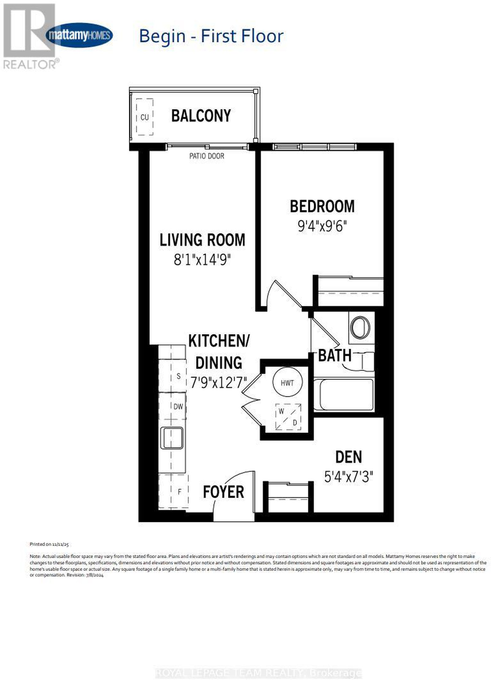Welcome to the Begin model by Mattamy Homes, located in the sought-after Avalon community of Orléans. This brand-new 539 sq. ft. condo features a welcoming foyer with a closet and a stylish chef-inspired kitchen with quartz countertops and a modern backsplash, all opening to a bright dining and living area with access to a private balcony. Offering one bedroom plus a den, one full bathroom, and a dedicated laundry room, this home is designed with convenience and modern finishes in mind. Enjoy 9-foot smooth ceilings, luxury vinyl plank flooring throughout (no carpet), and one parking space .Perfectly situated near parks, trails, recreation centres, shopping, dining, and transit, this condo combines style, comfort, and everyday convenience. Images provided are to showcase builder finishes only.