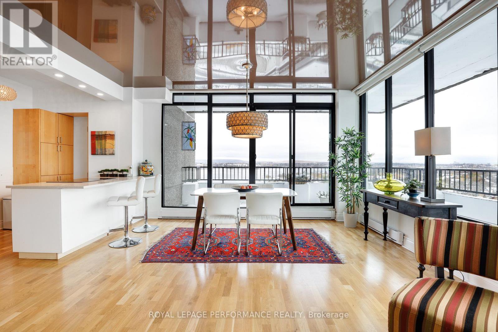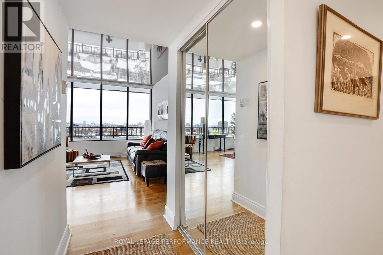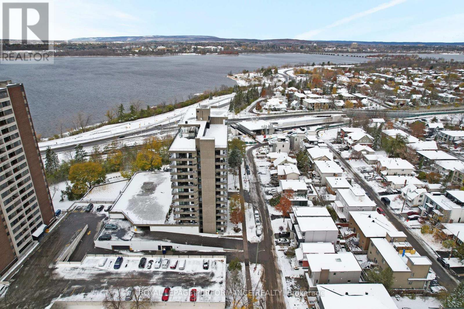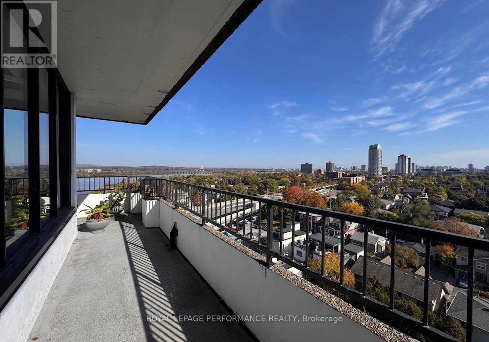 Have it all in this fabulous 2-bedroom, 2-bathroom penthouse at The Barclay. Overlooking the Ottawa River, this light-filled corner unit features a large wrap-around balcony with views to the north, east, and south-perfect for enjoying your morning coffee, container gardening for flowers or even a small herb/vegetable garden. Inside, the main living areas enjoy all-day brightness with two walls of large windows and the feeling of added height & light thanks to the gloss stretch ceiling. Ideal layout with the two bedrooms tucked comfortably away from the main living areas. The Primary Bedroom features ample closet space and a private four-piece ensuite bath. Previous owners renovated the kitchen and both bathrooms, the second of which is three-piece with glass door-enclosed shower. Building amenities include an indoor pool for year-round swimming, sauna, guest suite, party room, exercise room, community BBQ, and a library. A separate storage locker plus underground parking are included. A quick walk to Richmond Road and you'll have access to all of the amenities that Westboro Village offers-cafés, grocers, and a wide variety of retail options including the LCBO, clothing and outdoor outfitters, home goods, restaurants, and more. Future Kichi Zibi LRT station, the Trans Canada Trail, and the Ottawa River are ~200m from your door. Condo fees include utilities, except hydro. 48-hour irrevocable on offers.
