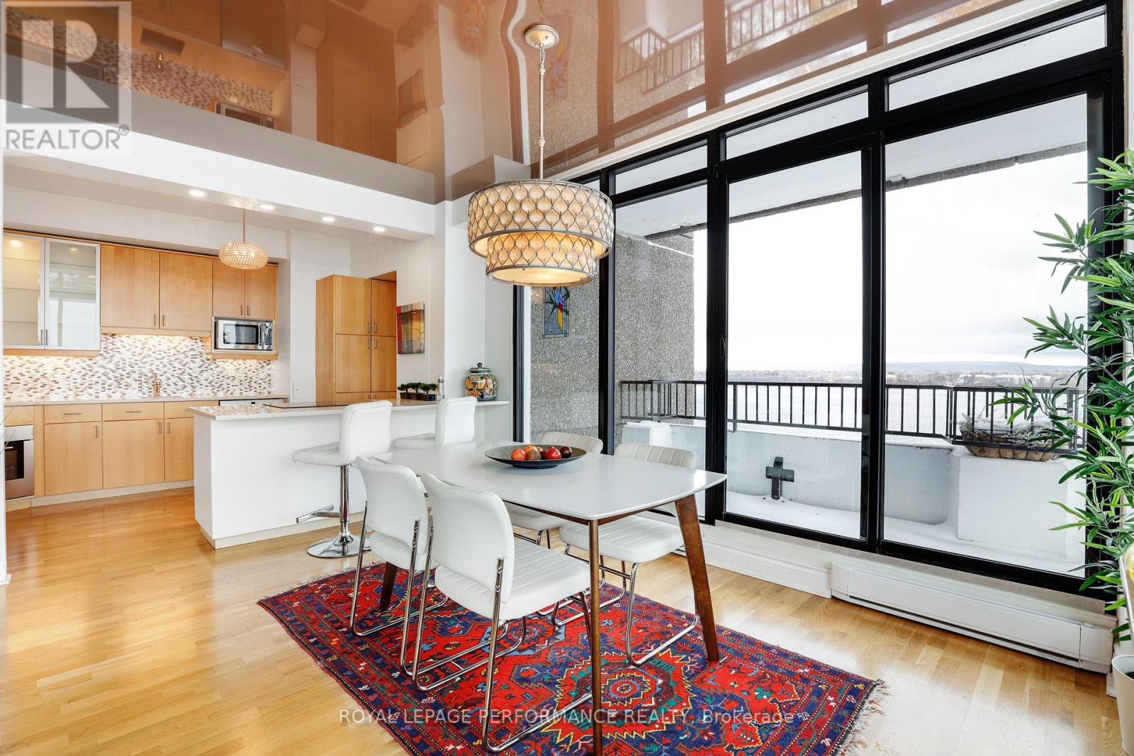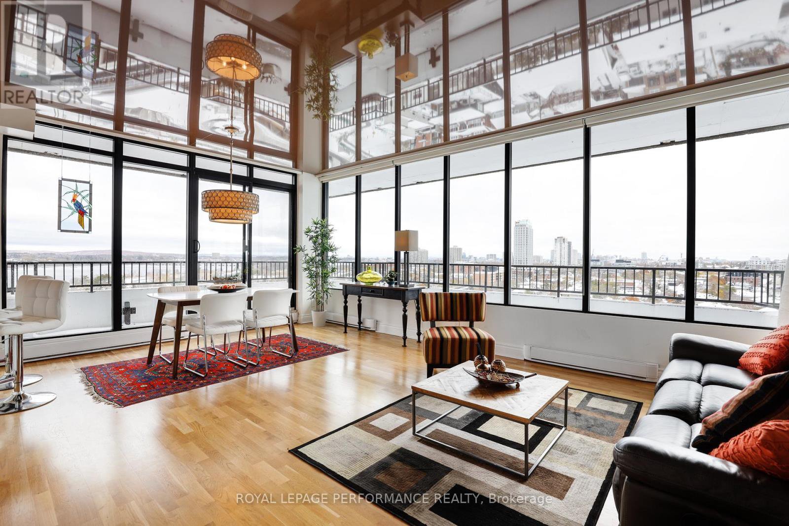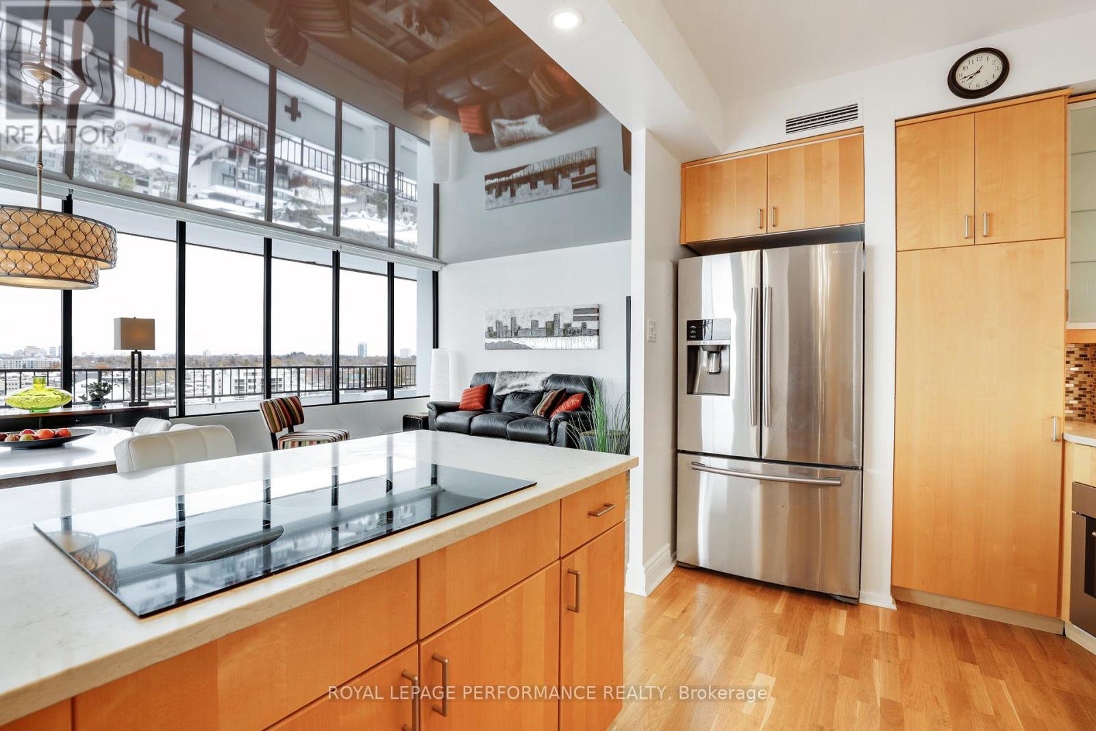 Have it all in this fabulous 2-bedroom, 2-bathroom penthouse at The Barclay. Overlooking the Ottawa River, this light-filled corner unit features a large wrap-around balcony with views to the north, east, and south-perfect for enjoying your morning coffee, container gardening for flowers or even a small herb/vegetable garden. Inside, the main living areas enjoy all-day brightness with two walls of large windows and the feeling of added height & light thanks to the gloss stretch ceiling. Ideal layout with the two bedrooms tucked comfortably away from the main living areas. The Primary Bedroom features ample closet space and a private four-piece ensuite bath. Previous owners renovated the kitchen and both bathrooms, the second of which is three-piece with glass door-enclosed shower. Building amenities include an indoor pool for year-round swimming, sauna, guest suite, party room, exercise room, community BBQ, and a library. A separate storage locker plus underground parking are included. A quick walk to Richmond Road and you'll have access to all of the amenities that Westboro Village offers-cafés, grocers, and a wide variety of retail options including the LCBO, clothing and outdoor outfitters, home goods, restaurants, and more. Future Kichi Zibi LRT station, the Trans Canada Trail, and the Ottawa River are ~200m from your door. Condo fees include utilities, except hydro. 48-hour irrevocable on offers.