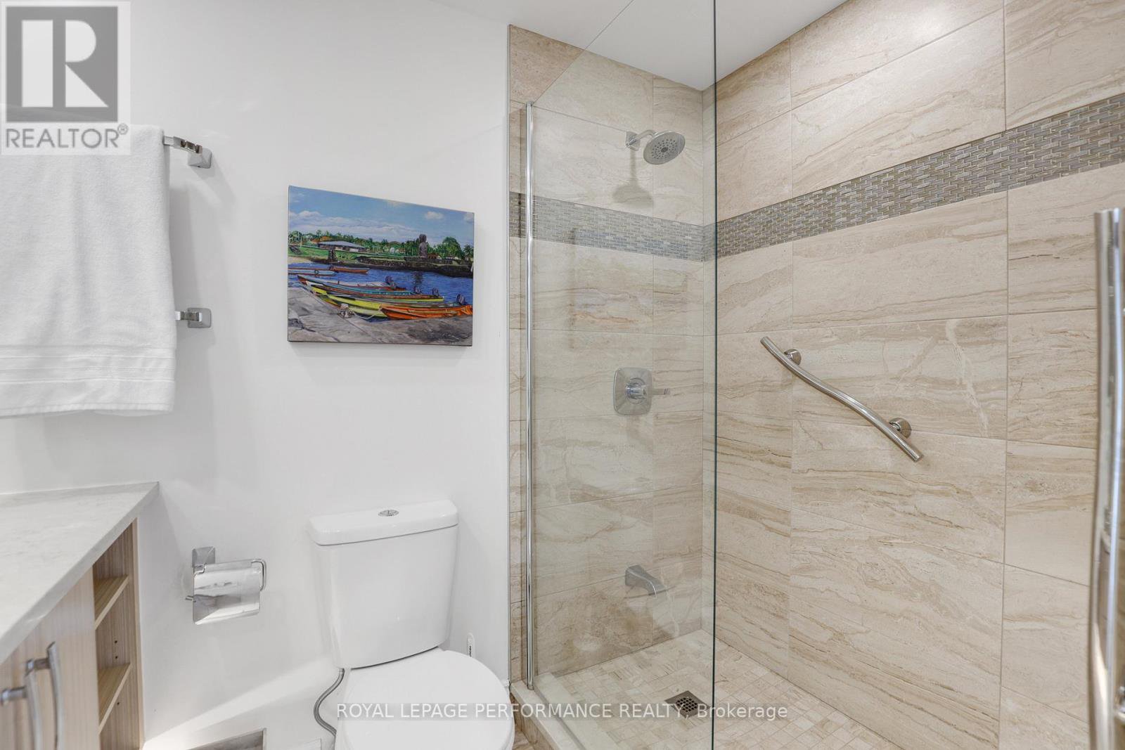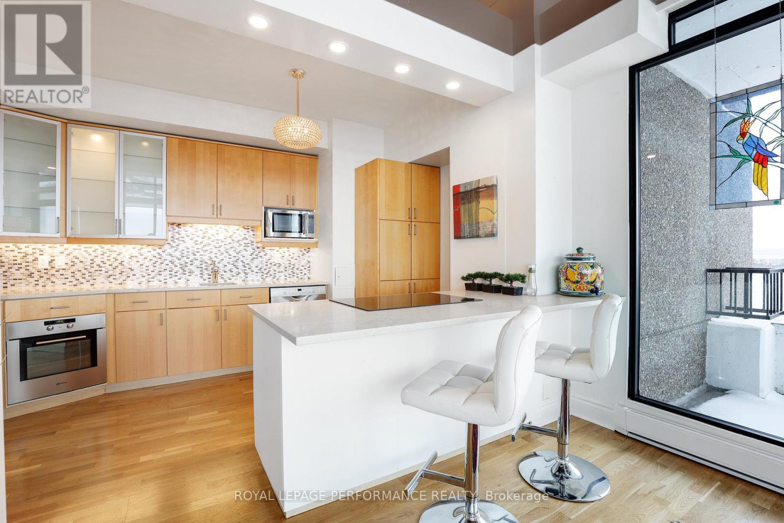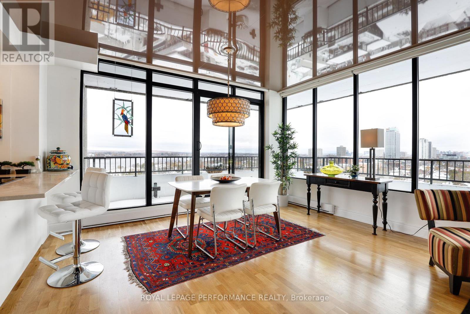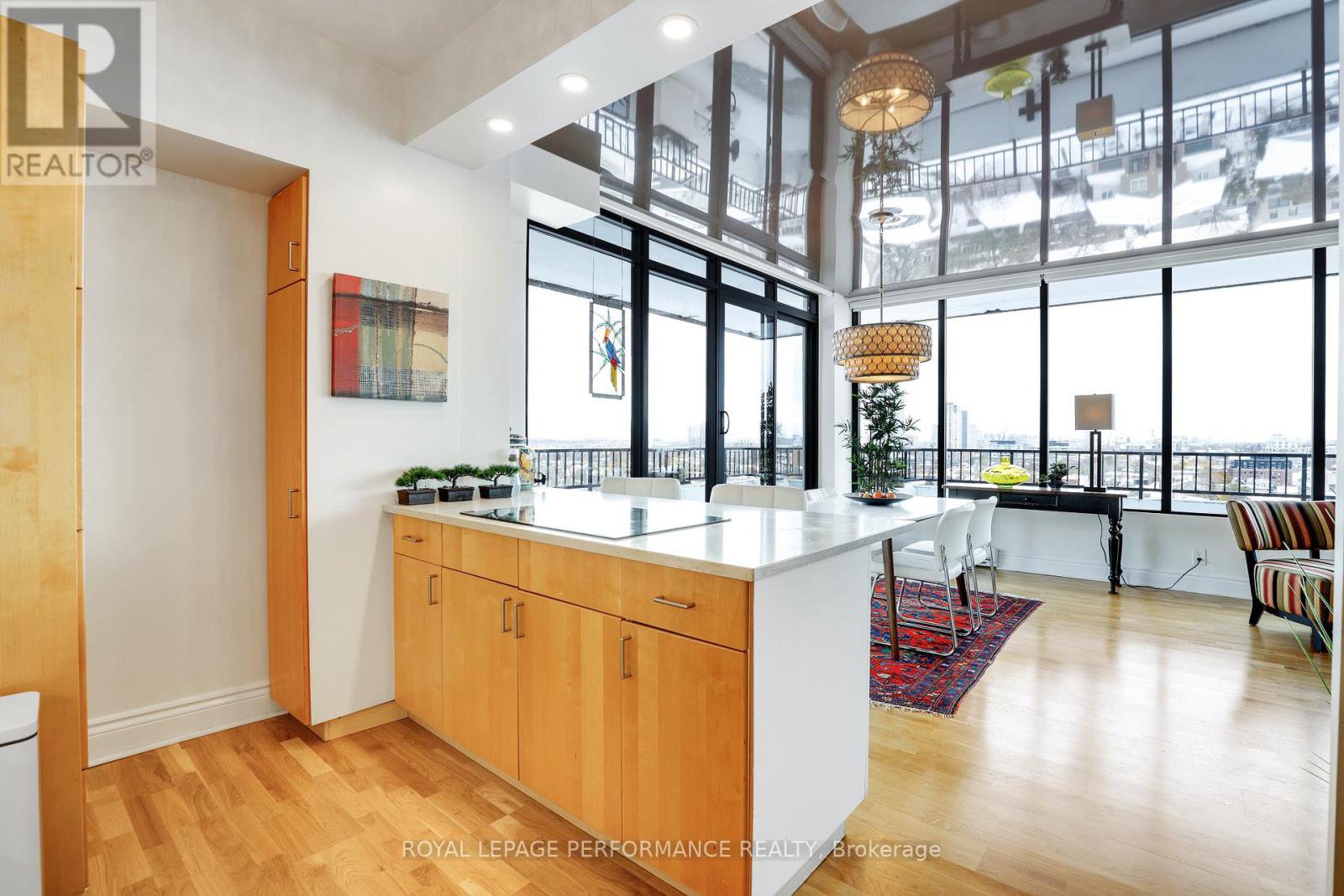 Have it all in this fabulous 2-bedroom, 2-bathroom penthouse at The Barclay. Overlooking the Ottawa River, this light-filled corner unit features a large wrap-around balcony with views to the north, east, and south-perfect for enjoying your morning coffee, container gardening for flowers or even a small herb/vegetable garden. Inside, the main living areas enjoy all-day brightness with two walls of large windows and the feeling of added height & light thanks to the gloss stretch ceiling. Ideal layout with the two bedrooms tucked comfortably away from the main living areas. The Primary Bedroom features ample closet space and a private four-piece ensuite bath. Previous owners renovated the kitchen and both bathrooms, the second of which is three-piece with glass door-enclosed shower. Building amenities include an indoor pool for year-round swimming, sauna, guest suite, party room, exercise room, community BBQ, and a library. A separate storage locker plus underground parking are included. A quick walk to Richmond Road and you'll have access to all of the amenities that Westboro Village offers-cafés, grocers, and a wide variety of retail options including the LCBO, clothing and outdoor outfitters, home goods, restaurants, and more. Future Kichi Zibi LRT station, the Trans Canada Trail, and the Ottawa River are ~200m from your door. Condo fees include utilities, except hydro. 48-hour irrevocable on offers.