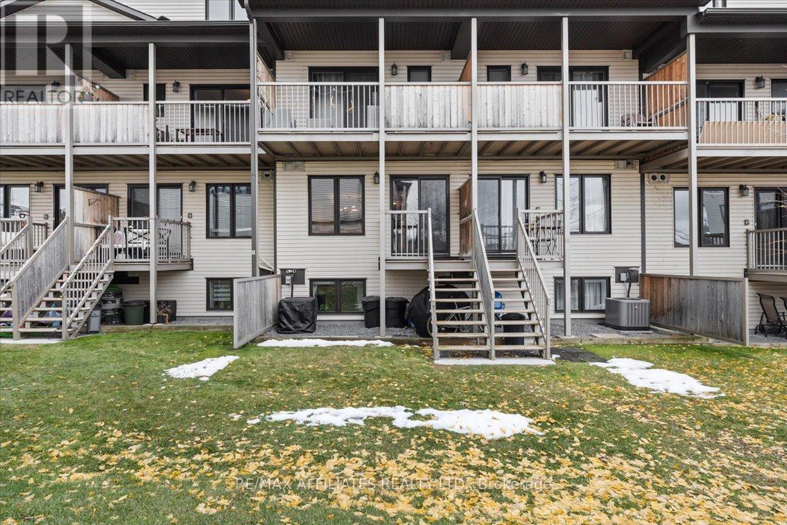 Beautifully maintained and freshly painted 2-bed, 2.5-bath stacked condo in the desirable Rockland location. The main level features a separate kitchen with quartz countertops, stainless steel appliances, and dark wood cabinetry, along with an updated powder room, new 2025 paint, baseboards, doors, and lighting. The bright living area includes a sliding glass door leading directly to the backyard and two owned parking spots (#79 & #71). The lower level offers two spacious bedrooms with large egress windows, each with its own 4-piece ensuite, plus laundry and storage. Enjoy a private balcony with storage and BBQ space. Steps from schools, groceries, transit, and all of Rockland's amenities - this move-in-ready home is perfect for first-time buyers or down-sizers! Parking 79 & 71