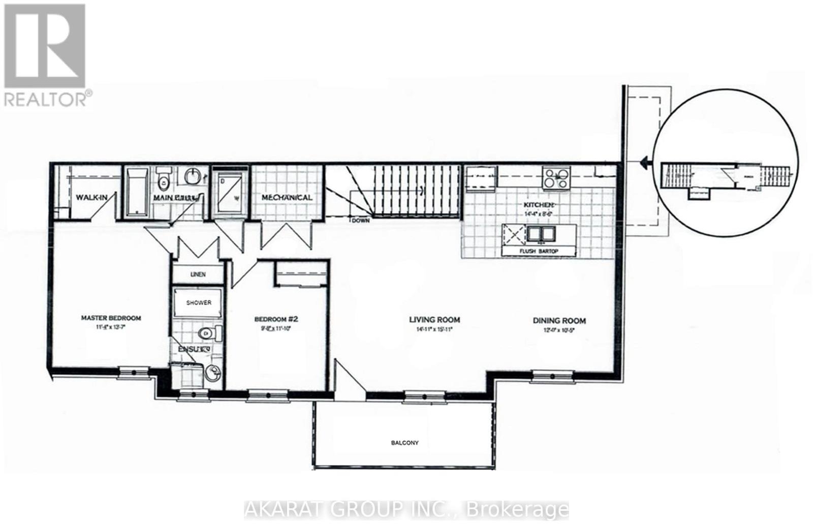This stunning 2-bedroom, 2-bath penthouse condo offers over $50K in premium upgrades and a bright, modern living experience. Featuring soaring 10 ft ceilings, 5.5 ft tall east-facing windows, and premium 5" engineered oak hardwood floors, the home is filled with natural light and high-end finishes. The upgraded kitchen includes quartz countertops, an extended island with breakfast bar, designer wall tiles, under-cabinet lighting, and an open hood fan. Both bedrooms feature plush dense broadloom with thick under padding, and the primary ensuite showcases oversized tiles and sleek modern fixtures. Additional highlights include extra dimmable pot lights, a larger-than-standard staircase, a spacious 6' x 15' balcony, and ample storage including a large linen closet and dedicated mechanical/storage room. With no neighbors above, this penthouse combines privacy, style, and comfort in an exceptional open-concept layout.