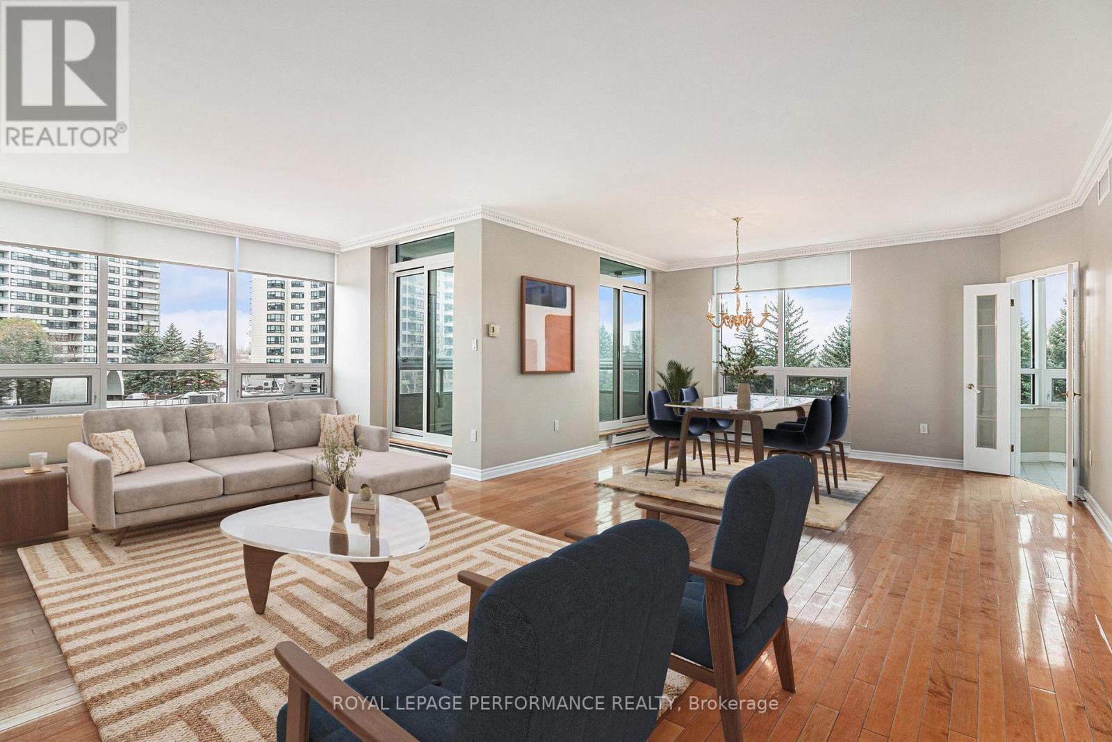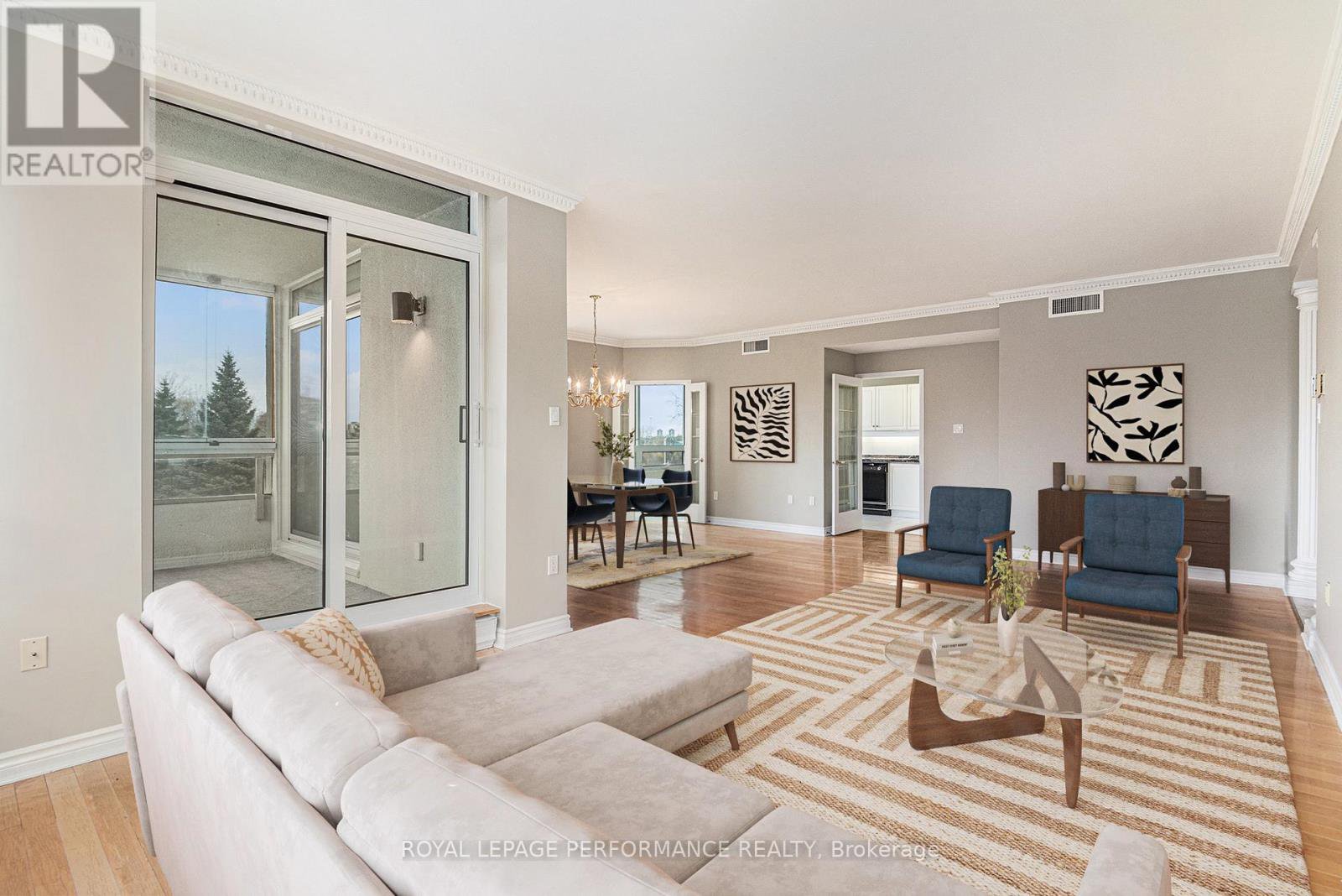 Discover One of Ottawa's Most Esteemed Condominium Residences. If you're seeking a truly distinctive lifestyle, your search ends here. With beautifully manicured grounds and outstanding amenities, this is luxury condominium living at its best. Within walking distance to the LRT, Ottawa River, Train Yards and just minutes from downtown, this residence is perfectly situated for your convenience. This remarkable freshly painted corner suite boasts 3 bedrooms, 2.5 bathrooms, and a meticulously crafted layout. Upon entering the spacious foyer, your eyes will be drawn to the expansive wall of windows that fill the space with abundant natural light. The open-concept living and dining area offers a fantastic space for entertaining along with access to the enclosed balcony. The bright kitchen features ample counter/cabinet space, a cozy breakfast nook, and a pantry. The expansive primary suite features a walk-in closet and an exquisite six-piece ensuite bathroom, which includes a soaking tub and a separate shower. The impressive floor plan is further enhanced by two additional spacious bedrooms and a laundry room. The truly outstanding amenities include: 24 hour concierge service, monitored gated access, indoor/outdoor pools, BBQ area, outdoor tennis courts, squash/pickleball courts, well-equipped gym, hot tubs, sauna, library, carwash bay, bicycle room, billiards/games room, and banquet and meeting rooms. Additionally, a wide range of social activities are also available. The property includes two underground parking spaces and a designated storage locker. Look no further to experience the pinnacle of luxury condominium living.