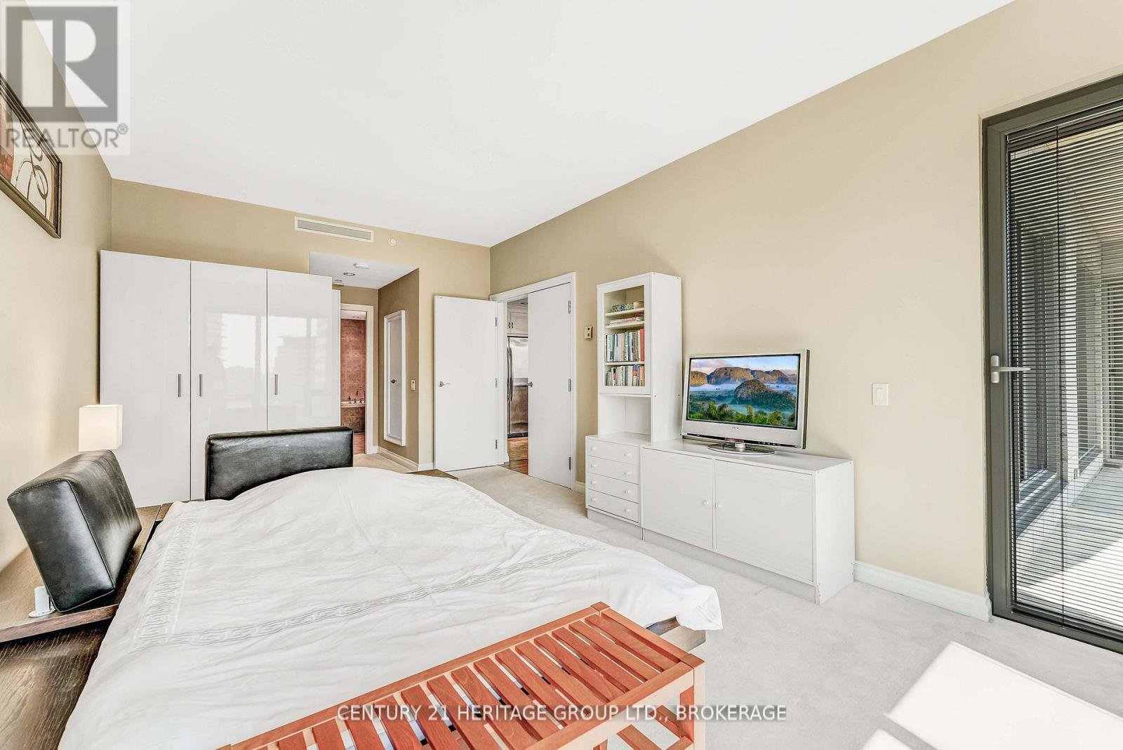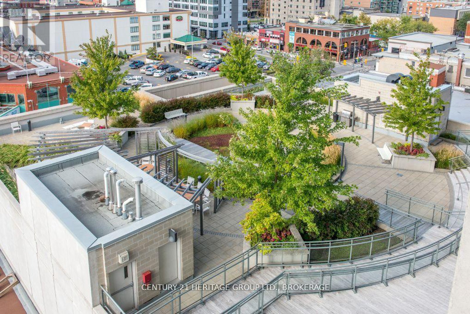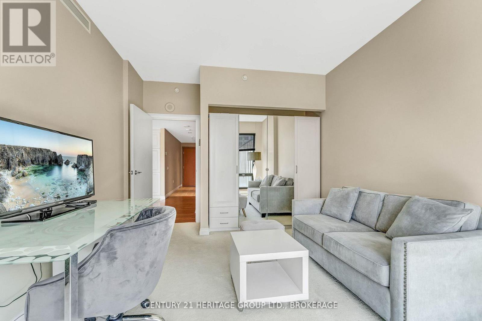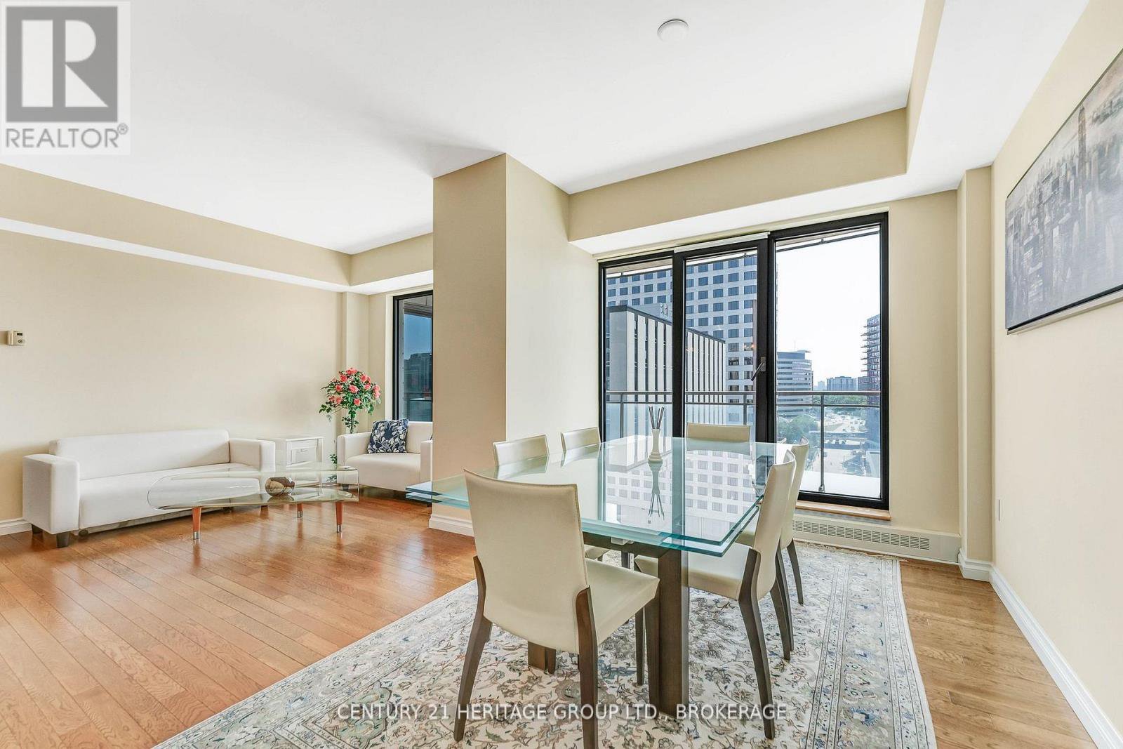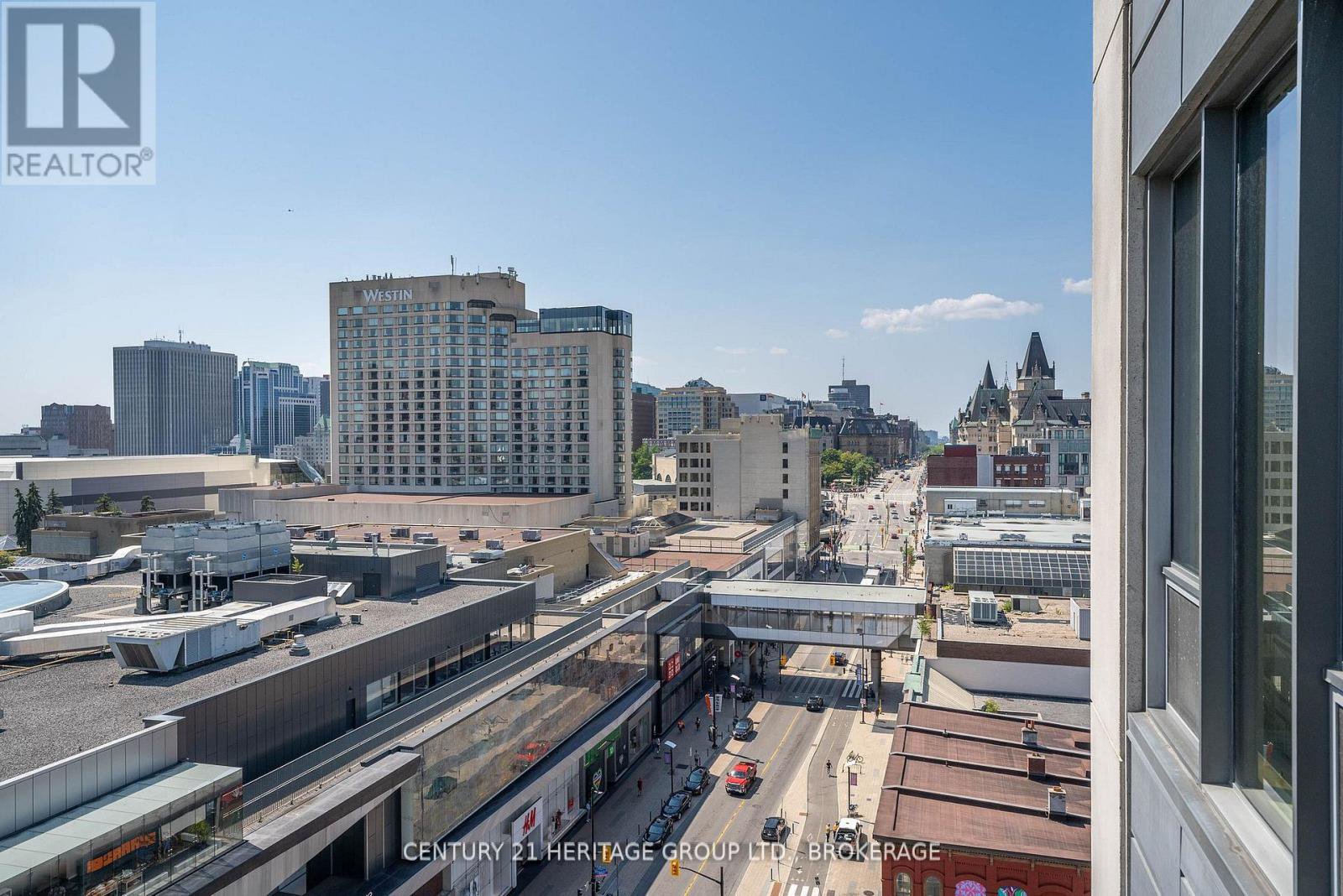 Welcome to 90 George Street, Unit 1103, an exceptional opportunity to own a refined condo in Ottawa's prestigious ByWard Market. This thoughtfully designed 2-bedroom unit boasts panoramic, unobstructed views of the Parliament Buildings, Gatineau Hills, and the vibrancy of the ByWard Market below. Enjoy breathtaking sunsets and city fireworks from your oversized private balcony, offering a front-row seat to Ottawa's energy and skyline. The open-concept layout blends functionality with elegance. The kitchen is appointed with granite countertops, a stylish breakfast bar, and premium wood cabinetry, providing ample storage and seamlessly connecting to the spacious living and dining areas. Floor-to-ceiling windows flood the interior with natural light, and the living room walks out directly to the private patio ideal for entertaining or quiet relaxation above the city. The primary bedroom serves as a peaceful retreat, featuring floor-to-ceiling windows, a walk-in closet, and a spa-inspired 4-piece ensuite with a soaker tub and fully tiled finishes. The second bedroom showcases spectacular city views. The main bathroom features a modern 4-piece layout with a tiled glass shower and a wall-hung vanity, rounding out the sophisticated interior. Residents enjoy 24/7 security and unparalleled amenities, including an indoor saltwater pool, hot tub, state-of-the-art fitness center, and a beautifully landscaped rooftop terrace. Just outside, scenic riverfront trails and bike paths invite you to explore nature within the heart of the city. Experience the essence of downtown living with acclaimed restaurants, boutiques, galleries, and Ottawa's cultural destinations right at your doorstep. This is luxury city living redefined.