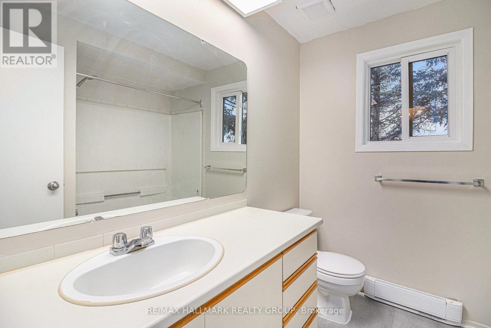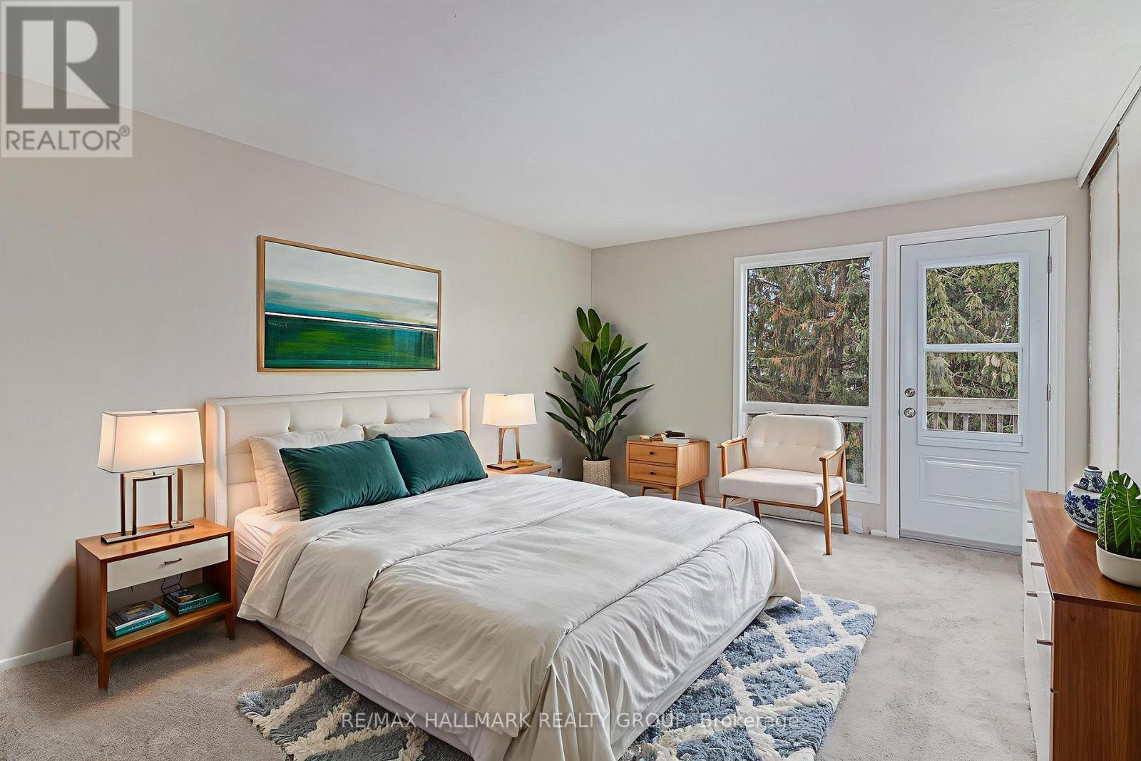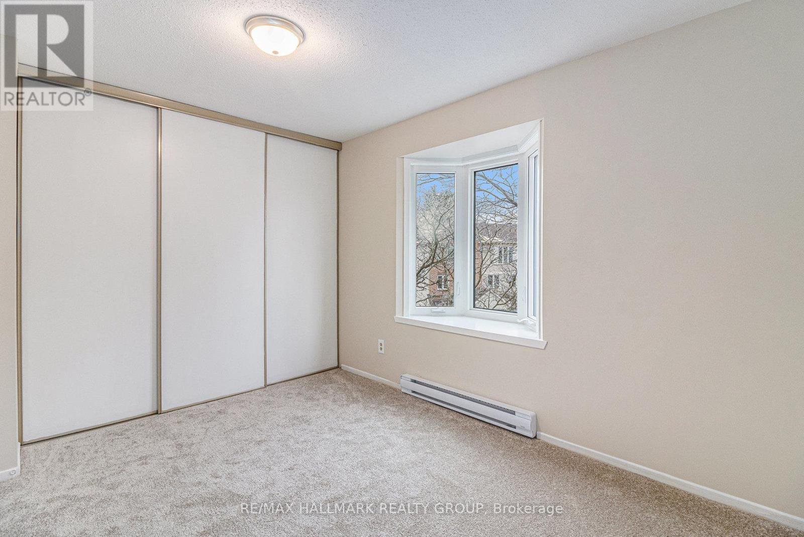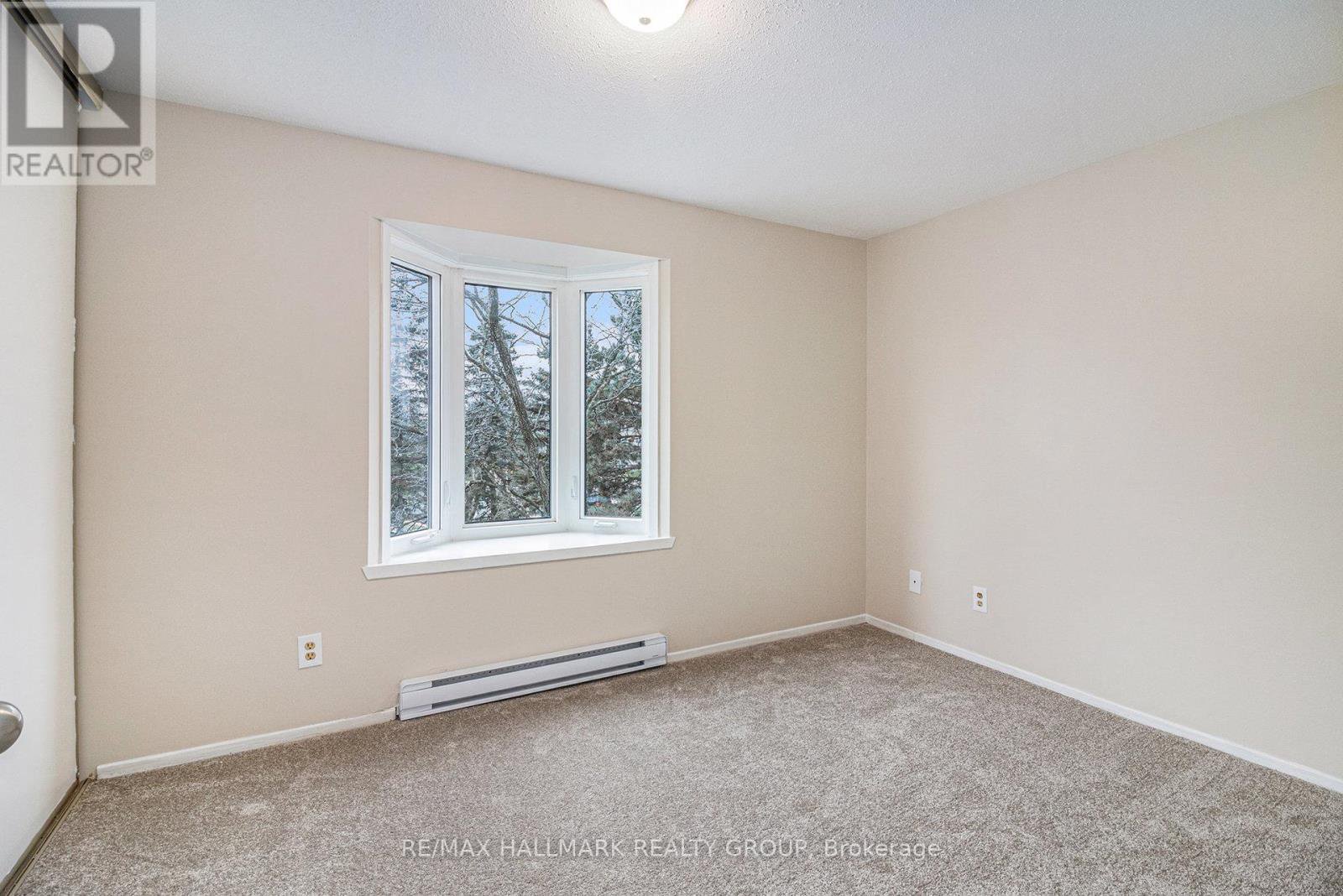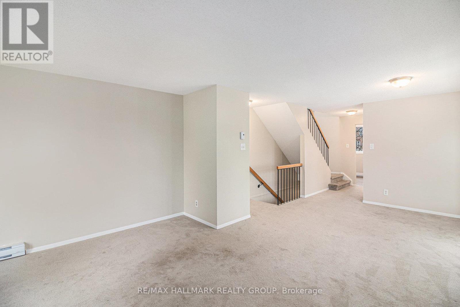 Well maintained, end-unit 2-bedroom, 2 bath upper terrace condo offering a bright interior in a peaceful, forest-backed setting of Convent Glen. The main level features an open-concept living/dining area with a cozy wood-burning fireplace and access to a private balcony with tranquil green-space views. A sun-filled eat-in kitchen and convenient powder room complete the main floor. Upstairs you'll find a sky light over the staircase & upper hallway, spacious primary bedroom with wall-to-wall closet space and its own private balcony, a bright second bedroom, full bathroom, and in-unit laundry/storage area. Newer carpets on the upper level, newer full sized washer/dryer and freshly painted throughout. Located steps from parks, playgrounds, transit, shops and the Ottawa River pathways, with easy access to Place d'Orléans, Petrie Island Beach and the LRT station. A perfect low-maintenance home in a highly desirable, nature-surrounded neighborhood.