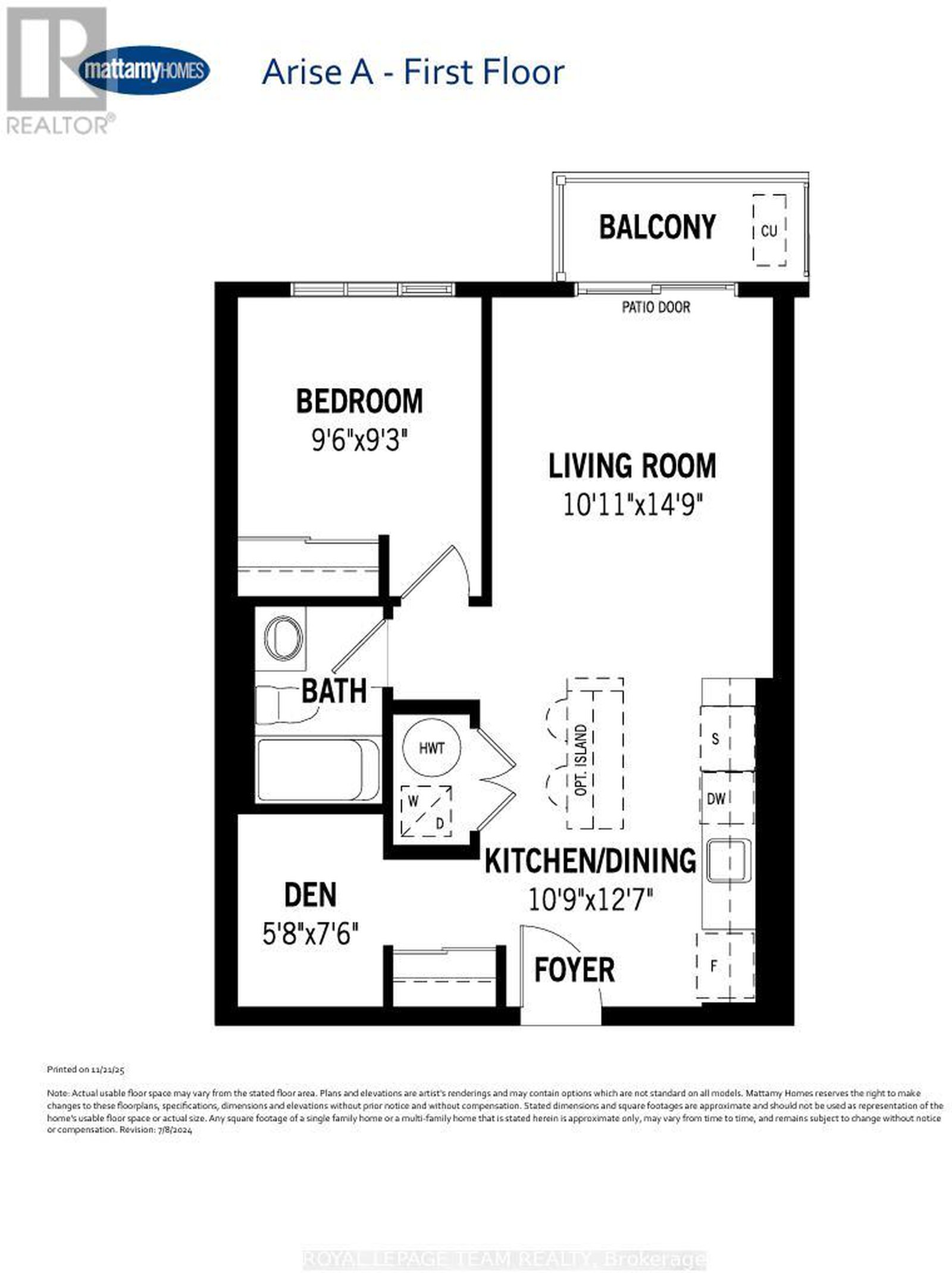 LIMITED TIME - NO CONDO FEES FOR 2 YEARS! Welcome to the Arise model by Mattamy Homes in the sought-after Avalon community of Orleans. This brand new 624 sqft condo features a welcoming foyer with closet, a stylish chef-inspired kitchen with quartz countertops, backsplash and an optional large island (no sink), all opening to a bright dining and living area with access to a private balcony. Offering 1 bedroom plus den, 1 full bathroom, and a dedicated laundry room, this home is designed with convenience and modern finishes in mind. Enjoy 9' smooth ceilings, luxury vinyl plank flooring throughout (no carpet), five appliances, and one parking spot. Perfectly located near parks, trails, recreation centres, shopping, dining, and transit, this condo blends style, comfort, and everyday convenience. Images provided are to showcase builder finishes only.
