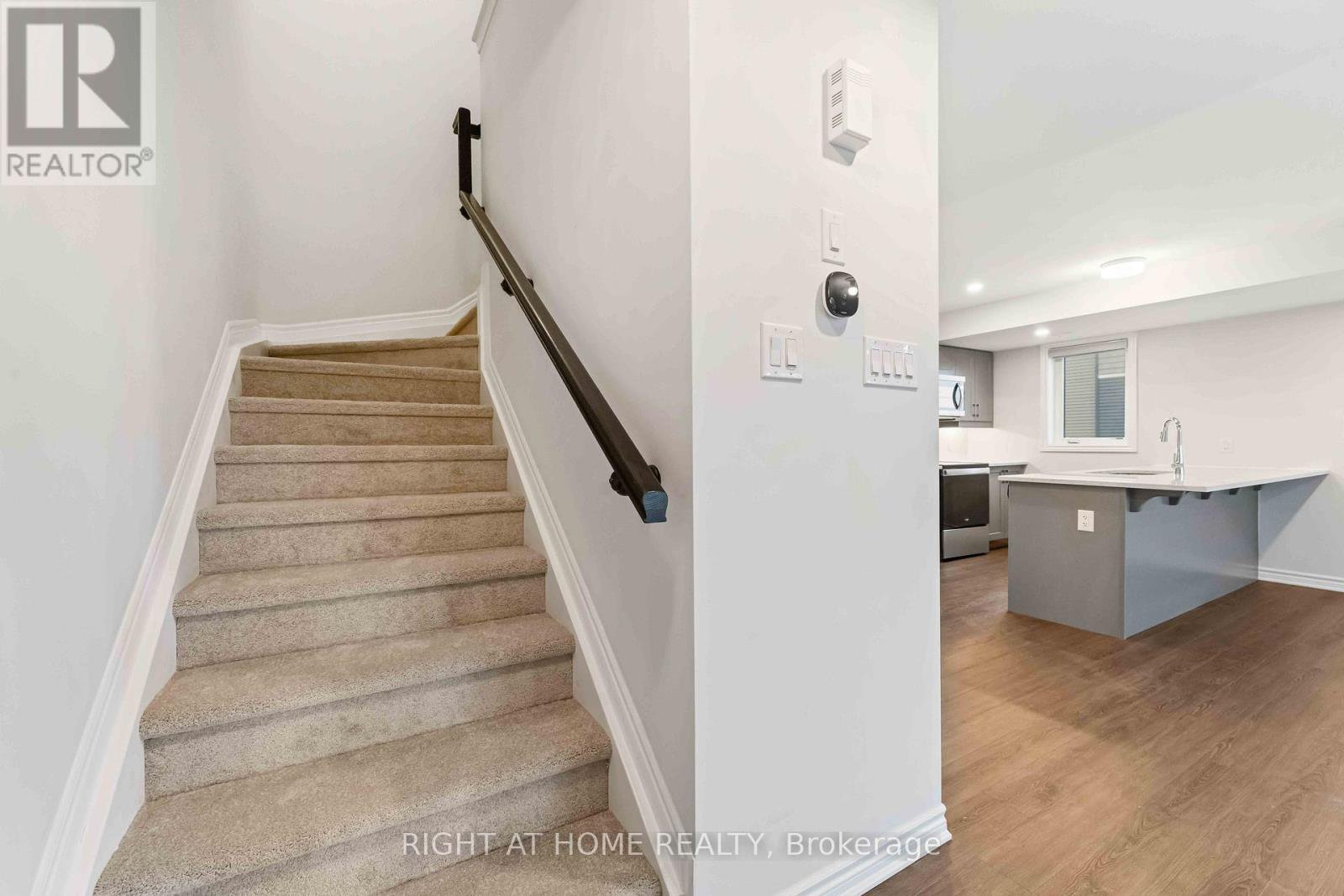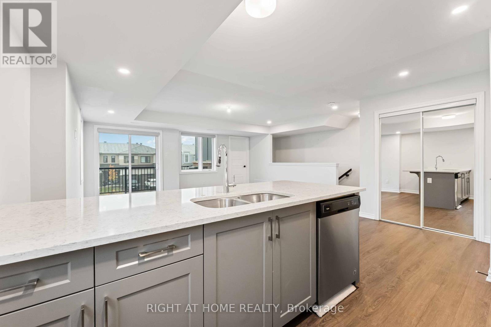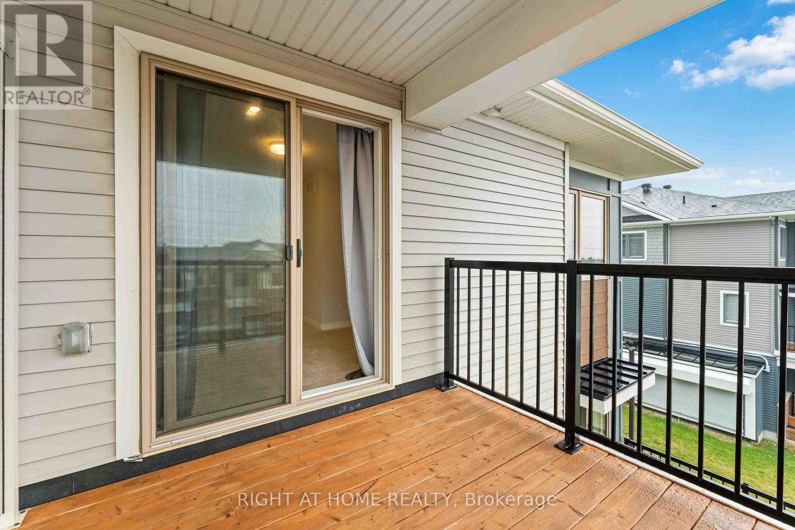 With BRAND NEW CARPET + FREHSLY PAINTED + Low condo fees of just $261.21! ! PREPARE TO FALL IN LOVE with this beautifully designed and newer well maintained upper level stacked 3 bed/2 bath home with 1 Parking spots in the fast growing community of Blackstone, Kanata. Entrance has a flight of stairs up to the main living space. Open concept kitchen/living/dining. Kitchen boasts stainless steel appliances, quartz countertops, pantry, and a breakfast bar. The half bath and a spacious balcony are located on the main floor. Upper floor features 3 bedrooms. One bedroom has patio doors to a private balcony, 2nd bedroom can be your office space and Third bedroom is also very decent size. Laundry is on the upper level. Close to parks, transportation and walking distance to many amenities. Book your showing today!