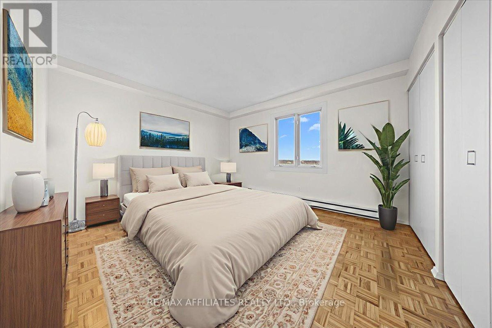 So much is offered in this RARE three bedroom corner unit! Imagine enjoying stunning views from the 15th floor looking out north and east, over the twinkling lights of the city or out toward the Ottawa River and the Gatineau Hills. The open concept living and dining area, with breakfast bar, is flooded with natural light. Two private balconies extend your living space and are ideal for entertaining guests. The unit is freshly painted. The kitchen has a new countertop on the island and a fresh backsplash. The condo has freshly refinished parquet, hardwood flooring. The bedrooms, with generous closets, can accommodate standard bedroom furniture, office or guest room set up, kids room or yoga area. One prime parking spot in a secure, underground garage is included. An indoor car wash station is in the garage. For those who do not own a car but occasionally require one, a Communauto car is available in the outdoor parking. Chateau Vanier is mere minutes from transit and highways. It is a 14 minute bike ride to downtown and there is a bike locker available. Residents enjoy a wide range of amenities. Beautiful gardens and walking paths run between the towers. There is an indoor pool, sauna, exercise room, party room with full kitchen, library, hobby room and more. The ground floor is the ultimate in owner convenience with retail on site including a convenience store, barbershop, nail salon and an electronics repair shop. The local Loblaws is right across the street. Minutes away is an LCBO, as well as restaurants and shops along Beechwood Ave. An eight minute drive gets you to Ottawa University. For those who enjoy green spaces, residents can easily walk to the parks and bike paths along the Rideau River or go to Riverain Park where you will find tennis and basketball courts and a playground. This condo offers incredible convenience and a balance of urban living so close to waterways and green spaces! Some rooms virtually staged in photos.