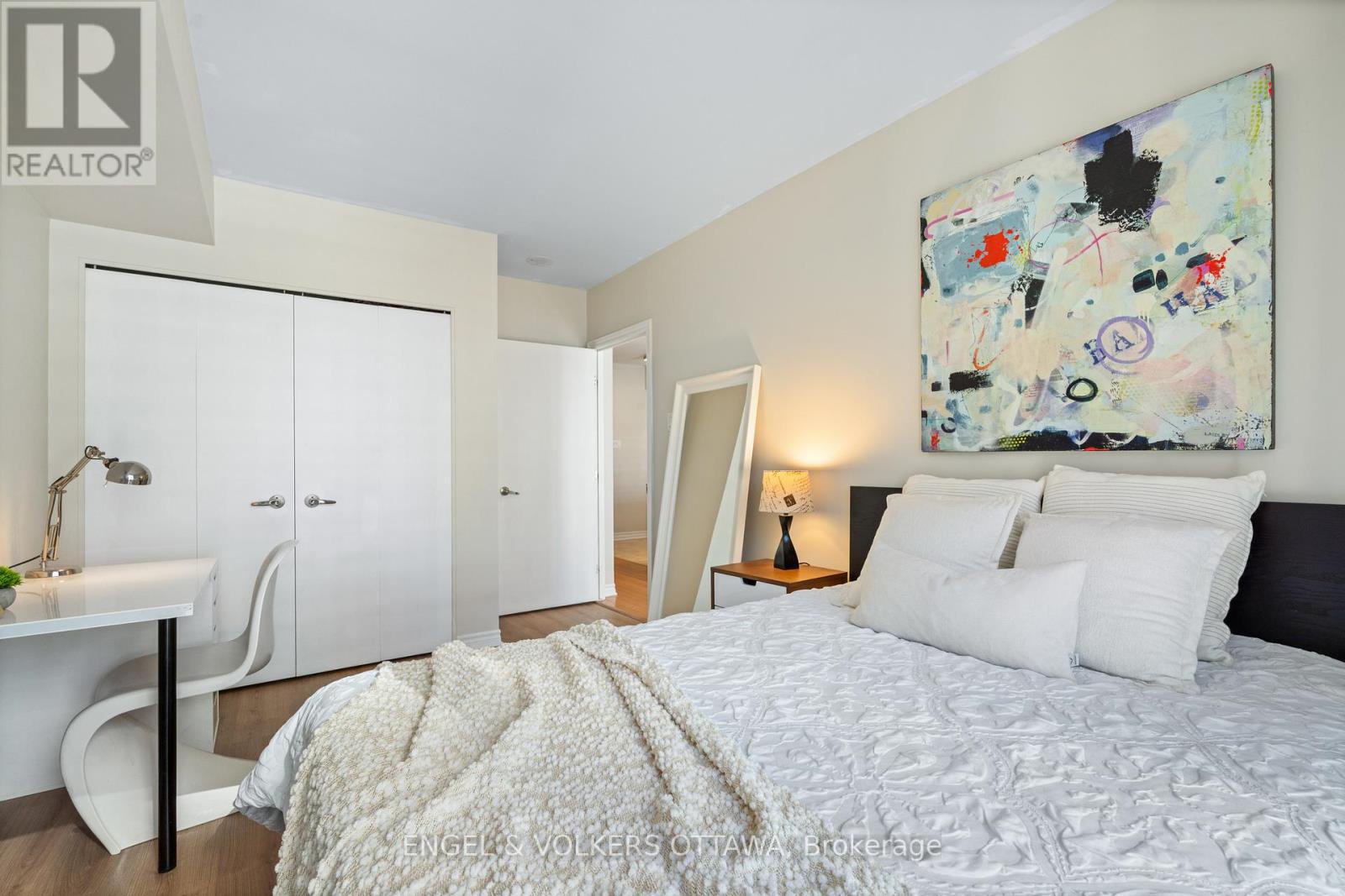INCREDIBLE DEAL - large 1 bedroom condo with premium underground parking and storage locker UNDER $325K in the heart of downtown! This beautifully furnished 1-bedroom corner suite offers 655 sq ft of thoughtfully designed living space, featuring an open-concept layout with stunning floor-to-ceiling, wall-to-wall windows that fill the home with natural light. Spacious primary bedroom easily accommodates a desk and offers generous closet space. Freshly painted throughout, this home is move-in ready! Enjoy the convenience of in-suite laundry, an underground parking spot, and a dedicated storage locker. An ideal pied-a-terre for professionals working downtown, or anyone seeking a stylish and low-maintenance city retreat. Exceptional value in a prime location! Food Basics at your doorstep and just moments to Parliament Hill, the Bank of Canada, World Exchange Plaza, Lyon Street LRT, and an array of cafes, restaurants, and boutique shops! *Can be sold fully furnished!*
