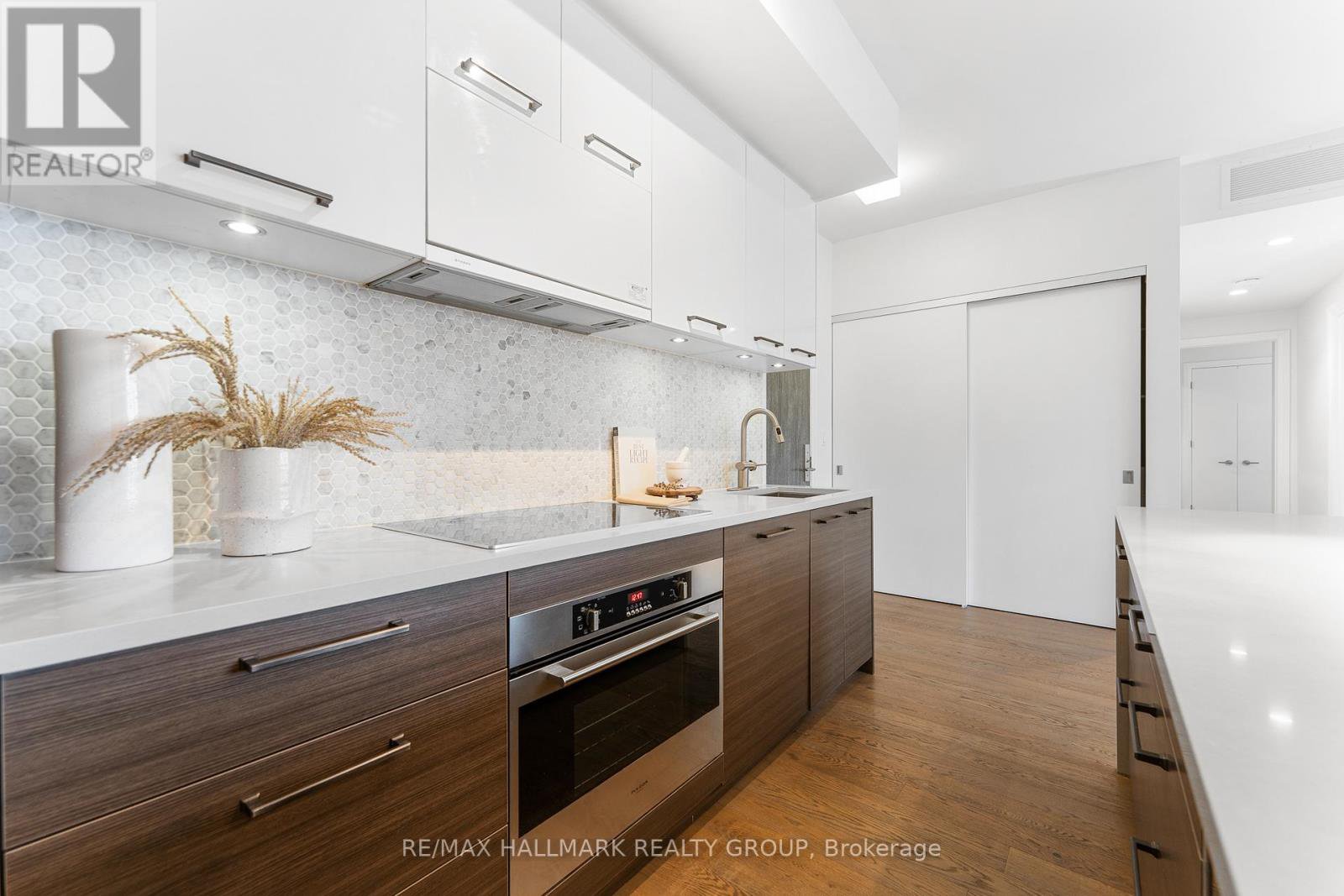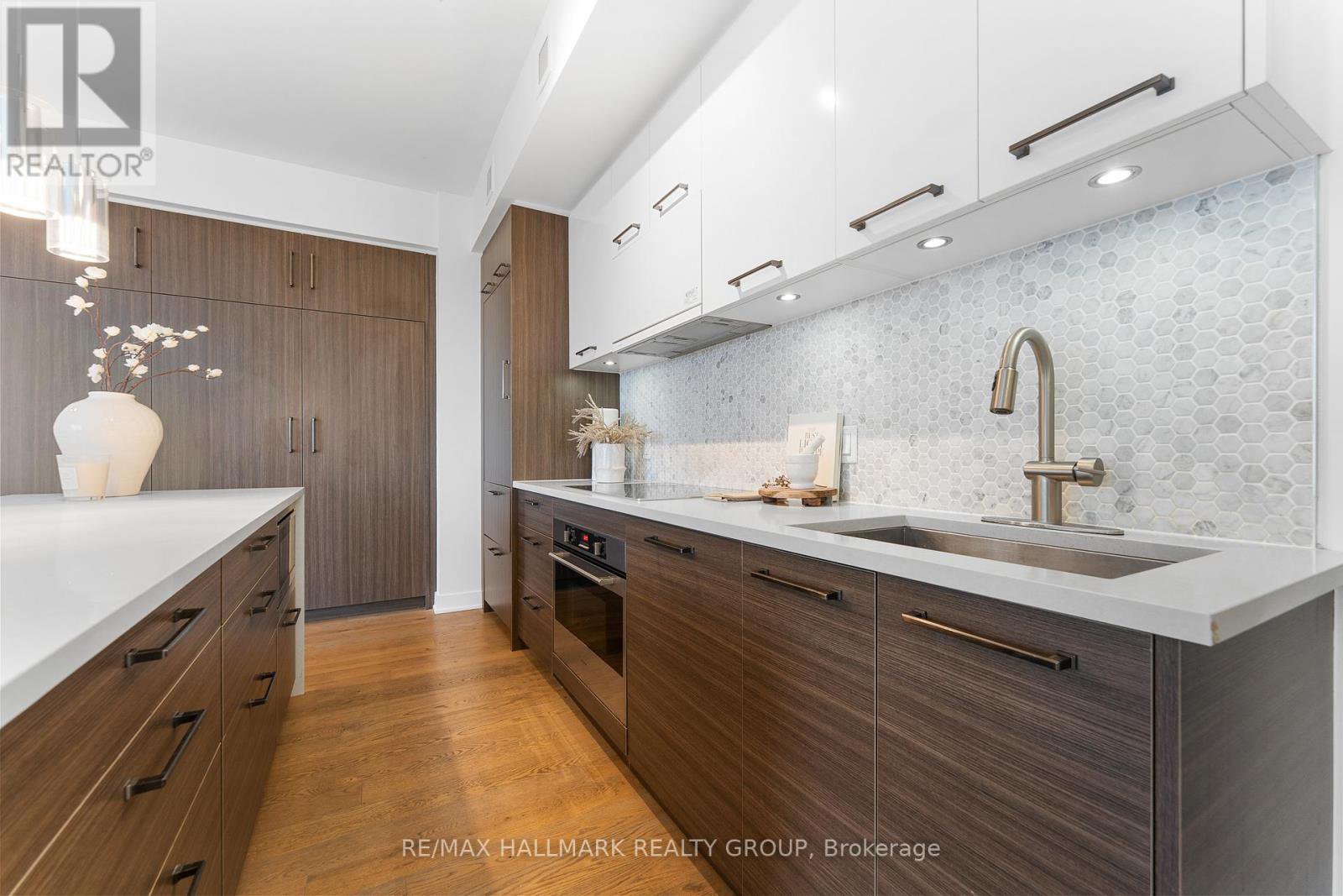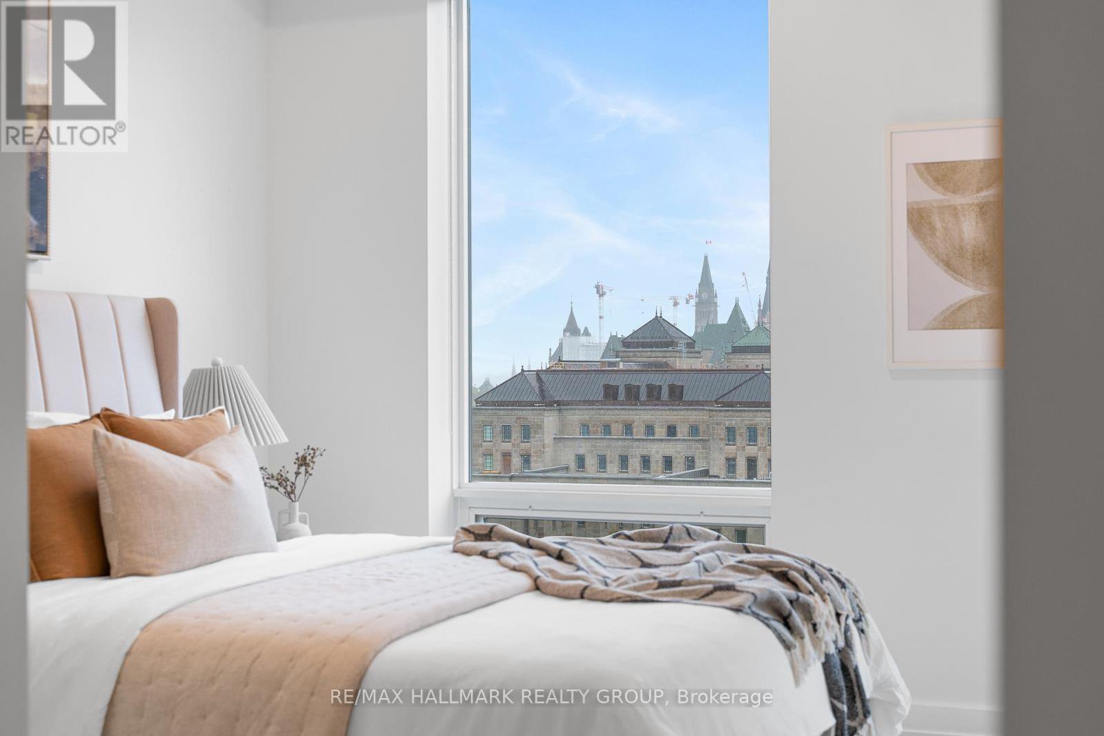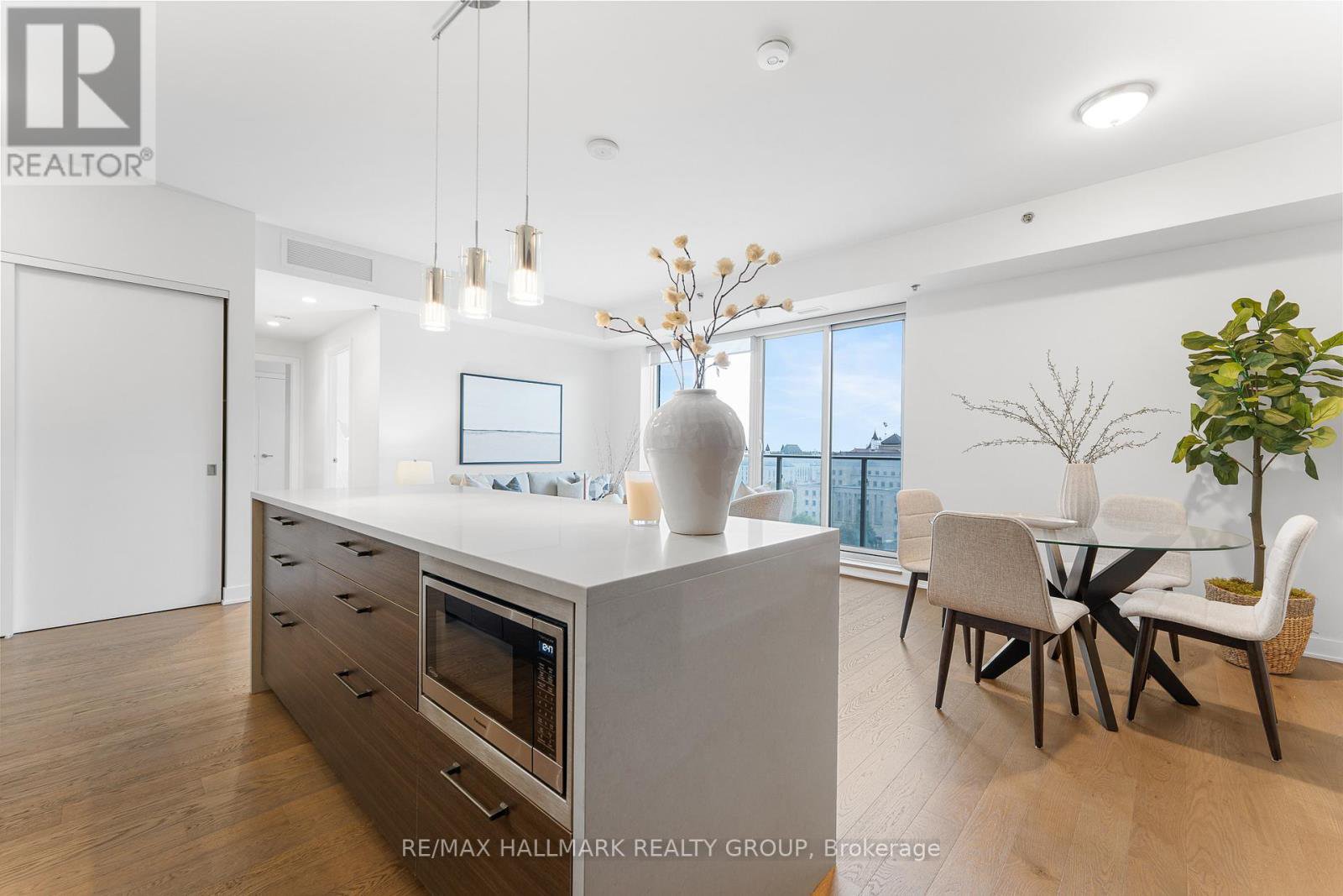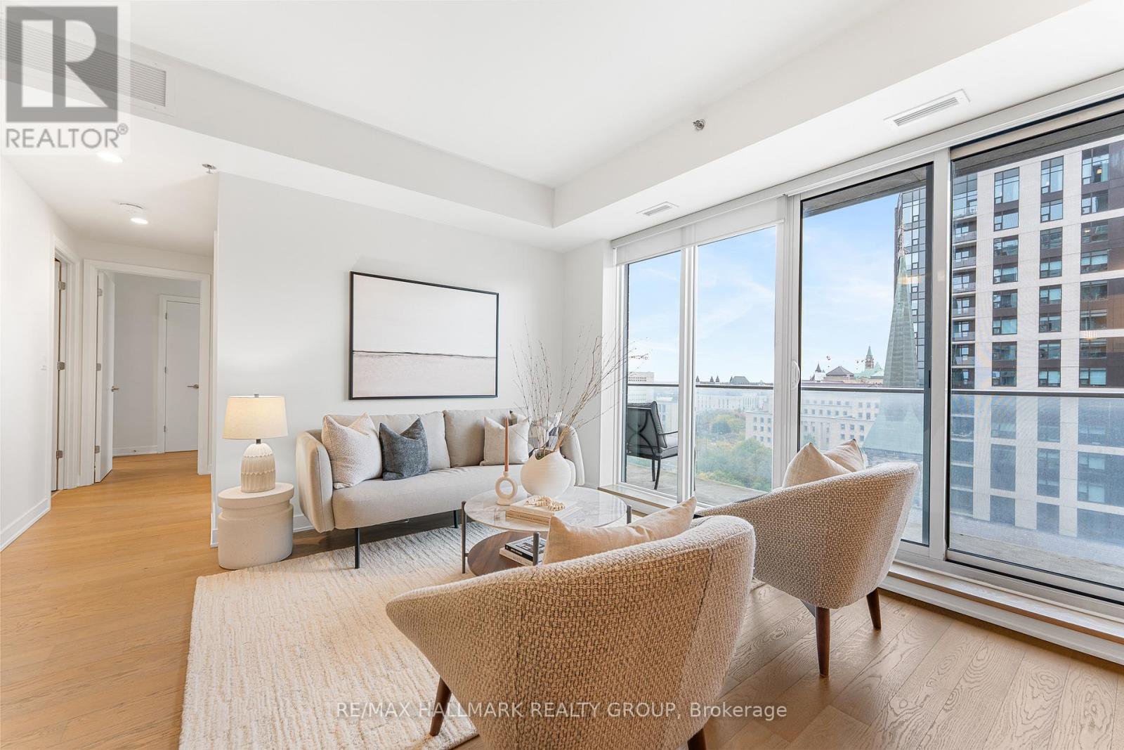 Welcome home to Cathedral Hill - where luxury meets lifestyle in the heart of Ottawa! Discover this spectacular two bedroom, two FULL bathroom condo perched high on the 10th floor at 428 Sparks Street.Offering breathtaking views of the Ottawa River, downtown skyline, Gatineau Hills and Parliament, this condo delivers a daily dose of inspiration from sunrise to sunset. Inside, an airy open-concept layout is bathed in natural light from floor-to-ceiling windows, complemented by rich hardwood floors throughout.The designer European kitchen is a true showpiece - featuring mosaic backsplash, two-tone cabinetry with integrated lighting, built-in appliances, and a stylish island with breakfast bar - perfect for morning coffee or entertaining guests.The elegant Primary Bedroom boasts a spacious walk-in closet and a spa-inspired ensuite complete with a glass shower AND deep soaker tub. A generous second bedroom, full main bathroom, and in-suite laundry add comfort and convenience to everyday living. Perfect for hosting guests, families or even an at home office, if desired. Step out onto your private balcony to take in panoramic city and river views - the perfect setting to unwind after a long day. This condo also comes with secure underground parking and a full storage locker. This is luxury living in an environmentally friendly LEED certified building! Residents of Cathedral Hill enjoy access to premium amenities including a fitness centre, yoga studio, party room, pet wash station, and concierge service. All this in an unbeatable downtown location - only steps to the Lyon LRT station, Lebreton Flats, Parliament Hill, the ByWard Market, and so much more. Experience upscale urban living at Cathedral Hill - urban luxury at its finest! Come fall in love today.