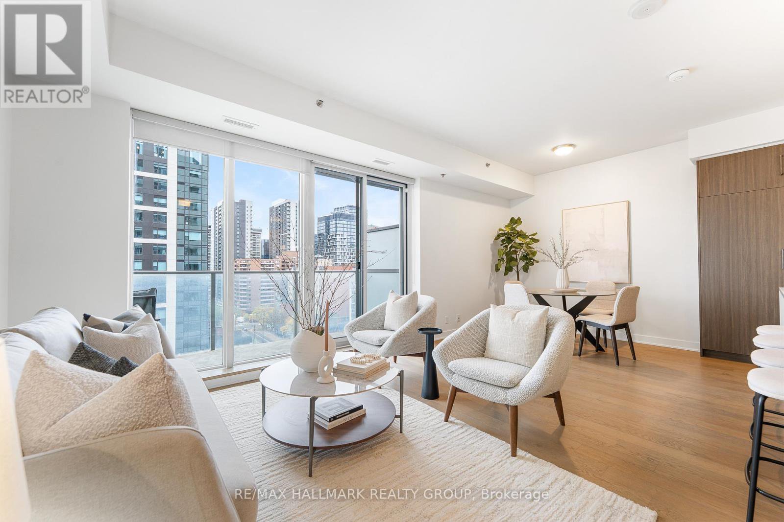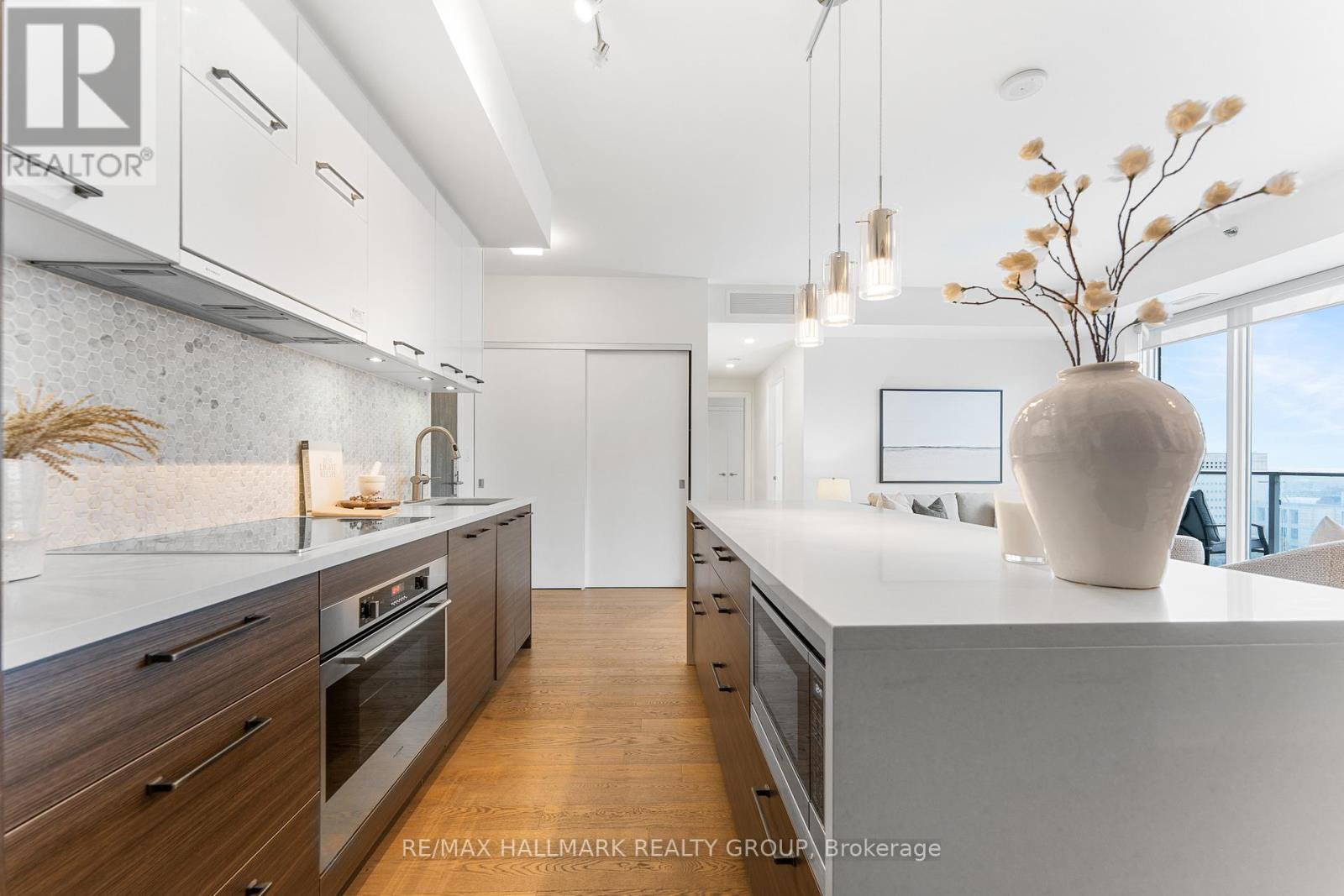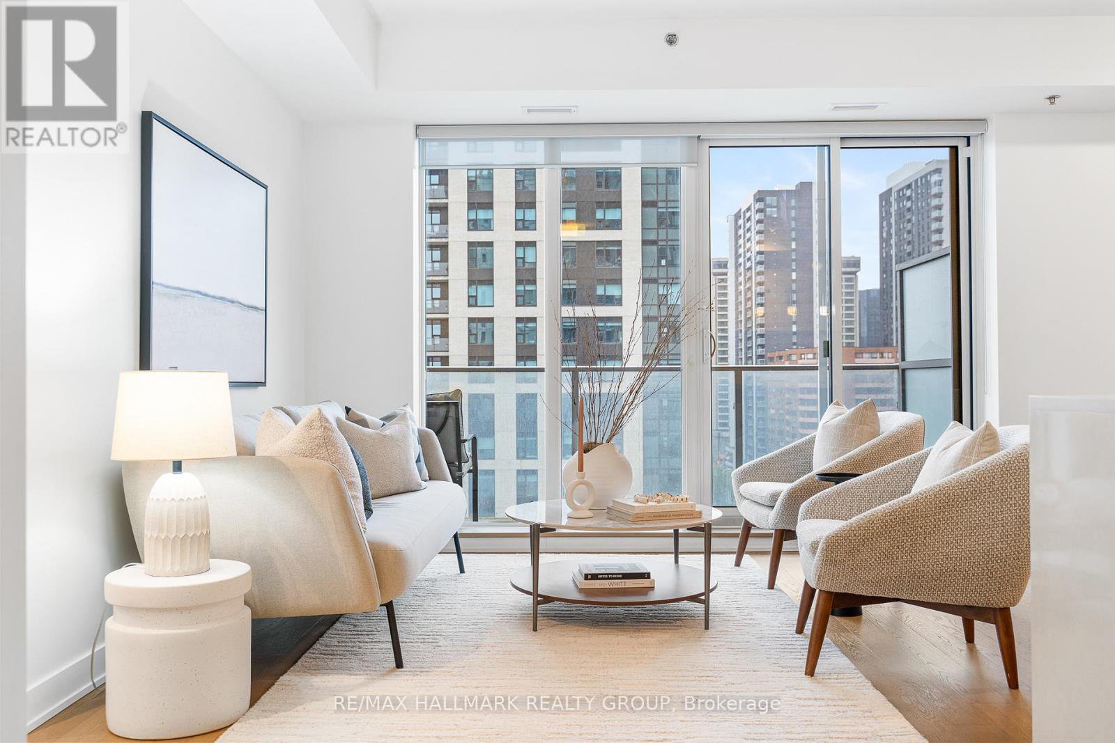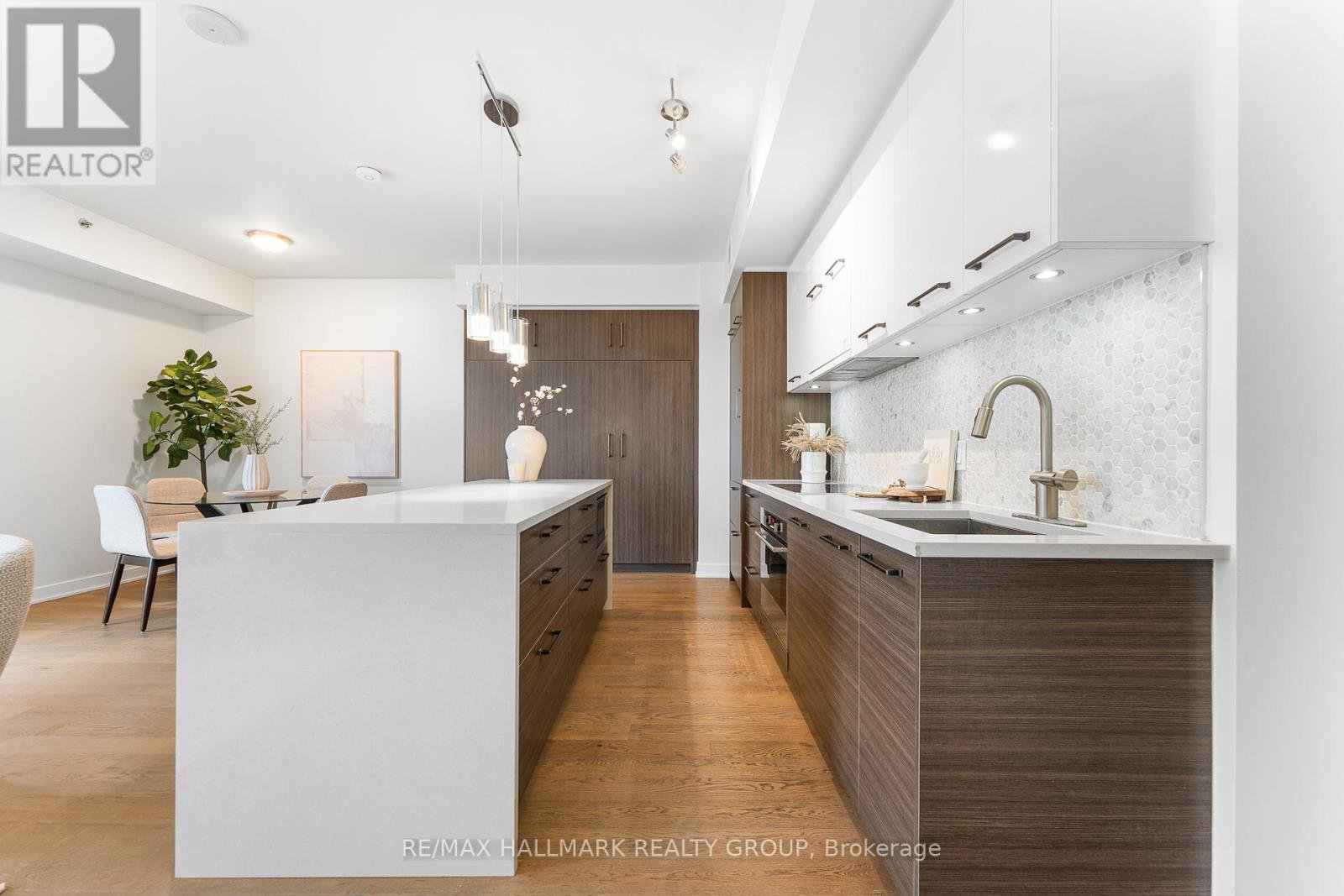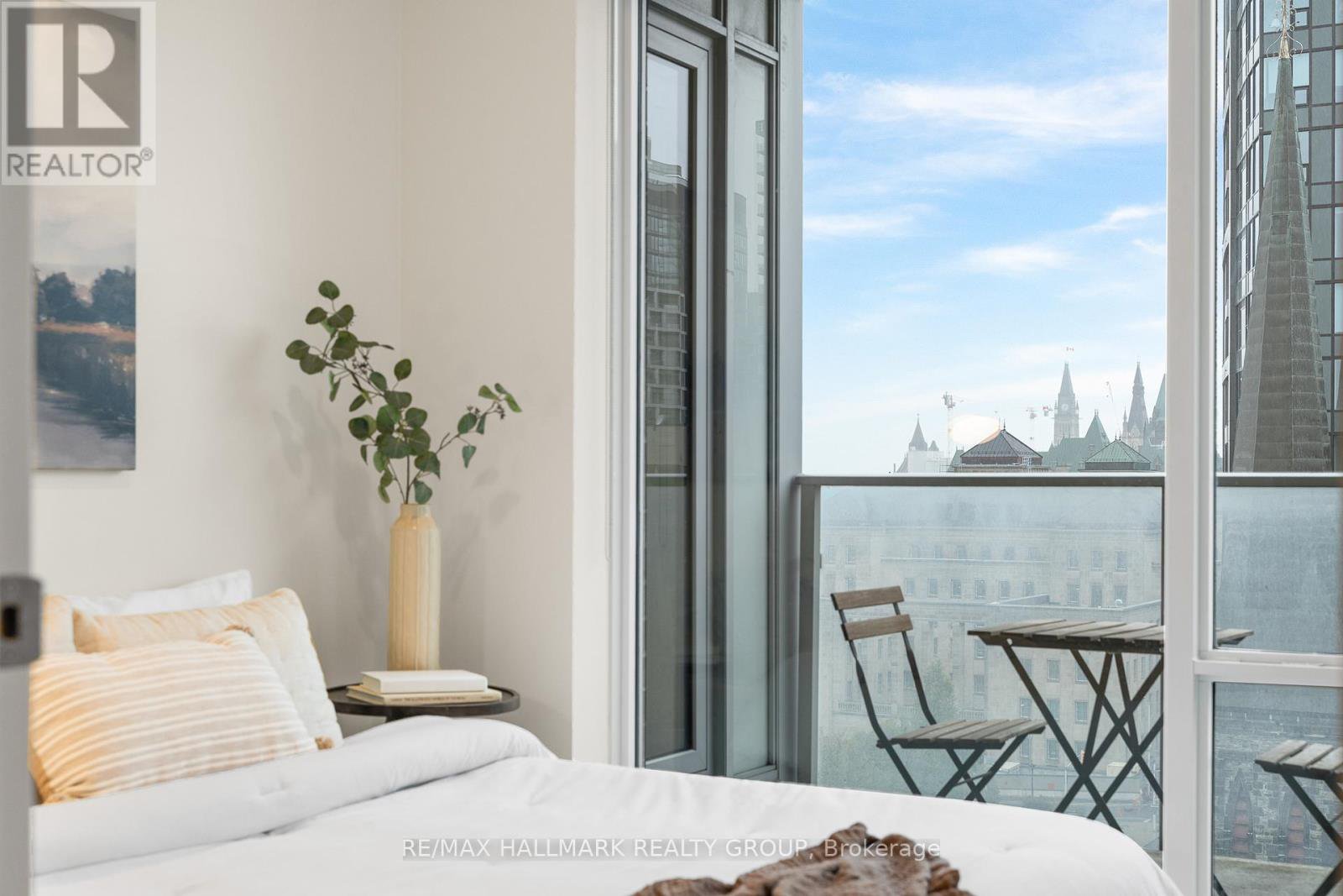 Welcome home to Cathedral Hill - where luxury meets lifestyle in the heart of Ottawa! Discover this spectacular two bedroom, two FULL bathroom condo perched high on the 10th floor at 428 Sparks Street.Offering breathtaking views of the Ottawa River, downtown skyline, Gatineau Hills and Parliament, this condo delivers a daily dose of inspiration from sunrise to sunset. Inside, an airy open-concept layout is bathed in natural light from floor-to-ceiling windows, complemented by rich hardwood floors throughout.The designer European kitchen is a true showpiece - featuring mosaic backsplash, two-tone cabinetry with integrated lighting, built-in appliances, and a stylish island with breakfast bar - perfect for morning coffee or entertaining guests.The elegant Primary Bedroom boasts a spacious walk-in closet and a spa-inspired ensuite complete with a glass shower AND deep soaker tub. A generous second bedroom, full main bathroom, and in-suite laundry add comfort and convenience to everyday living. Perfect for hosting guests, families or even an at home office, if desired. Step out onto your private balcony to take in panoramic city and river views - the perfect setting to unwind after a long day. This condo also comes with secure underground parking and a full storage locker. This is luxury living in an environmentally friendly LEED certified building! Residents of Cathedral Hill enjoy access to premium amenities including a fitness centre, yoga studio, party room, pet wash station, and concierge service. All this in an unbeatable downtown location - only steps to the Lyon LRT station, Lebreton Flats, Parliament Hill, the ByWard Market, and so much more. Experience upscale urban living at Cathedral Hill - urban luxury at its finest! Come fall in love today.