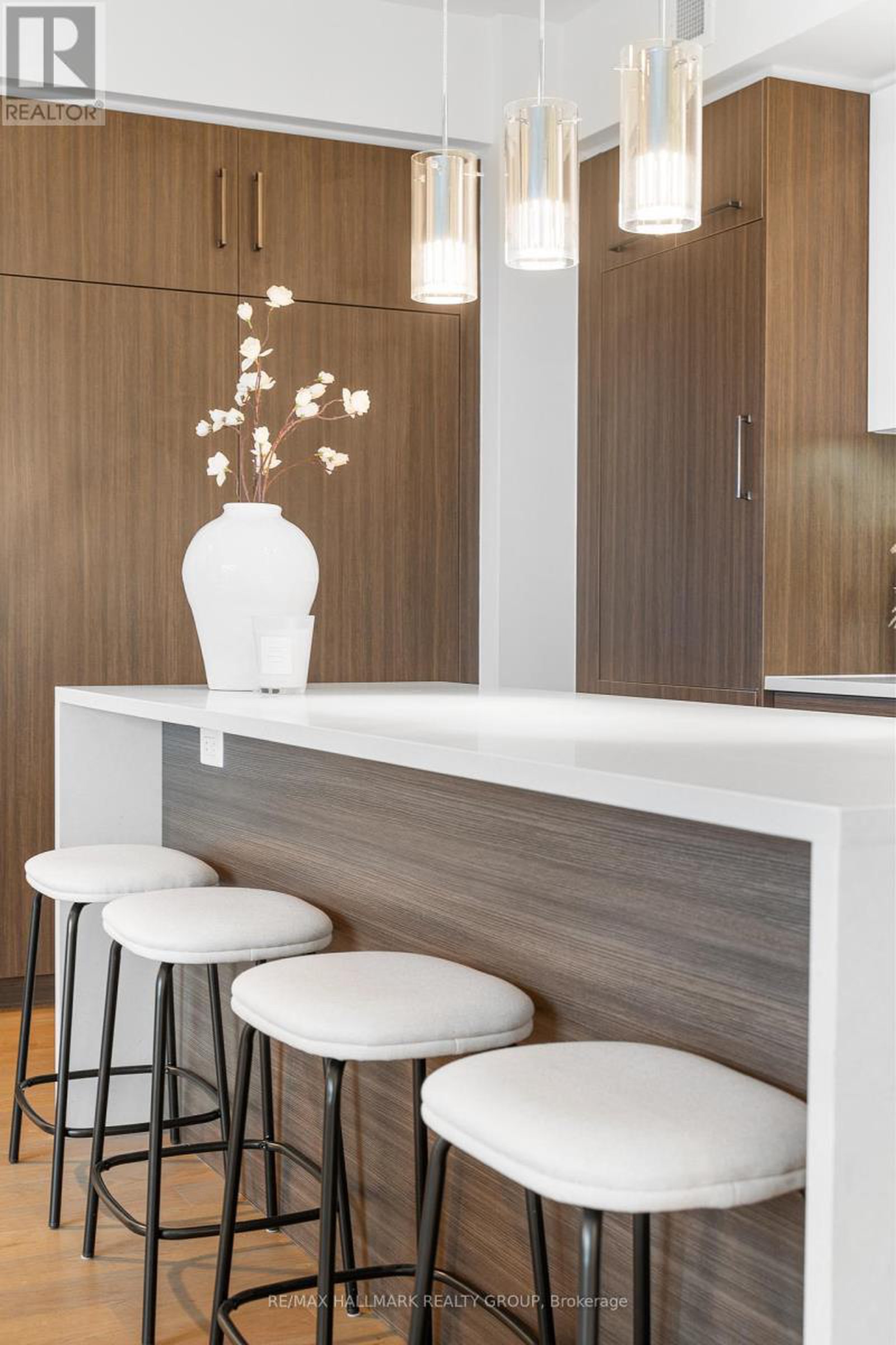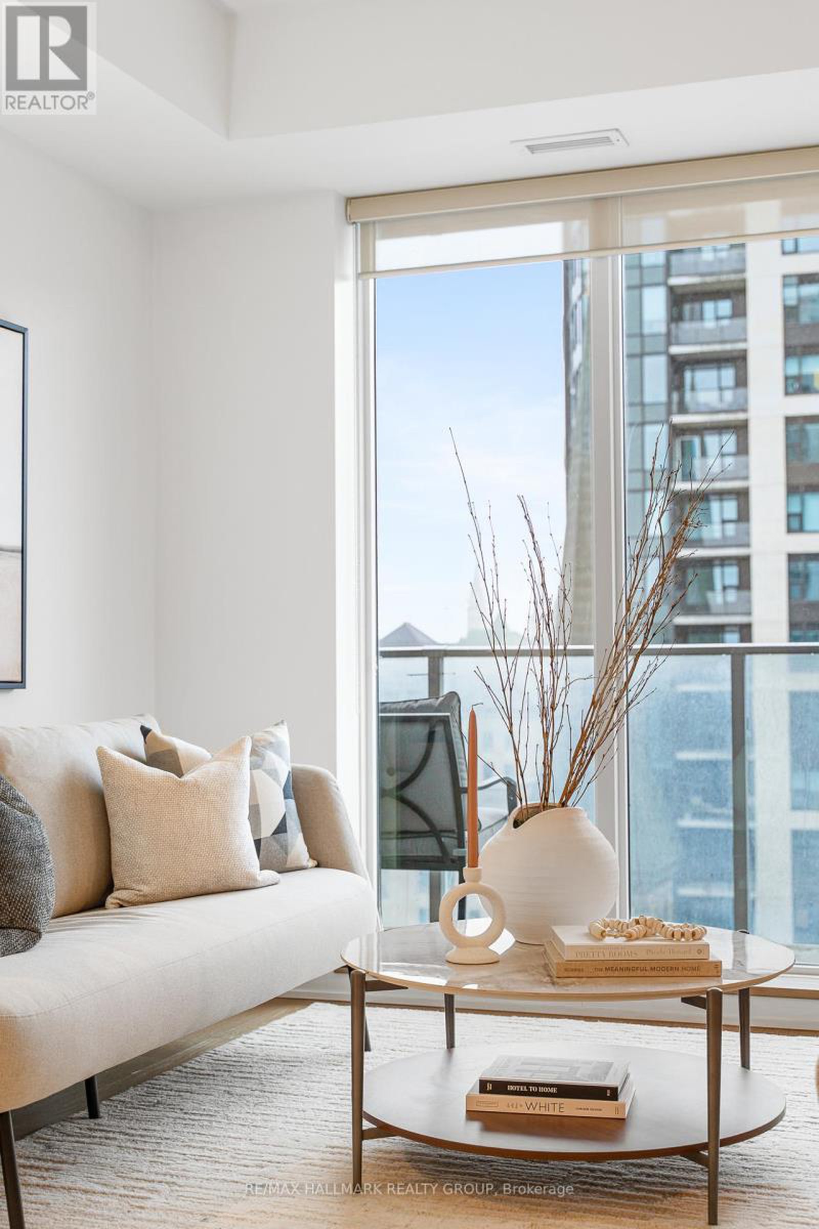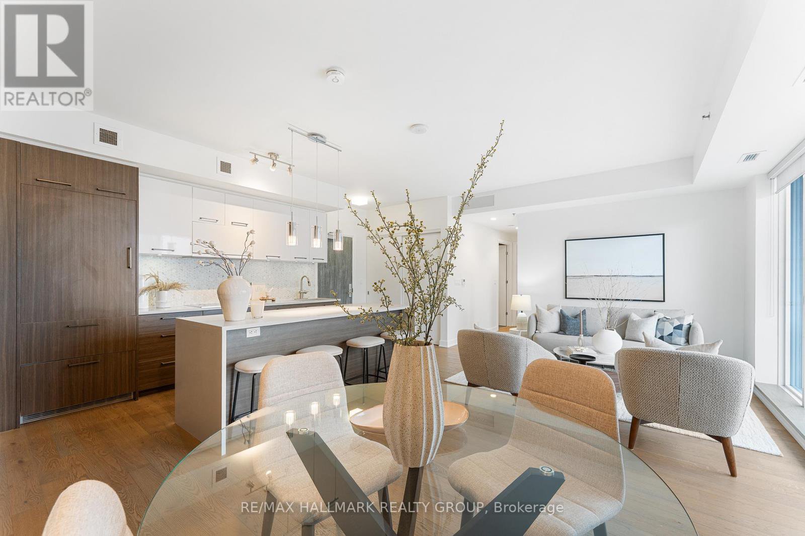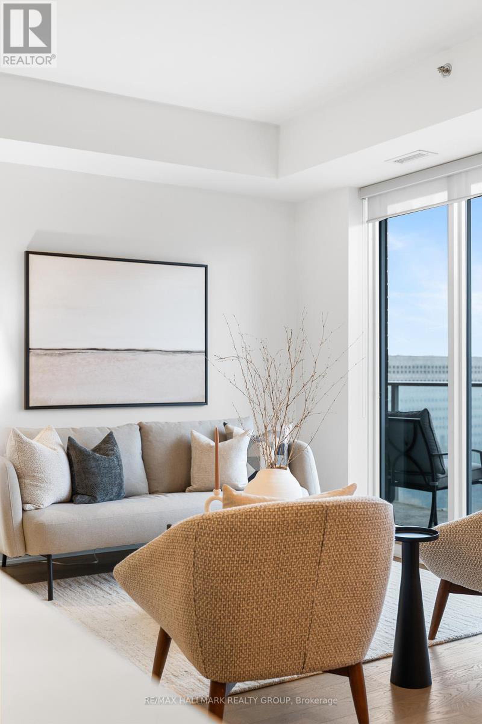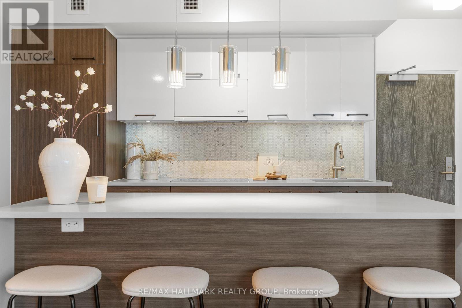 Welcome home to Cathedral Hill - where luxury meets lifestyle in the heart of Ottawa! Discover this spectacular two bedroom, two FULL bathroom condo perched high on the 10th floor at 428 Sparks Street.Offering breathtaking views of the Ottawa River, downtown skyline, Gatineau Hills and Parliament, this condo delivers a daily dose of inspiration from sunrise to sunset. Inside, an airy open-concept layout is bathed in natural light from floor-to-ceiling windows, complemented by rich hardwood floors throughout.The designer European kitchen is a true showpiece - featuring mosaic backsplash, two-tone cabinetry with integrated lighting, built-in appliances, and a stylish island with breakfast bar - perfect for morning coffee or entertaining guests.The elegant Primary Bedroom boasts a spacious walk-in closet and a spa-inspired ensuite complete with a glass shower AND deep soaker tub. A generous second bedroom, full main bathroom, and in-suite laundry add comfort and convenience to everyday living. Perfect for hosting guests, families or even an at home office, if desired. Step out onto your private balcony to take in panoramic city and river views - the perfect setting to unwind after a long day. This condo also comes with secure underground parking and a full storage locker. This is luxury living in an environmentally friendly LEED certified building! Residents of Cathedral Hill enjoy access to premium amenities including a fitness centre, yoga studio, party room, pet wash station, and concierge service. All this in an unbeatable downtown location - only steps to the Lyon LRT station, Lebreton Flats, Parliament Hill, the ByWard Market, and so much more. Experience upscale urban living at Cathedral Hill - urban luxury at its finest! Come fall in love today.
